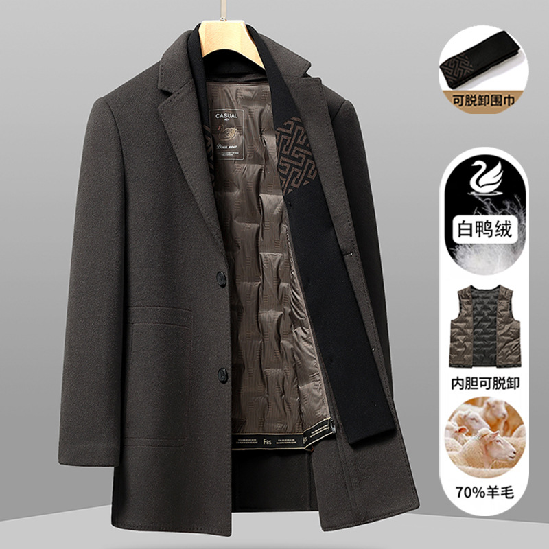 Áo khoác nam dáng dài, phù hợp mặc trong tiết trời lạnh. Sản phẩm có phần cổ áo thiết kế như khăn choàng giữ ấm cổ, mặt trong được lót lớp lông mềm ấm áp. Chất vải dày dặn, hai mặt đều có thể mặc được, tạo cảm giác thoải mái. Kiểu dáng kết hợp giữa đi làm và dạo phố, dễ dàng phối với nhiều trang phục. Mặc trực tiếp hoặc khoác ngoài áo len, áo vest đều phù hợp. | Tên sản phẩm: Áo Khoác Nam Hàng Mùa Xuân Thu Đông Trung Niên - Thời Trang Nam | Mã sản phẩm: C0957 - Giá: 3.100.000đ | Mã nhà sản xuất: SUDI-G06Hình ảnh sản phẩm