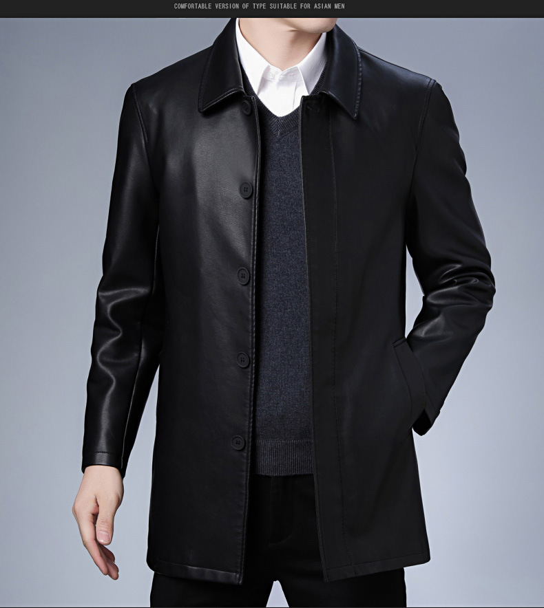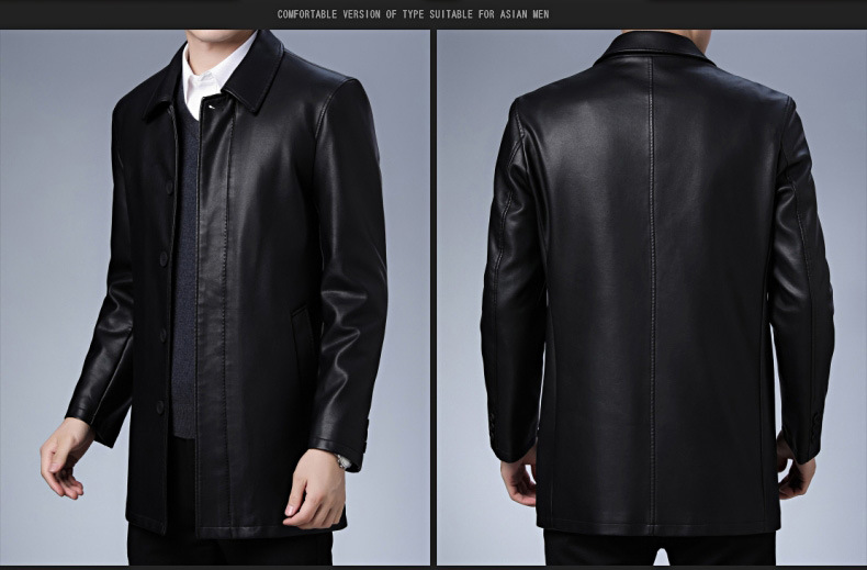 Áo khoác mặc trong mùa thu đông, dáng dài vừa phải dành cho nam giới. Chất liệu vải bền đẹp, bên trong có lớp lót mềm mại và ấm áp. Kiểu dáng kết hợp giữa đi làm và dạo phố, phù hợp cho nhiều dịp. Mặc kèm áo thun hoặc áo sơ mi đều hợp. Dễ dàng vệ sinh bằng khăn ẩm, giúp áo luôn sạch sẽ và giữ được dáng vẻ mới mẻ. | Tên sản phẩm: Áo Da Nam Dày Ấm Hàng Mùa Xuân Thu Đông Trung Niên - Thời Trang Nam | Mã sản phẩm: C0970 - Giá: 2.120.000đ | Mã nhà sản xuất: SUDI-G05Hình ảnh sản phẩm