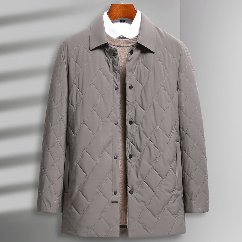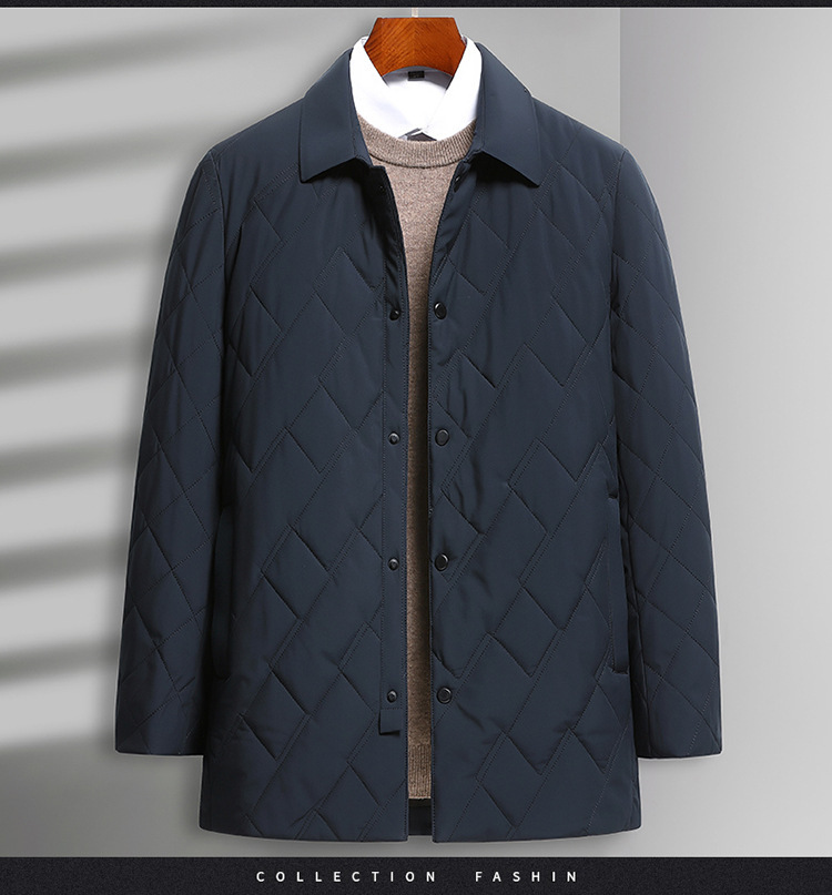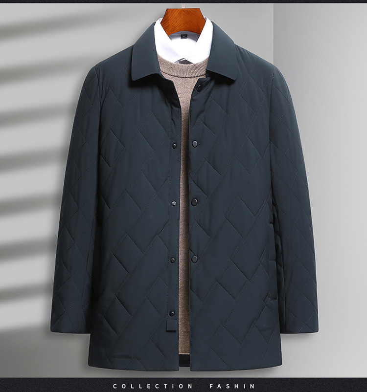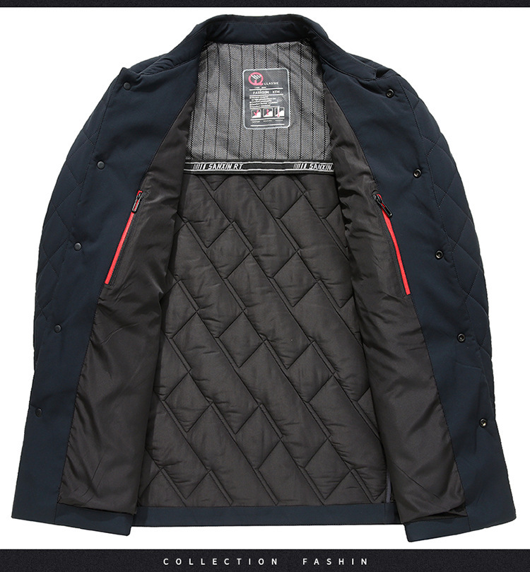 Áo khoác mùa lạnh dành cho nam, kiểu dáng cổ bẻ mang đến vẻ ngoại hình lịch sự. Sản phẩm được làm từ chất liệu bông mềm mại, có độ dày vừa phải, phù hợp để mặc trong những ngày thời tiết se lạnh. Bên trong áo được may theo kỹ thuật khóa sợi bông nhiều lớp, giúp giữ ấm tốt và không bị xù hay xệ qua thời gian sử dụng. Có thể kết hợp cùng áo thun hoặc áo len bên trong để tạo sự ấm áp và thoải mái. | Tên sản phẩm: Áo Khoác Nam Chất Liệu Vải Bông Áo Khoác Bông Kín Cổ Hàng Mùa Xuân Thu Đông Trung Niên - Thời Trang Nam | Mã sản phẩm: C0986 - Giá: 1.640.000đ | Mã nhà sản xuất: SUDI-G05Hình ảnh sản phẩm