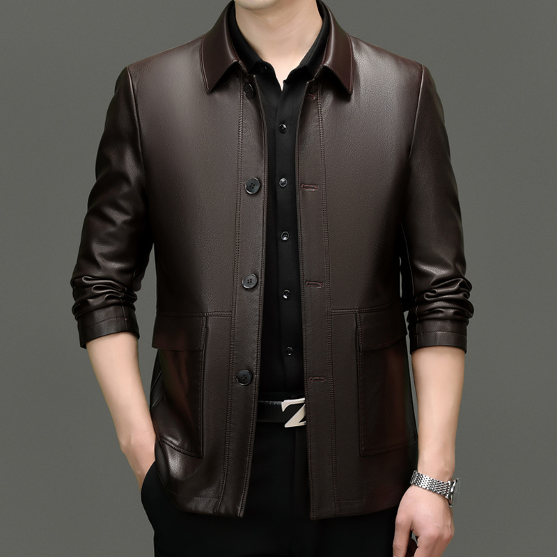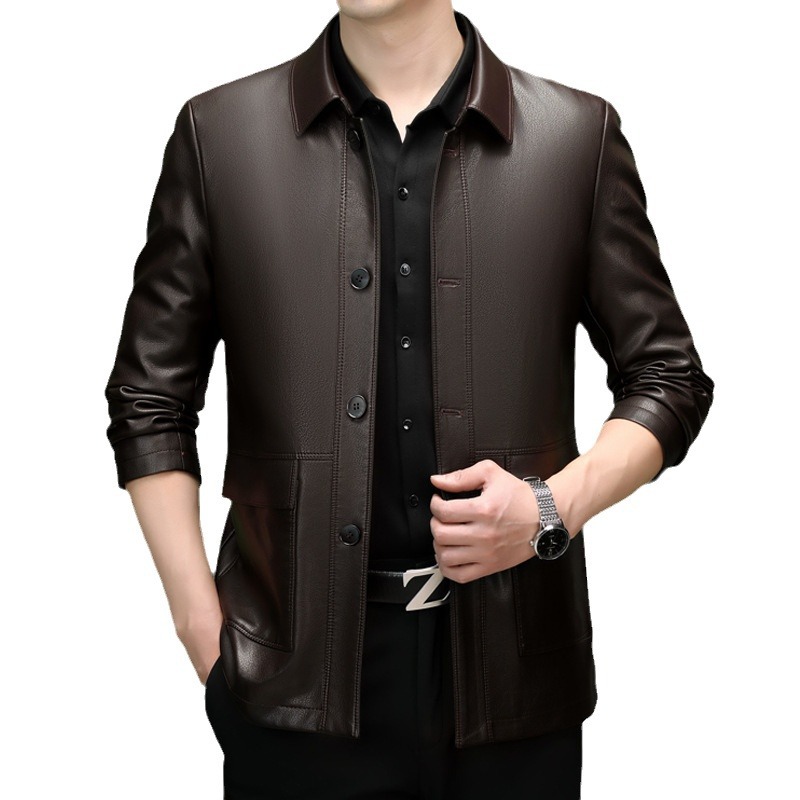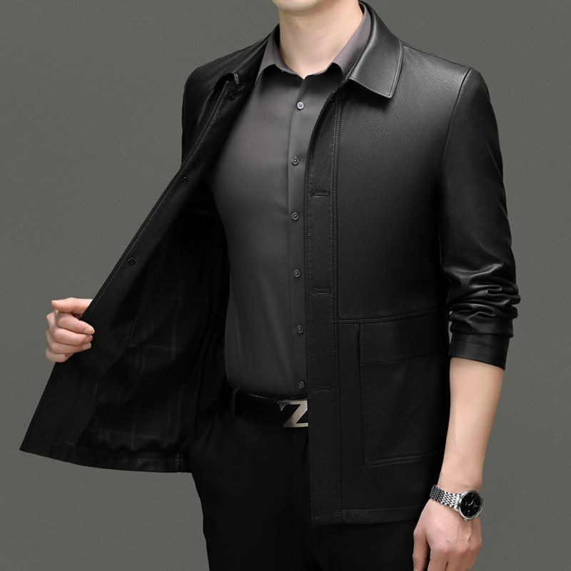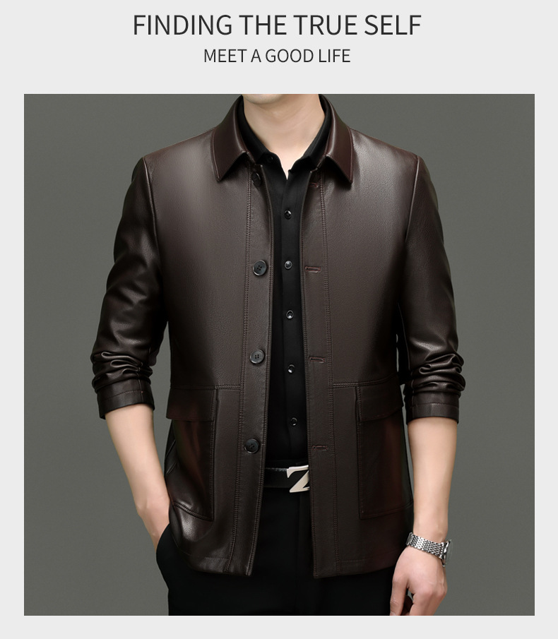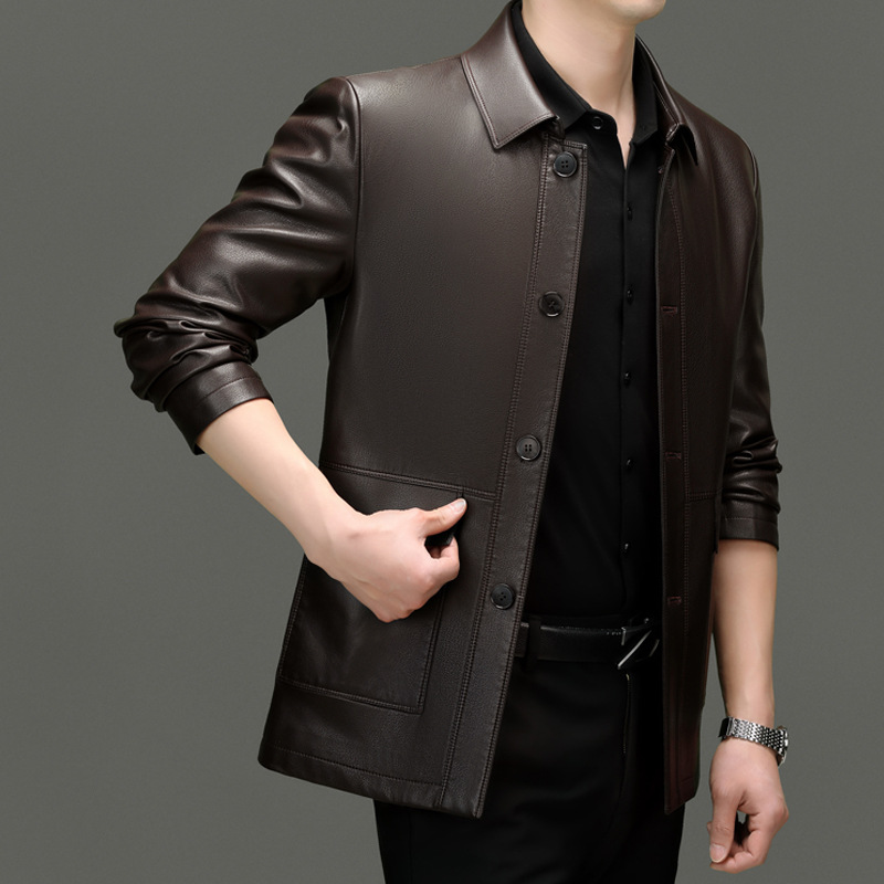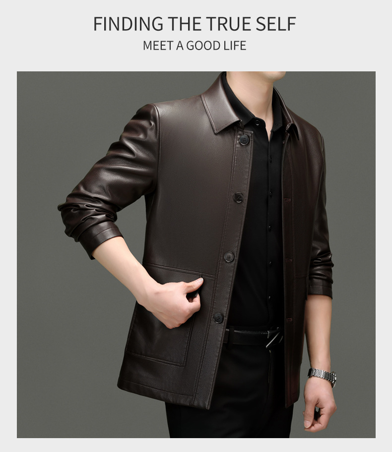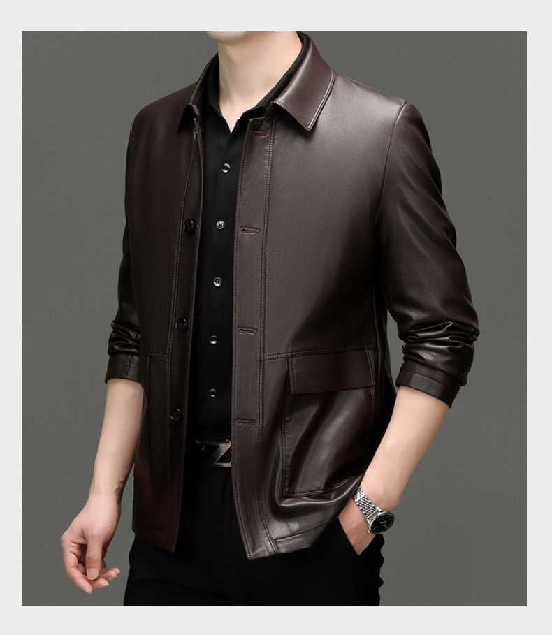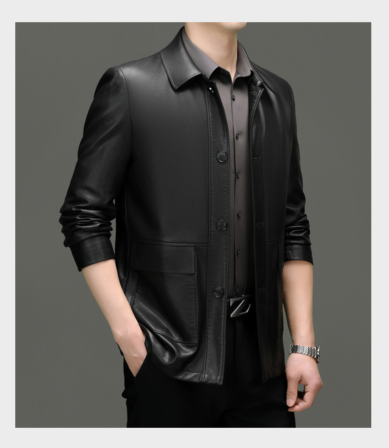 Áo khoác da dành cho nam, thiết kế dáng dài vừa phải và cổ bẻ, phù hợp cho các dịp thường ngày. Chất liệu da mềm mại mang lại cảm giác dễ chịu khi mặc. Kiểu áo này có hàng cúc đơn phía trước, tạo vẻ ngoại hình lịch sự và gọn gàng. Có thể phối hợp cùng quần âu hoặc quần jeans để tạo nên những phong cách khác nhau. Mặc giữ ấm và tạo điểm nhấn cho trang phục hằng ngày. | Tên sản phẩm: Áo Da Nam Kín Cổ Trung Niên - Thời Trang Nam | Mã sản phẩm: C0988 - Giá: 1.590.000đ | Mã nhà sản xuất: SUDI-G04Hình ảnh sản phẩm
