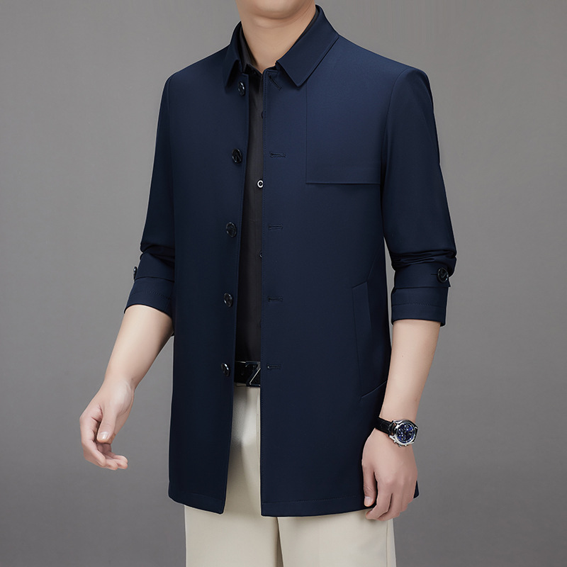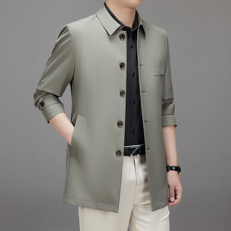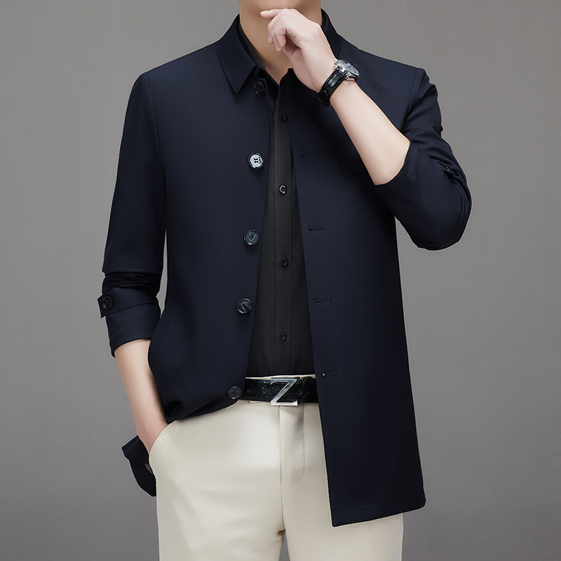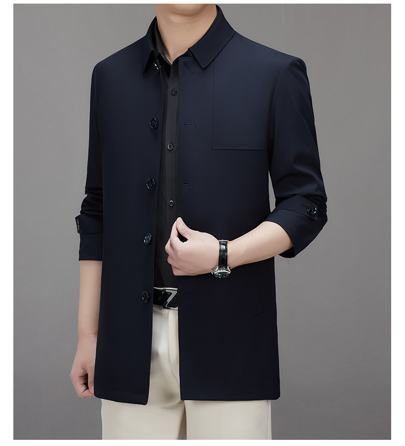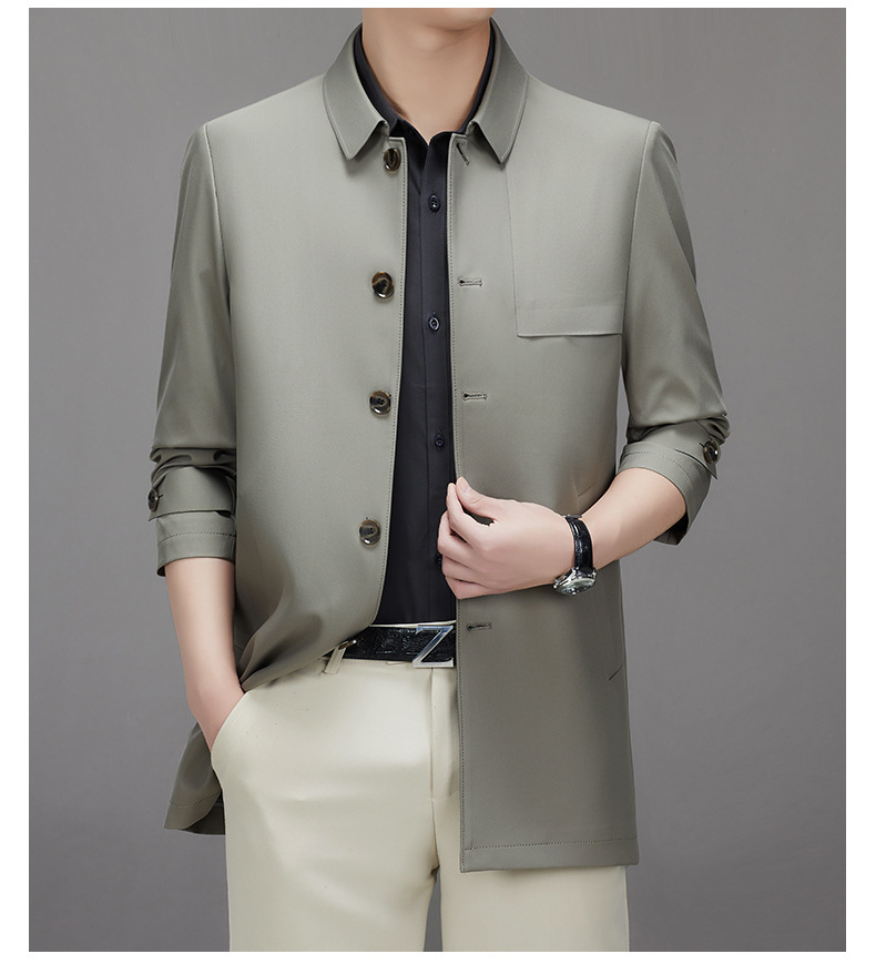 Áo khoác dành cho nam, thiết kế cổ bẻ dáng dài vừa phải, phù hợp mặc vào tiết trời xuân và thu. Chất vải mềm mại, rủ nhẹ tạo cảm giác thoải mái và lịch sự. Sản phẩm có khả năng che gió nhẹ, dễ dàng phối cùng nhiều trang phục khác nhau trong các dịp làm việc hoặc sinh hoạt thường ngày. Mặc kèm áo thun hoặc áo sơ mi bên trong đều phù hợp. | Tên sản phẩm: Áo Khoác Nam Kín Cổ Hàng Mùa Xuân Thu Đông Phong Cách Trẻ Trung - Thời Trang Nam | Mã sản phẩm: C0989 - Giá: 1.730.000đ | Mã nhà sản xuất: SUDI-G05Hình ảnh sản phẩm