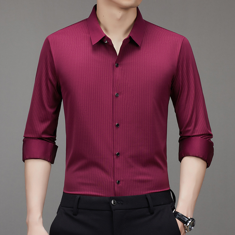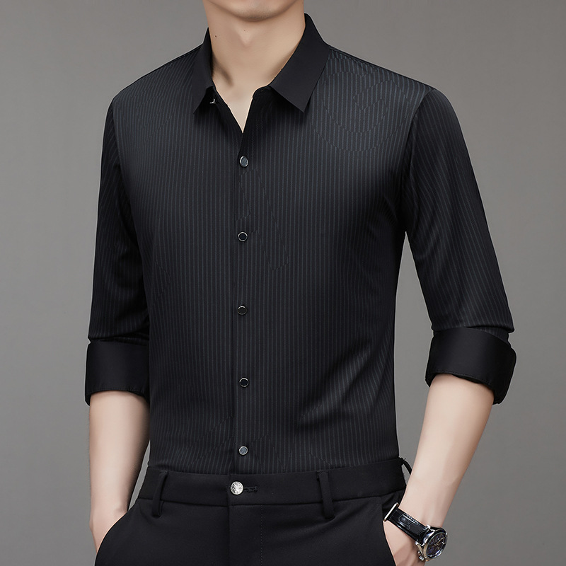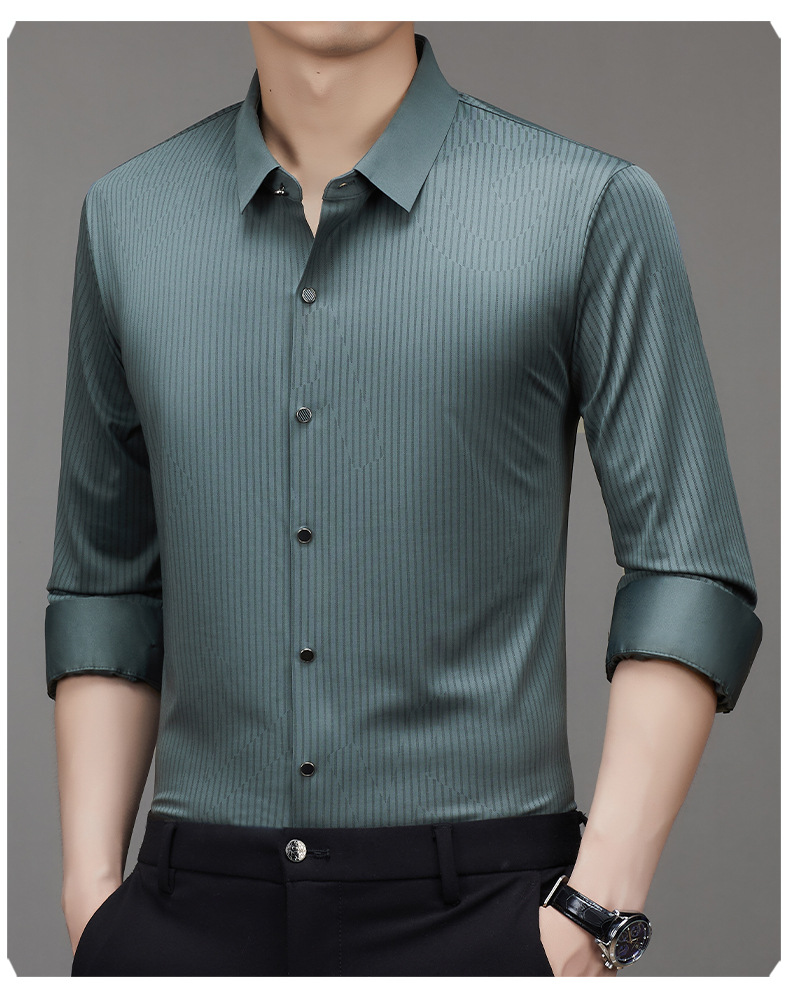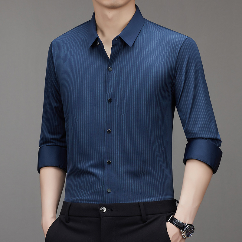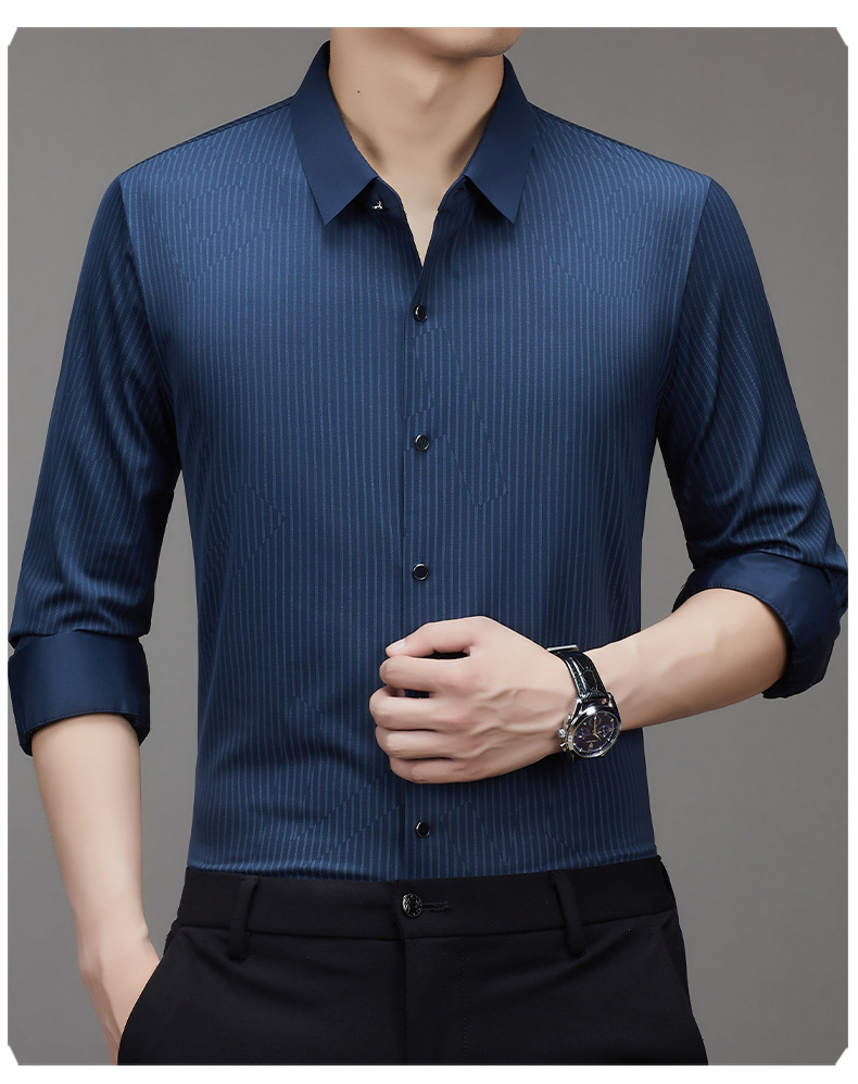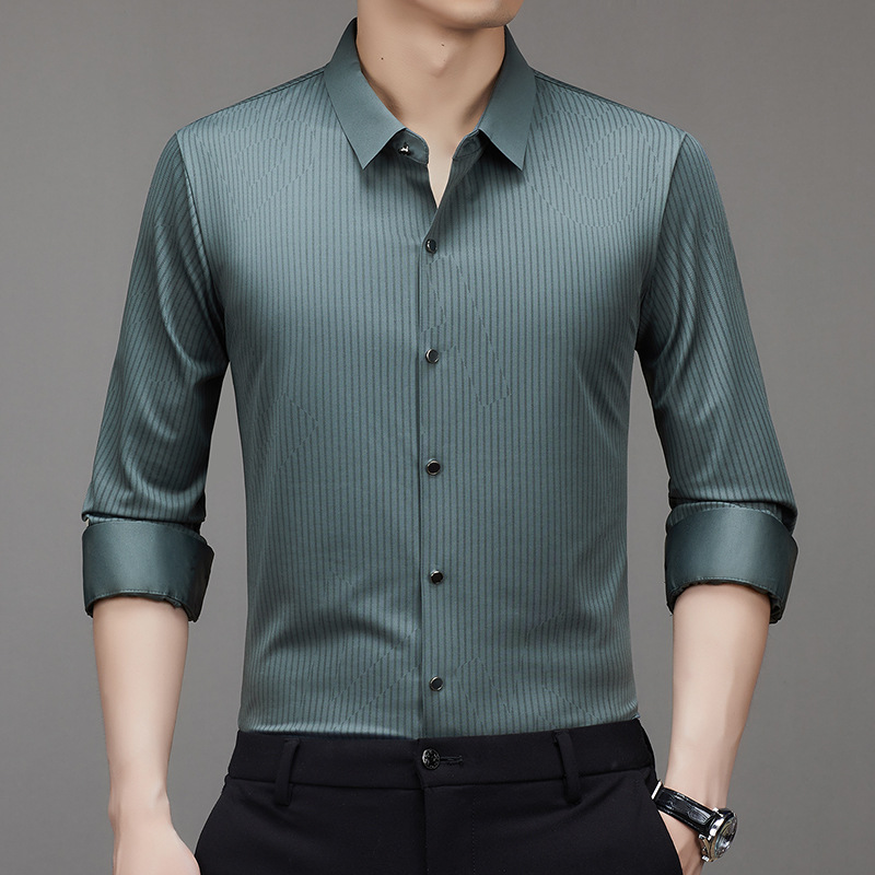 Áo sơ mi nam dài tay thiết kế không đường may nổi, mang đến sự thoải mái tối đa khi mặc. Chất vải mềm mại từ tơ tự nhiên, in họa tiết sọc dọc tinh tế. Kiểu dáng kết hợp linh hoạt giữa đi làm và dạo phố. Mặc kèm quần âu hoặc quần jeans đều phù hợp, dễ dàng phối đồ. Giặt nhẹ và phơi khô tự nhiên để giữ form áo lâu bền. | Tên sản phẩm: Áo Sơ Mi Nam Chất Liệu Lụa Tơ Tằm Dài Tay Hàng Mùa Xuân Thu Đông - Thời Trang Nam | Mã sản phẩm: C1011 - Giá: 1.120.000đ | Mã nhà sản xuất: SUDI-G04Hình ảnh sản phẩm