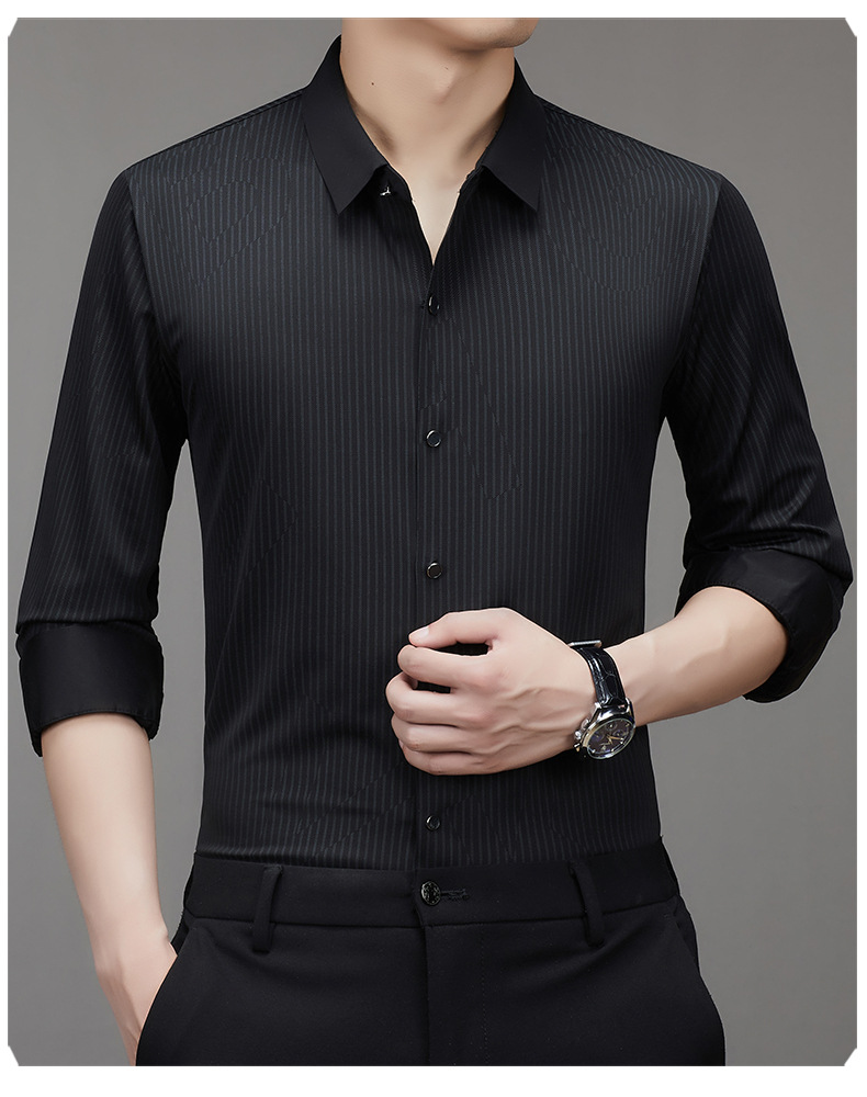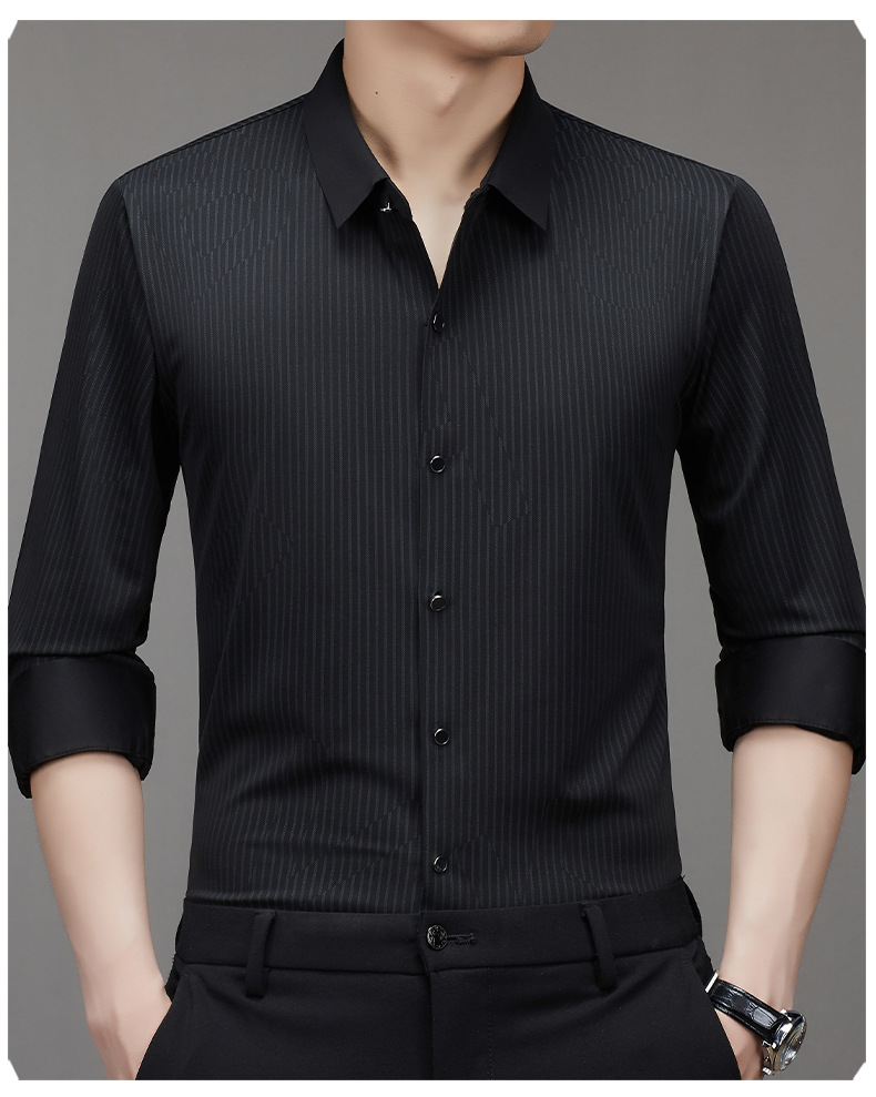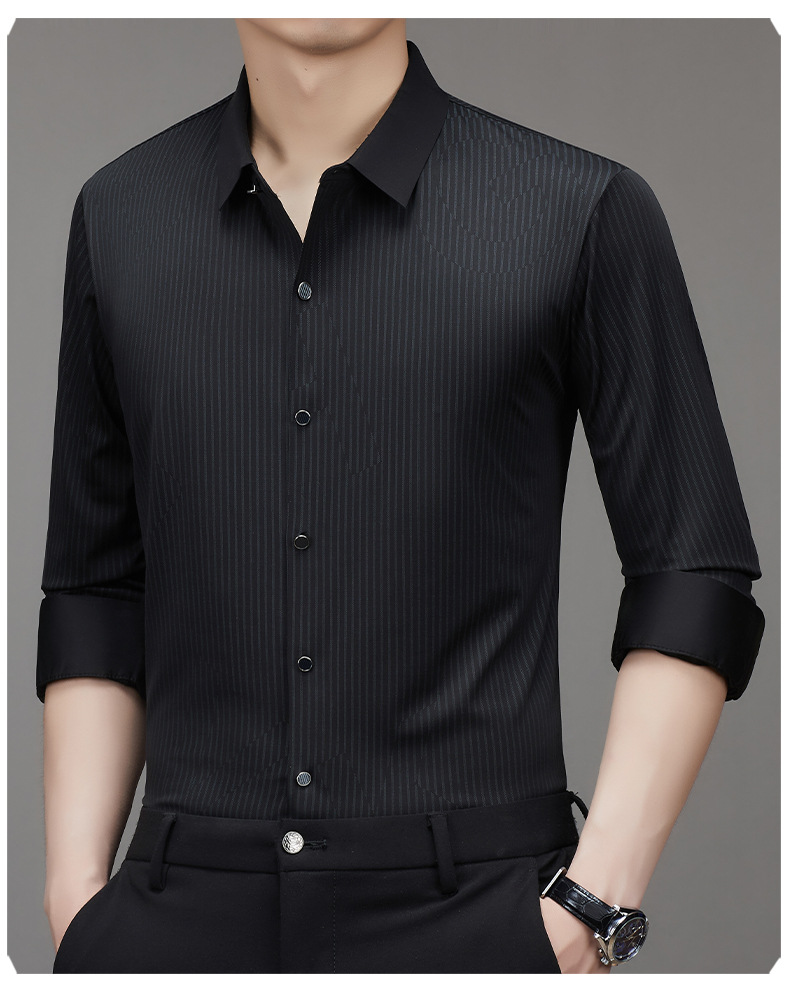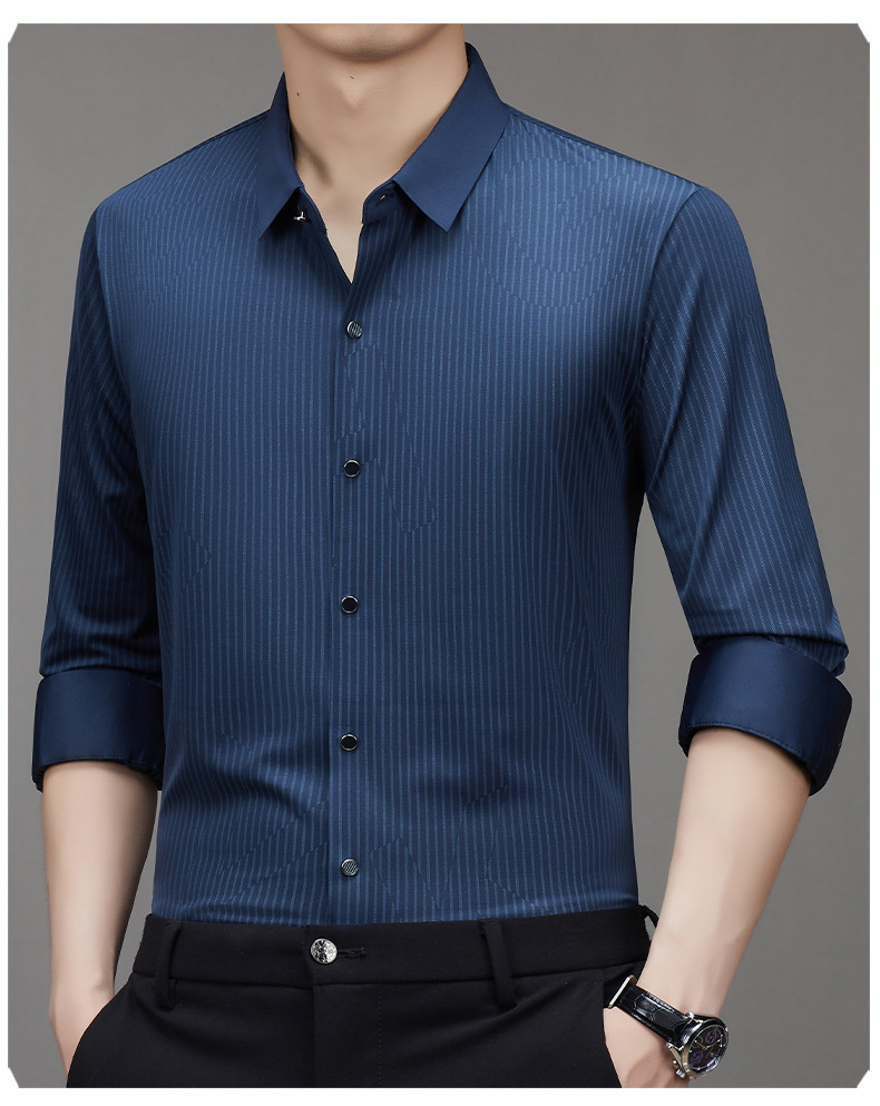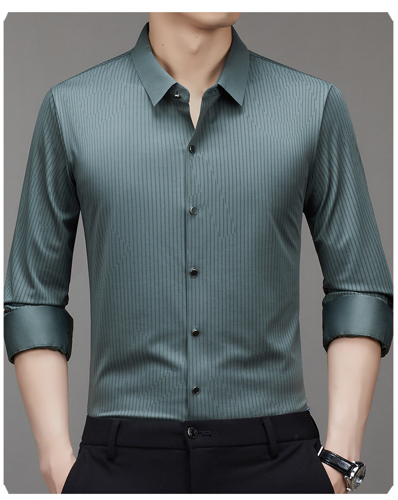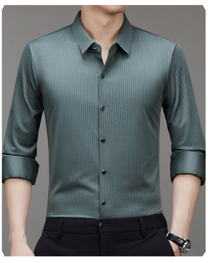 Áo sơ mi nam dài tay thiết kế không đường may nổi, mang đến sự thoải mái tối đa khi mặc. Chất vải mềm mại từ tơ tự nhiên, in họa tiết sọc dọc tinh tế. Kiểu dáng kết hợp linh hoạt giữa đi làm và dạo phố. Mặc kèm quần âu hoặc quần jeans đều phù hợp, dễ dàng phối đồ. Giặt nhẹ và phơi khô tự nhiên để giữ form áo lâu bền. | Tên sản phẩm: Áo Sơ Mi Nam Chất Liệu Lụa Tơ Tằm Dài Tay Hàng Mùa Xuân Thu Đông - Thời Trang Nam | Mã sản phẩm: C1011 - Giá: 1.120.000đ | Mã nhà sản xuất: SUDI-G04Hình ảnh sản phẩm