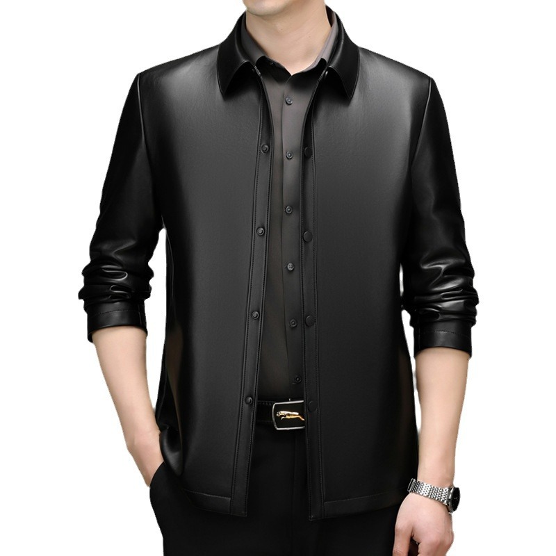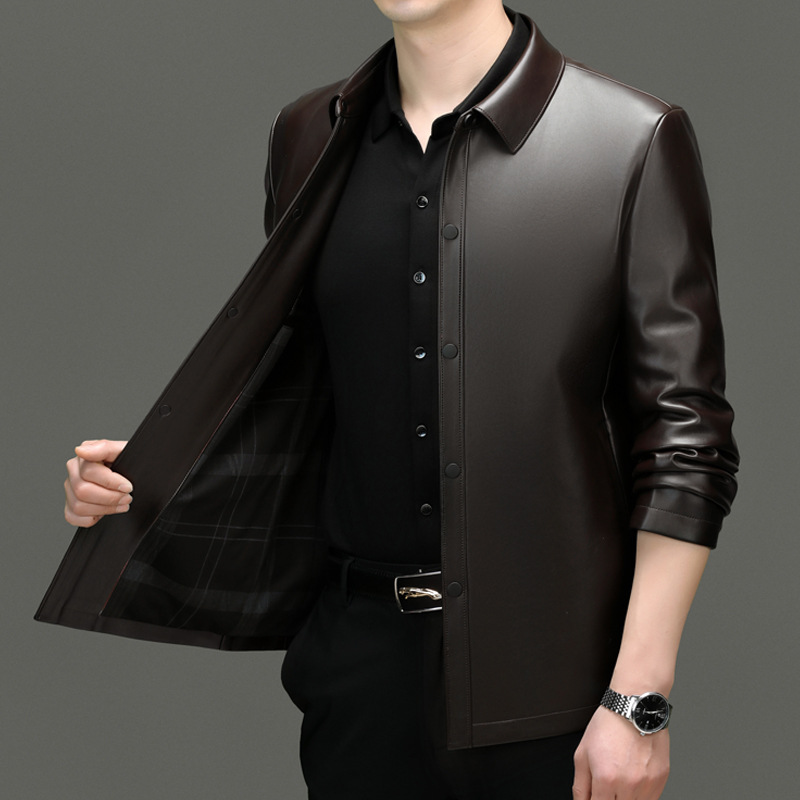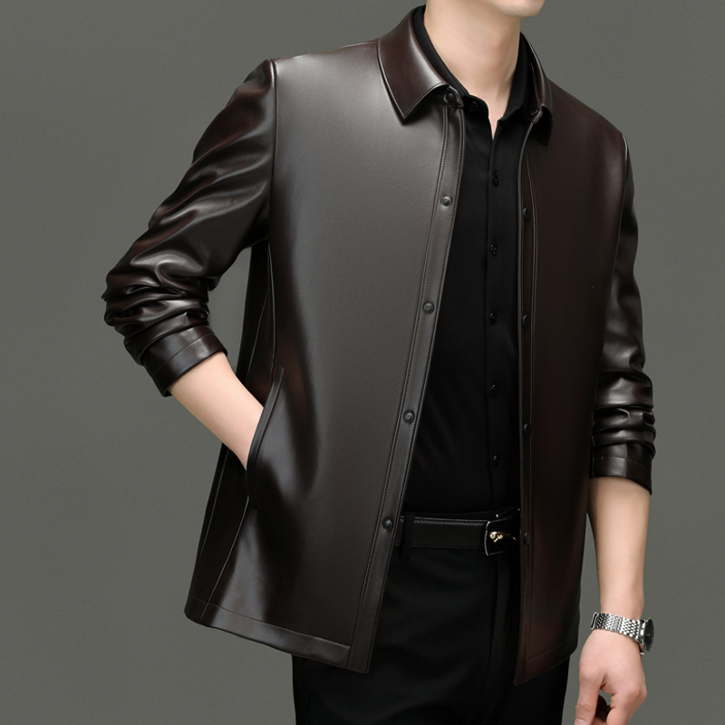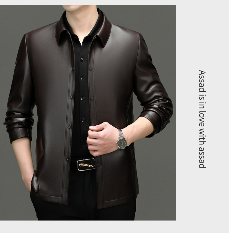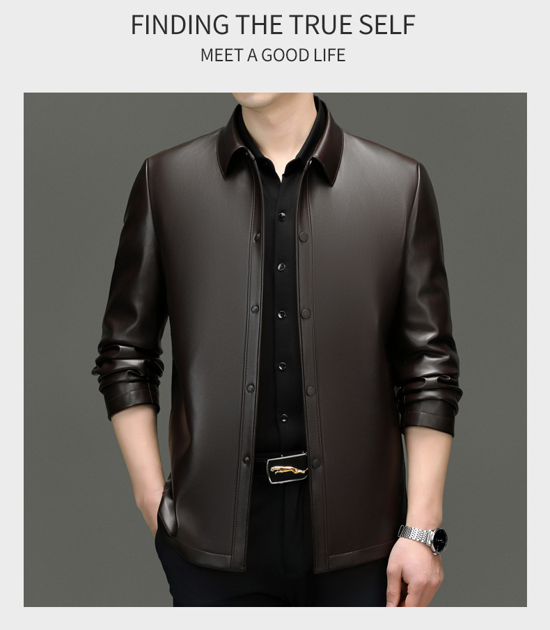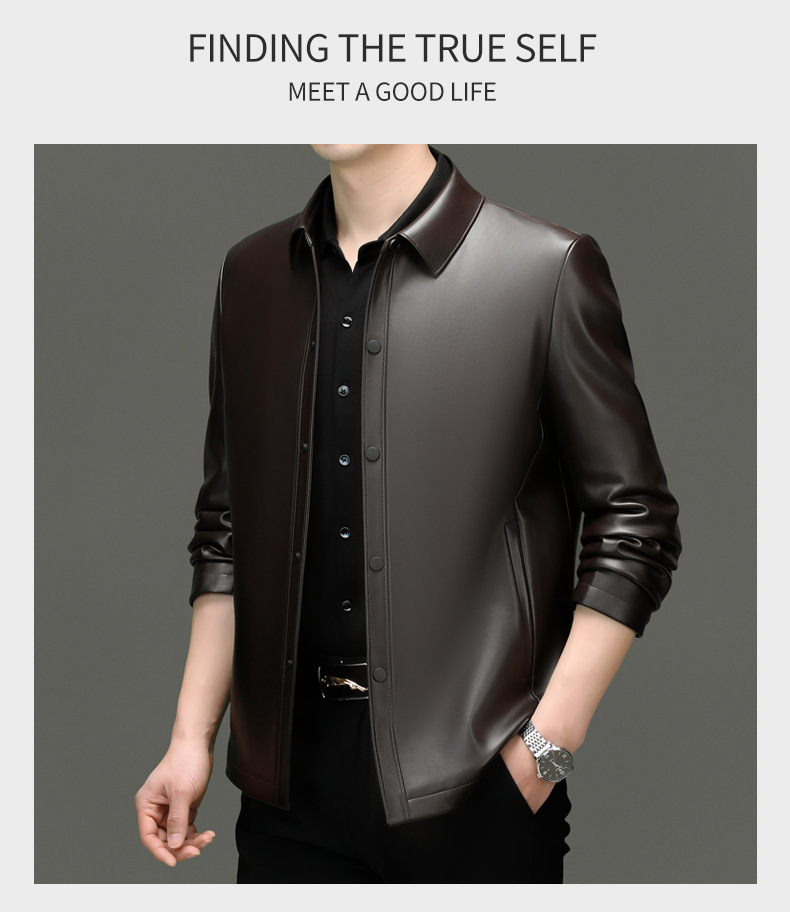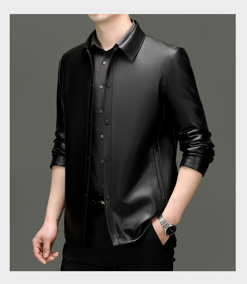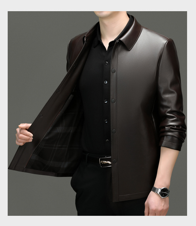 Áo khoác da dành cho nam, kiểu dáng cổ bẻ kết hợp cùng hàng khuy bấm tiện lợi. Thiết kế này phù hợp cho cả công sở và những dịp dạo phố thư giãn. Chất liệu da mềm mại mang đến cảm giác dễ chịu khi mặc. Bạn có thể phối cùng quần âu và áo sơ mi để có vẻ ngoại chỉn chu, hoặc mặc với đồ thể thao để trông năng động hơn. Sản phẩm dễ dàng bảo quản và sử dụng lâu dài. | Tên sản phẩm: Áo Da Nam Kín Cổ Trung Niên - Thời Trang Nam | Mã sản phẩm: C1019 - Giá: 1.640.000đ | Mã nhà sản xuất: SUDI-G05Hình ảnh sản phẩm