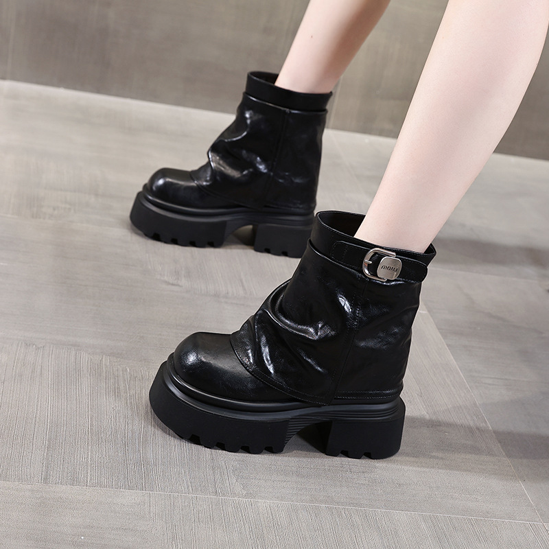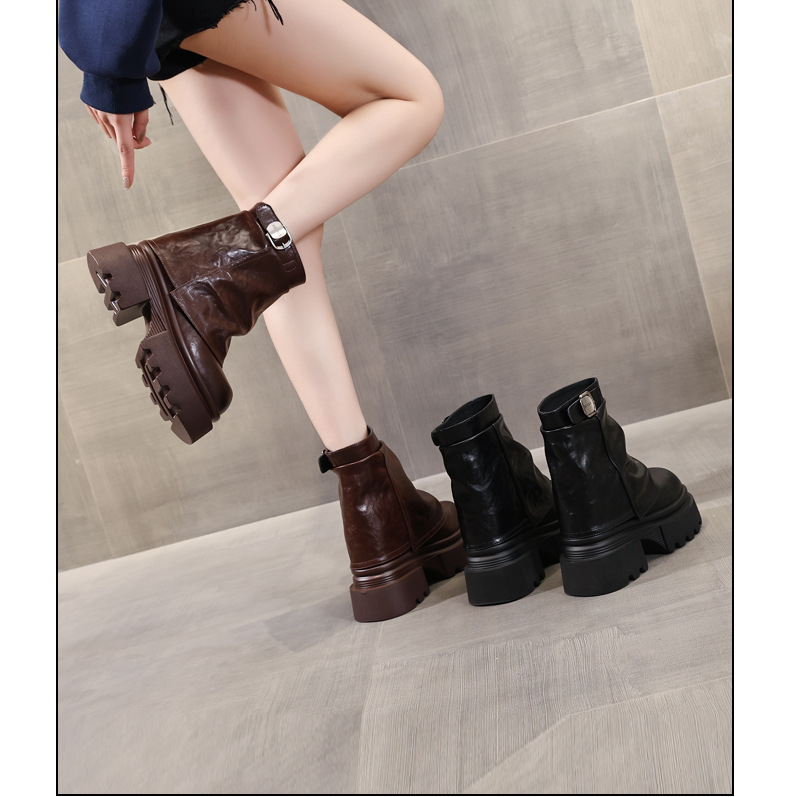 Đôi bốt cổ thấp này có điểm nhấn là khóa thắt lưng kim loại phía trước, tạo phong cách mạnh mẽ. Đế ngoài dày và đế trong được thiết kế thêm lớp đệm, giúp tăng chiều cao một cách tinh tế. Đế làm từ chất liệu mềm dẻo, mang lại cảm giác dễ chịu khi di chuyển cả ngày. Kiểu dáng phù hợp để phối cùng quần jeans hay váy. Bạn chỉ cần xỏ chân vào và kéo khóa khóa kéo bên hông là đã sẵn sàng. | Tên sản phẩm: Boot Cổ Thấp Nữ Đế Mềm Tăng Chiều Cao Đế Cao Hàng Mùa Xuân Thu Đông - Giày Dép Nữ | Mã sản phẩm: C1050 - Giá: 1.170.000đ | Mã nhà sản xuất: WEDS-G04Hình ảnh sản phẩm