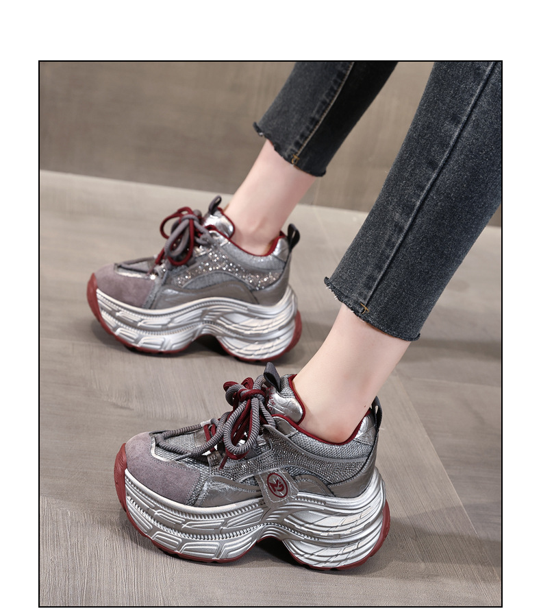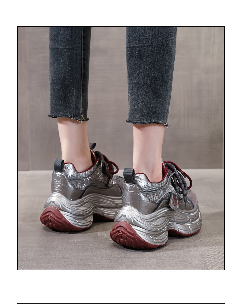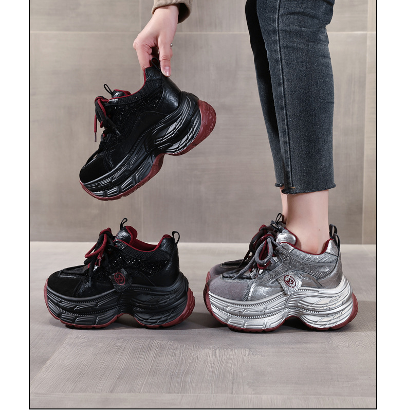 Giày thể thao nữ thiết kế dáng hầm hố, phù hợp cho dịp thu và những lúc thư giãn. Sản phẩm có phần đế dày bên trong, giúp tăng chiều cao một cách tinh tế, rất thích hợp cho những bạn gái có vóc dáng nhỏ nhắn. Trên giày được điểm xuyết các chi tiết hạt lấp lánh, tạo điểm nhấn thời trang. Bạn có thể dễ dàng phối cùng quần jeans, váy hay quần short để tạo nên phong cách năng động, thoải mái cho cả ngày dài. | Tên sản phẩm: Giày Thể Thao Tăng Chiều Cao Nữ Gắn Đá Tăng Chiều Cao Đế Cao Hàng Mùa Xuân Thu Đông - Giày Dép Nữ | Mã sản phẩm: C1057 - Giá: 1.170.000đ | Mã nhà sản xuất: WEDS-G04Hình ảnh sản phẩm