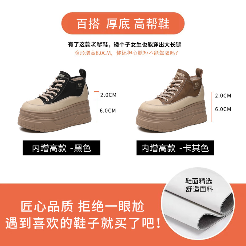 Đôi giày thể thao dành cho nữ này có phần đế dày mềm mại, tạo dáng vững chãi và giúp tăng chiều cao một cách tự nhiên. Kiểu dáng cổ cao ôm sát cổ chân, phối cùng phong cách thời trang năng động, dễ dàng phối với nhiều loại trang phục. Sản phẩm phù hợp cho các hoạt động hằng ngày, đi làm hay đi chơi. Bạn chỉ cần xỏ chân vào và buộc dây là đã có ngay một diện mạo trẻ trung, thoải mái. | Tên sản phẩm: Giày Thể Thao Nữ Đế Mềm Tăng Chiều Cao Đế Cao Hàng Mùa Xuân Thu Đông - Giày Dép Nữ | Mã sản phẩm: C1075 - Giá: 1.080.000đ | Mã nhà sản xuất: WEDS-G03Hình ảnh sản phẩm