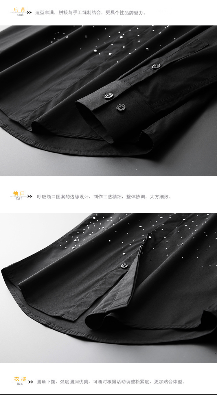 Áo sơ mi nam tay dài này có phong cách trẻ trung, hiện đại. Áo được điểm xuyết tinh tế bởi các hạt đính lấp lánh như những vì sao, tạo nên điểm nhấn độc đáo. Kiểu dáng ôm vừa vặn, phù hợp cho những dịp đi chơi, gặp gỡ bạn bè vào buổi tối. Chất vải mềm mại, thoáng mát giúp người mặc cảm thấy dễ chịu. Bạn có thể mặc như áo bên trong hoặc mặc kết hợp với quần âu, quần jean đều rất hợp. | Tên sản phẩm: Áo Sơ Mi Nam Dáng Ôm - Thời Trang Nam | Mã sản phẩm: C1080 - Giá: 1.440.000đ | Mã nhà sản xuất: FODAR-G04Hình ảnh sản phẩm