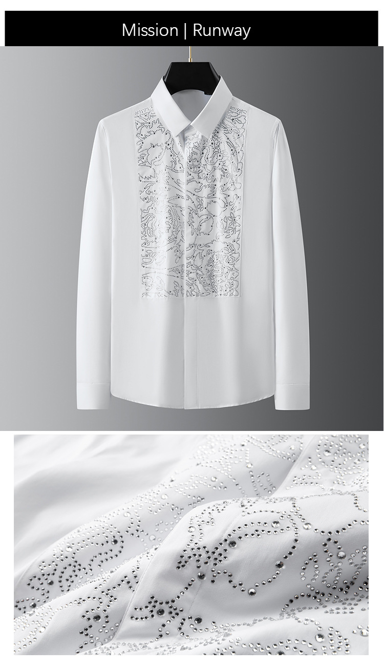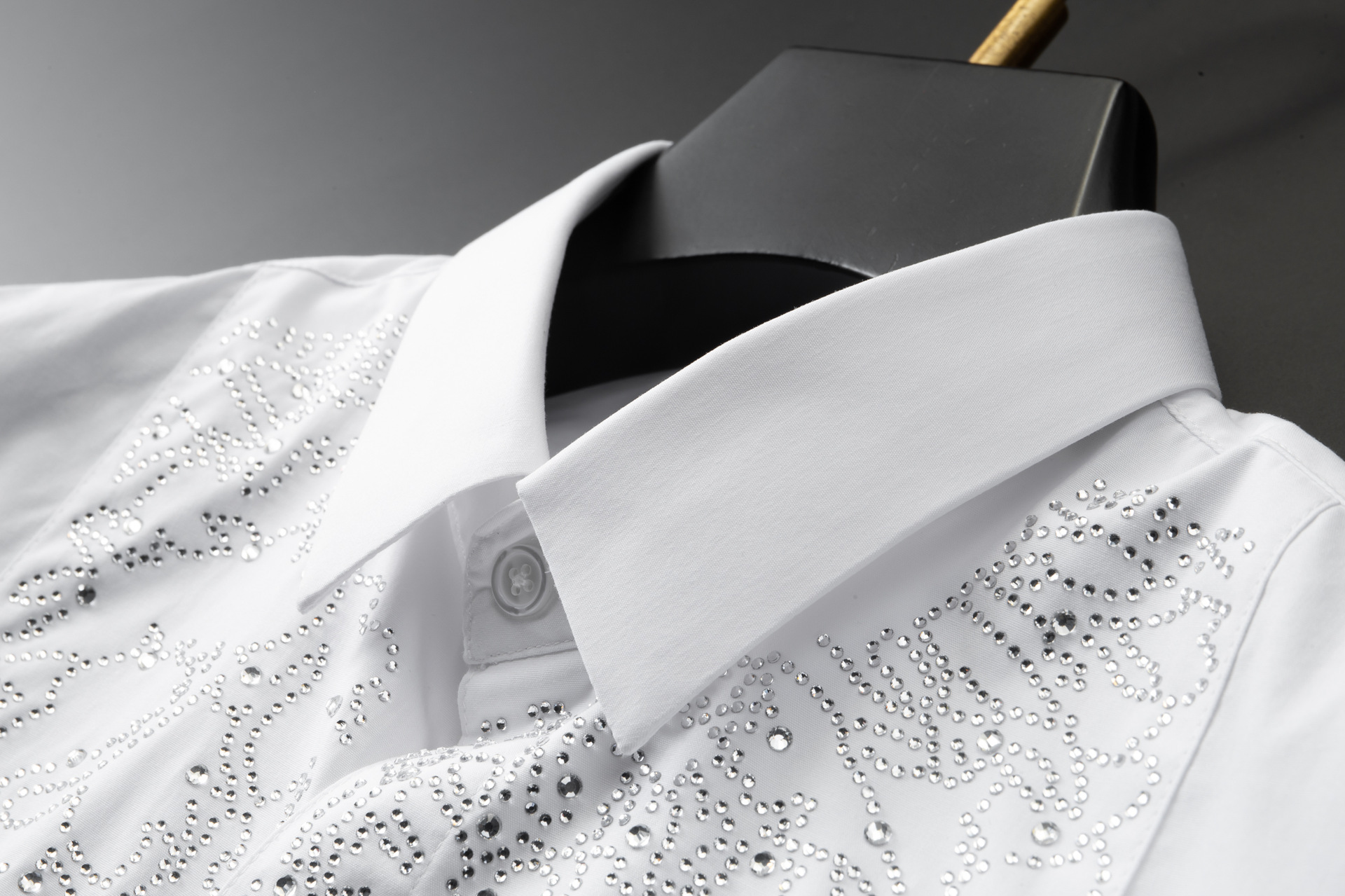 Áo sơ mi dài tay dành cho nam, kiểu dáng phương Tây hiện đại, phù hợp cho mùa xuân. Áo có điểm nhấn là các hạt đính lấp lánh tạo nên phong cách trẻ trung, năng động. Chất liệu vải mềm mại, thoáng mát, mang lại sự dễ chịu khi mặc cả ngày. Sản phẩm thích hợp để mặc đi chơi, đi làm hay dự các cuộc gặp mặt thường ngày. Có thể phối với quần jean hoặc quần âu để có những bộ trang phục đẹp. | Tên sản phẩm: Áo Sơ Mi Nam Dài Tay Hàng Mùa Xuân Thu Đông Phong Cách Âu Mỹ - Thời Trang Nam | Mã sản phẩm: C1141 - Giá: 1.900.000đ | Mã nhà sản xuất: FODAR-G05Hình ảnh sản phẩm