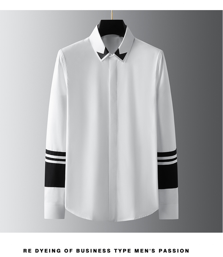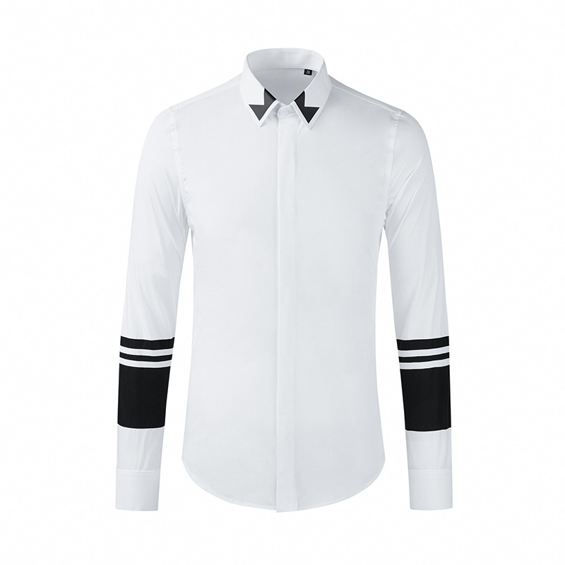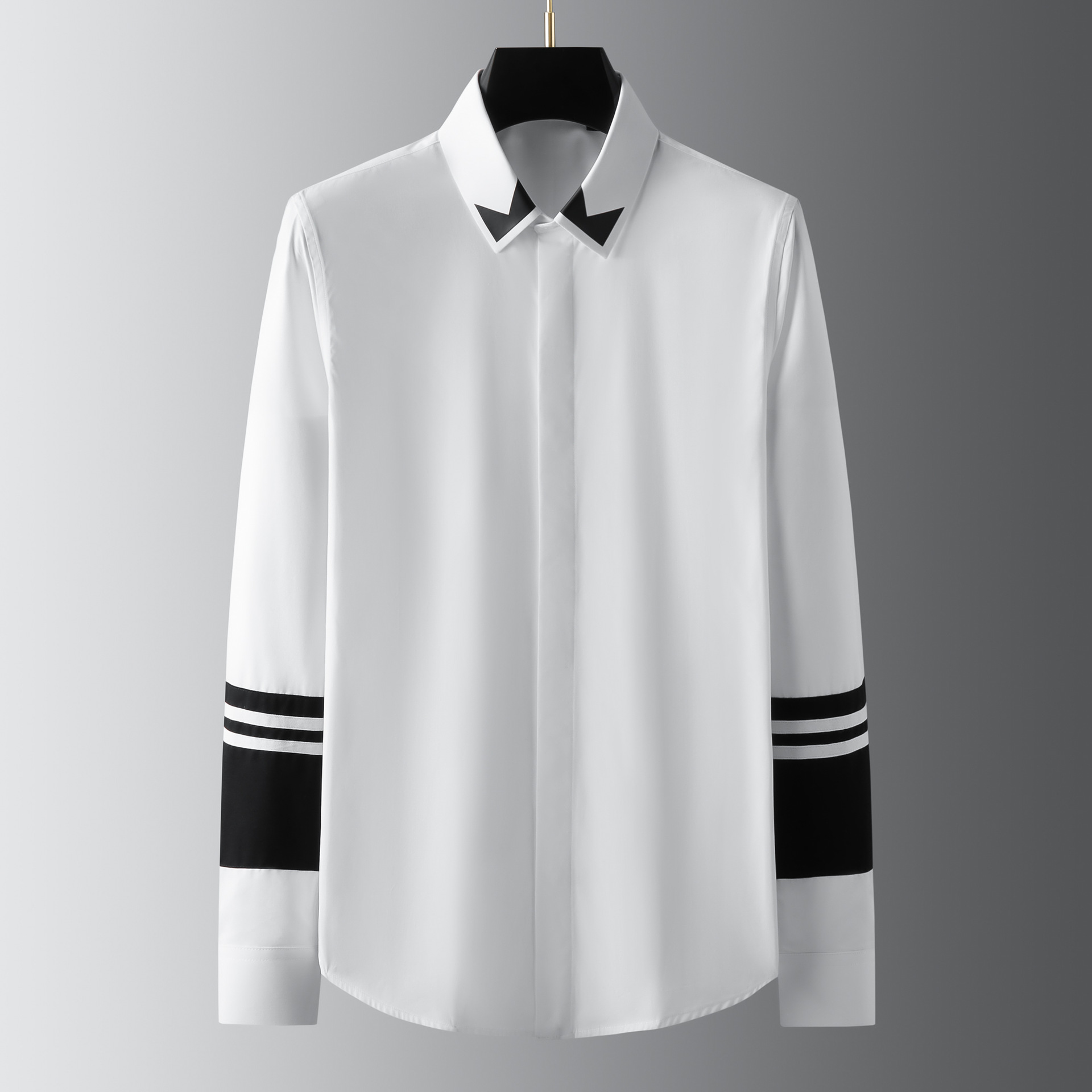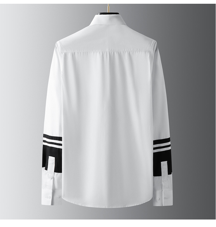 Áo sơ mi dài tay này có kiểu dáng ôn nhẹ nhàng, tôn dáng người mặc. Phần cổ áo và tay áo được may viền chắc chắn. Điểm nhấn là sự kết hợp hài hòa giữa hai màu đen trắng ở phần tay, tạo nên vẻ năng động. Chất vải mềm mại, thoáng mát, phù hợp cho nhiều dịp sinh hoạt thường ngày. Có thể mặc cùng quần tây hoặc quần jean để tạo phong cách riêng. | Tên sản phẩm: Áo Sơ Mi Nam Dáng Ôm Phong Cách Âu Mỹ - Thời Trang Nam | Mã sản phẩm: C1148 - Giá: 1.360.000đ | Mã nhà sản xuất: FODAR-G04Hình ảnh sản phẩm