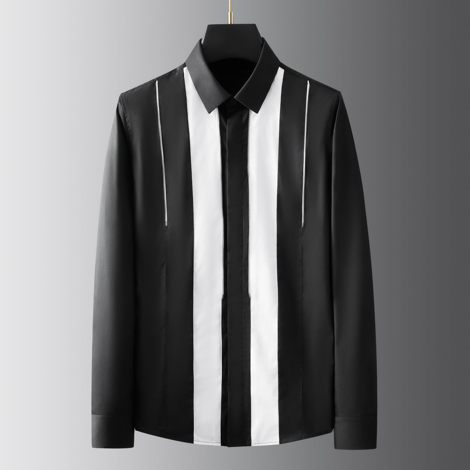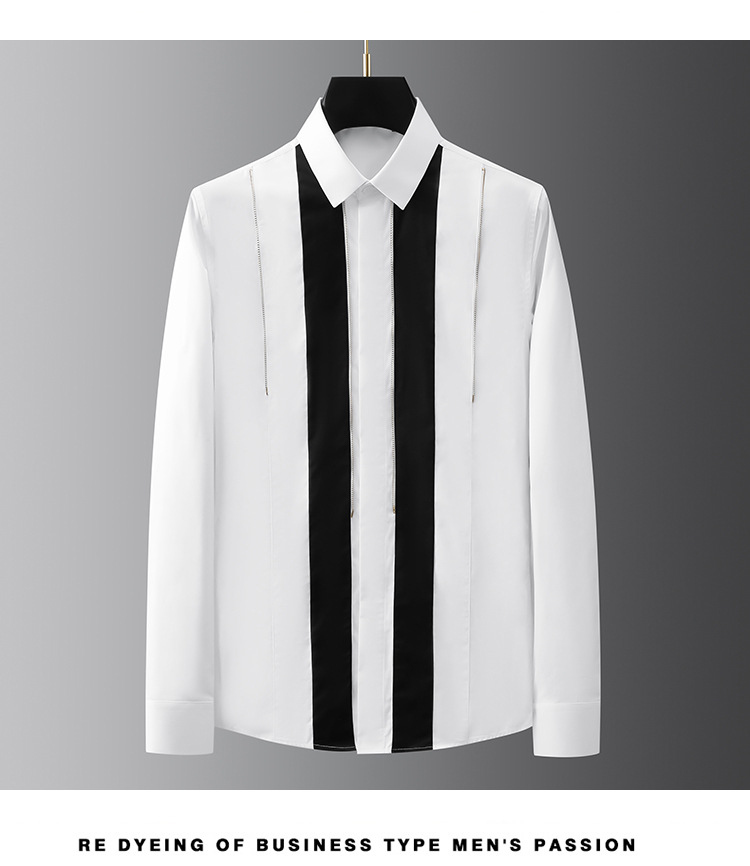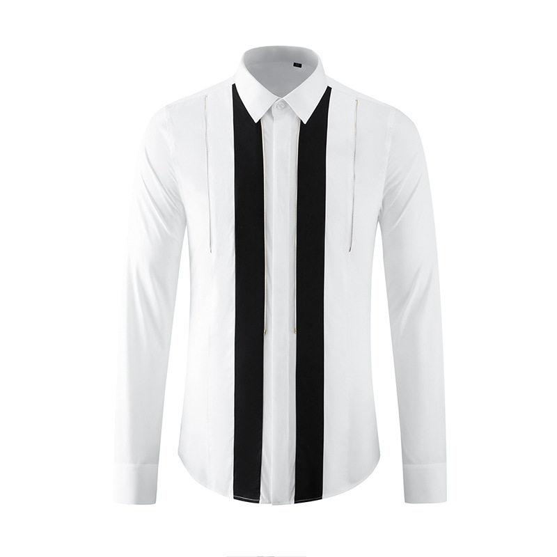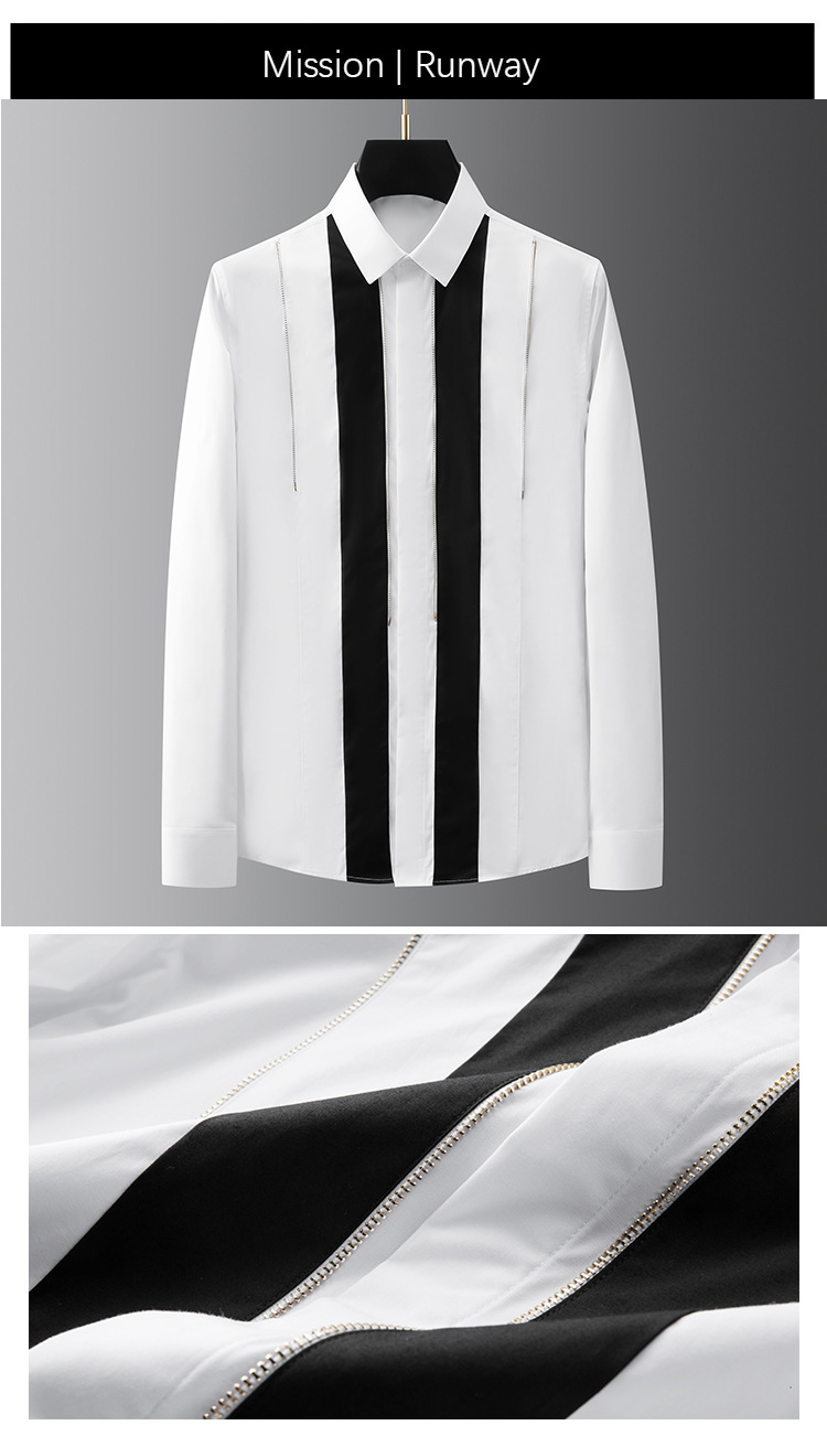 Áo sơ mi dài tay dành cho nam với điểm nhấn là sự kết hợp hai màu đen trắng mạnh mẽ. Trên áo có trang trí dây xích kim loại vàng tạo nên nét cá tính riêng biệt. Chất liệu vải mềm mại, thoáng mát giúp người mặc cảm thấy dễ chịu. Sản phẩm phù hợp để mặc đi làm, đi chơi hoặc dự các buổi gặp mặt. Có thể kết hợp cùng quần âu hoặc quần jeans để tạo phong cách ấn tượng. | Tên sản phẩm: Áo Sơ Mi Nam Dài Tay - Thời Trang Nam | Mã sản phẩm: C1156 - Giá: 1.360.000đ | Mã nhà sản xuất: FODAR-G04Hình ảnh sản phẩm