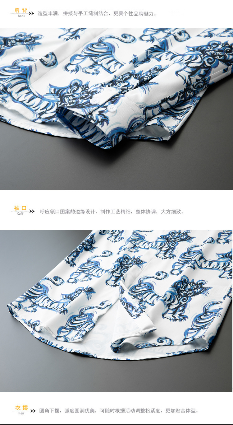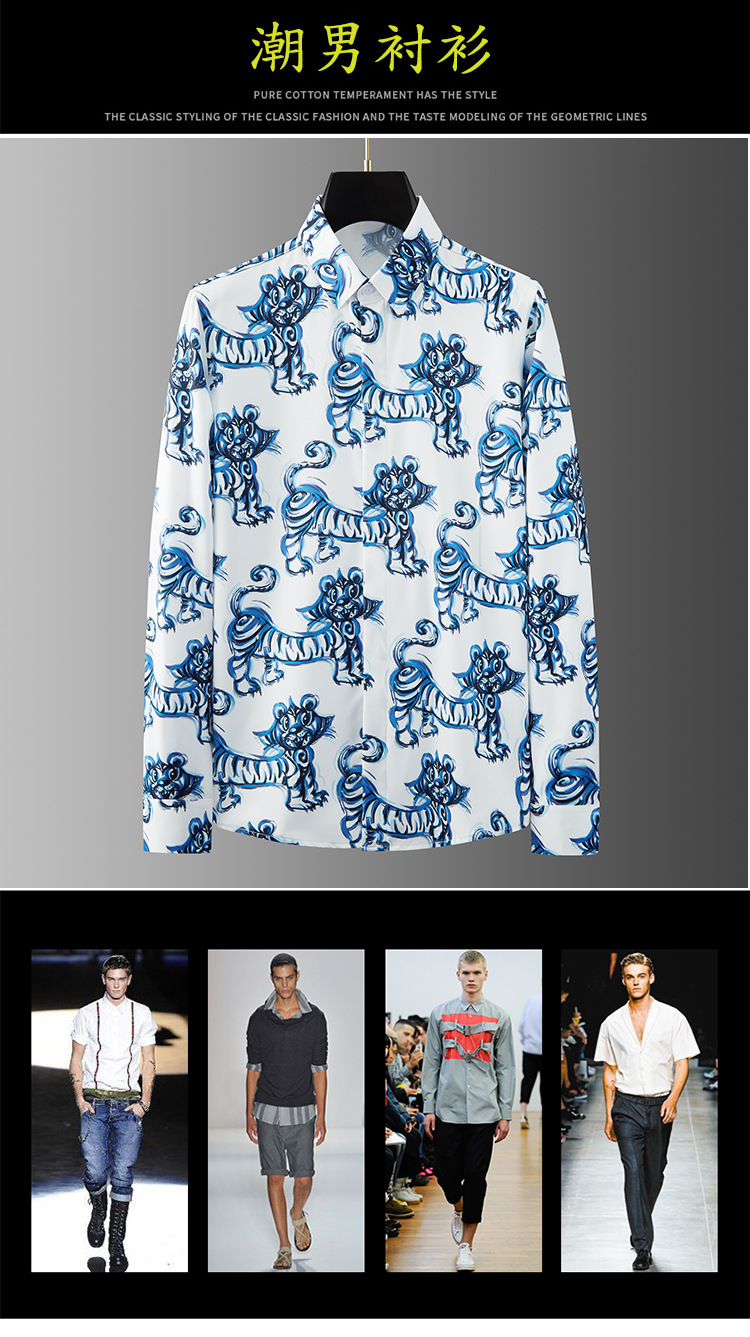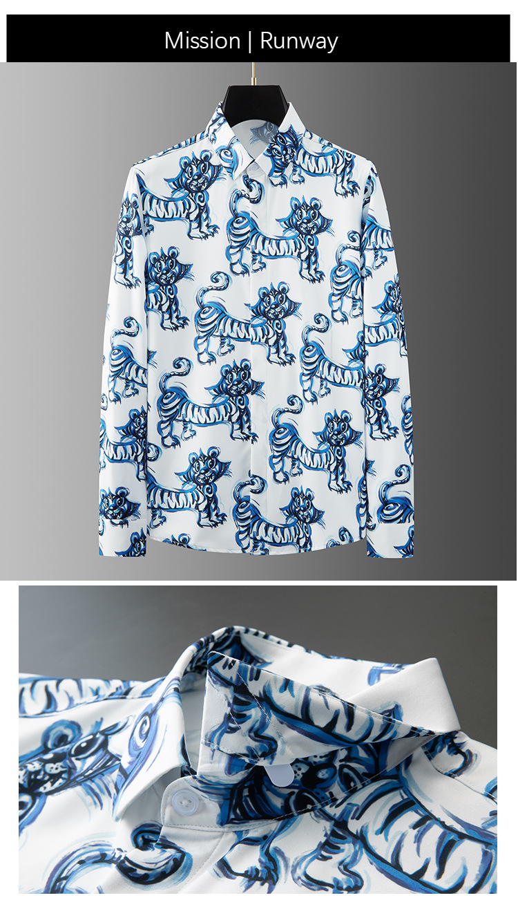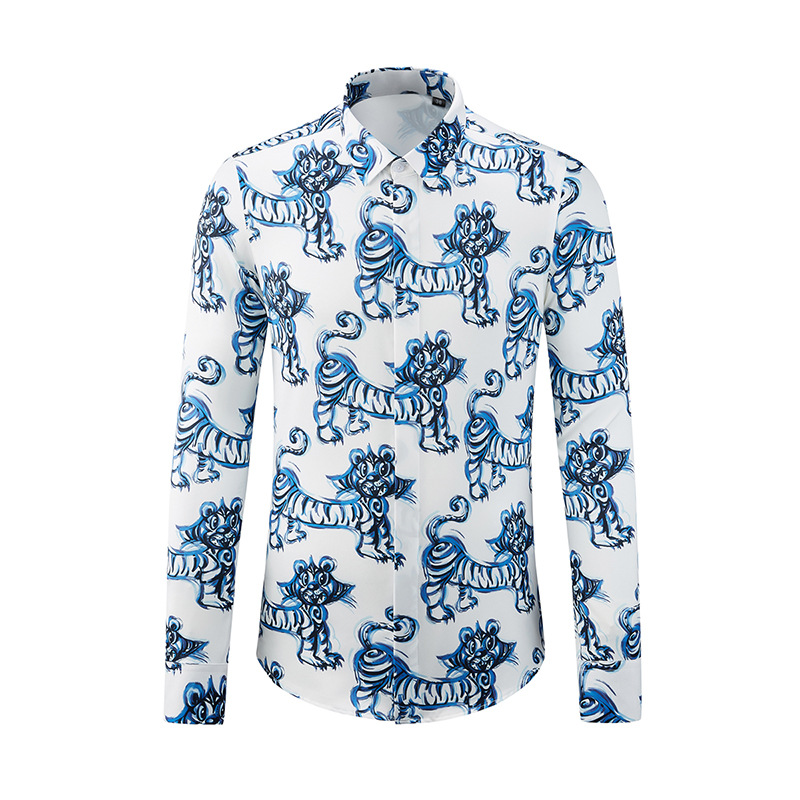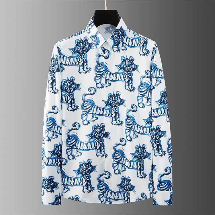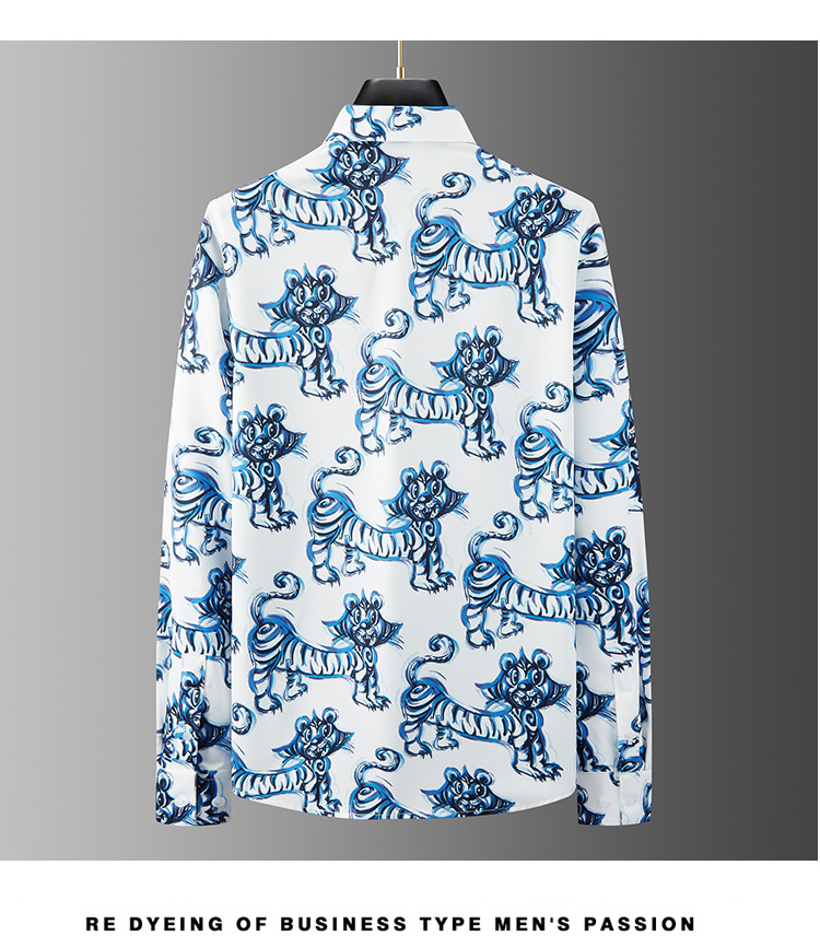 Áo sơ mi dài tay dành cho nam, kiểu dáng trẻ trung với hình con hổ được in nổi bật. Chất vải mềm mại, ít nhăn nên rất tiện lợi khi mặc và bảo quản. Sản phẩm mang phong cách đường phố, phù hợp cho tiết trời thu. Có thể mặc đi làm, đi chơi hay dự các cuộc gặp mặt thường ngày. Giặt máy nhẹ nhàng để giữ hình in được bền đẹp. | Tên sản phẩm: Áo Sơ Mi Nam Dài Tay Họa Tiết Hoa Hàng Mùa Xuân Thu Đông Phong Cách Âu Mỹ - Thời Trang Nam | Mã sản phẩm: C1158 - Giá: 1.900.000đ | Mã nhà sản xuất: FODAR-G05Hình ảnh sản phẩm