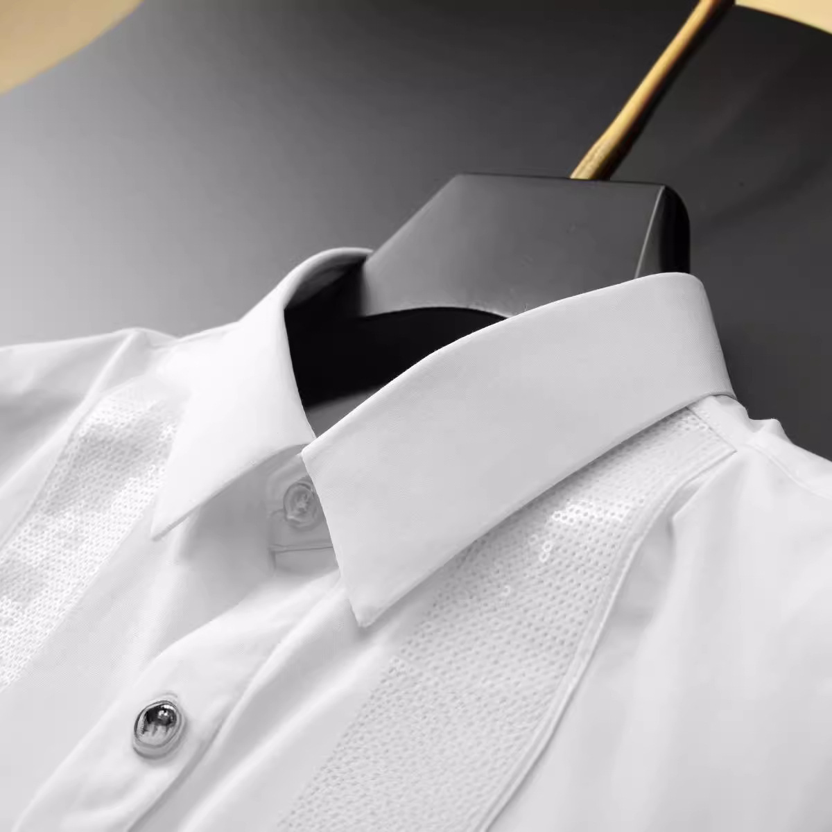 Áo dài tay dành cho nam, được làm từ chất liệu bông mềm mại, mang đến sự thoải mái khi mặc. Điểm nhấn nổi bật là đường viền cổ áo và hàng cúc được thêu kết cườm lấp lánh, tạo nên phong cách cá tính và nổi bật. Kiểu dáng phù hợp cho nhiều dịp, từ gặp mặt bạn bè đến những buổi tối vui chơi. Sản phẩm dễ dàng phối hợp với quần jean hoặc quần âu. Giặt nhẹ nhàng để giữ form áo và các chi tiết thêu luôn đẹp. | Tên sản phẩm: Áo Sơ Mi Nam Chất Liệu Vải Bông Dài Tay Thêu Họa Tiết Hoa - Thời Trang Nam | Mã sản phẩm: C1162 - Giá: 1.310.000đ | Mã nhà sản xuất: FODAR-G04Hình ảnh sản phẩm