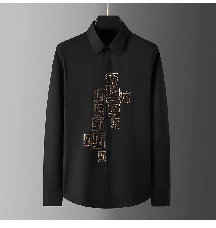 Áo sơ mi dài tay dành cho nam với phong cách sáng tạo, nổi bật nhờ họa tiết thêu kết hợp hạt ánh vàng và mảnh hình học đa dạng. Chất vải mềm mại, thoáng mát, tạo cảm giác dễ chịu khi mặc. Kiểu dáng trẻ trung, phù hợp cho nhiều dịp từ đi làm đến gặp gỡ bạn bè. Có thể phối cùng quần tây hoặc quần jean để hoàn thiện bộ trang phục. Giặt nhẹ nhàng để bảo quản đường thêu. | Tên sản phẩm: Áo Sơ Mi Nam Dài Tay Thêu Họa Tiết Hoa Phong Cách Âu Mỹ - Thời Trang Nam | Mã sản phẩm: C1203 - Giá: 1.900.000đ | Mã nhà sản xuất: FODAR-G05Hình ảnh sản phẩm