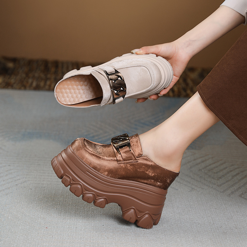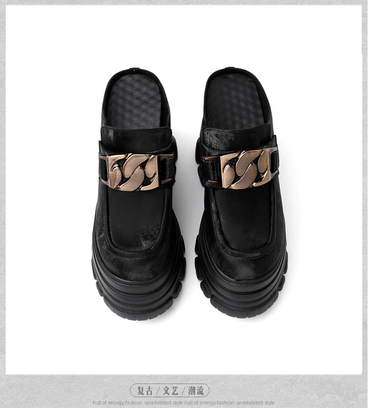 Đôi dép mang trong nhà và cả ngoài đường này được làm từ chất liệu da mềm mại, giúp bàn chân luôn dễ chịu. Kiểu dáng kín mũi và đế dày tới mười hai phân tạo dáng đứng cao hơn. Thiết kế đơn giản, dễ phối cùng nhiều loại trang phục khác nhau như quần jeans hay váy ngắn, phù hợp cho các cô nàng thích phong cách thoải mái. Bạn chỉ cần xỏ chân vào và bước đi nhẹ nhàng là được. | Tên sản phẩm: Giày Dép Lê Nữ Chất Liệu Da Bò Cao 12cm Tăng Chiều Cao Đế Cao Hàng Mùa Xuân Thu Đông - Giày Dép Nữ | Mã sản phẩm: C1244 - Giá: 3.590.000đ | Mã nhà sản xuất: QIDNG-G06Hình ảnh sản phẩm