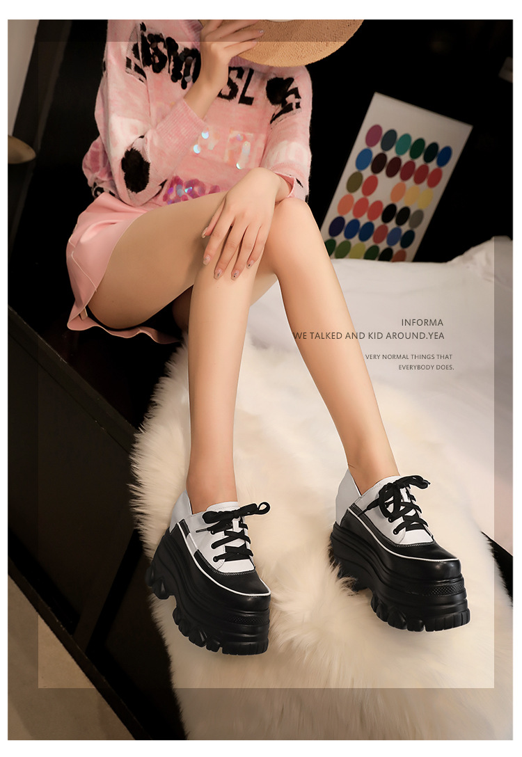 Đôi giày thể thao nữ này có phần đế dày giúp tăng chiều cao một cách tự nhiên. Kiểu dáng cổ điển, dễ phối đồ với nhiều trang phục khác nhau như quần jeans hay váy ngắn. Chất liệu nhẹ, êm ái cho bạn thoải mái vận động cả ngày. Sản phẩm phù hợp cho các hoạt động thường ngày, đi học hay đi chơi. Chỉ cần xỏ vào và kéo khóa nhẹ nhàng là đã sẵn sàng ra ngoài. | Tên sản phẩm: Giày Thể Thao Nữ Cao 12cm Tăng Chiều Cao Đế Cao Hàng Mùa Xuân Thu Đông Phong Cách Hàn Quốc - Giày Dép Nữ | Mã sản phẩm: C1250 - Giá: 2.760.000đ | Mã nhà sản xuất: QIDNG-G06Hình ảnh sản phẩm