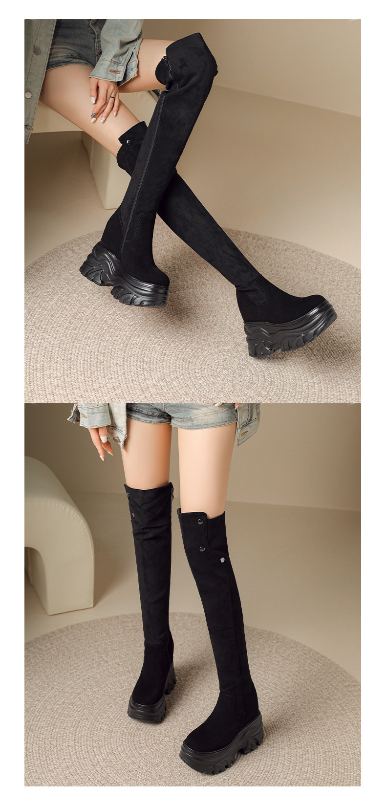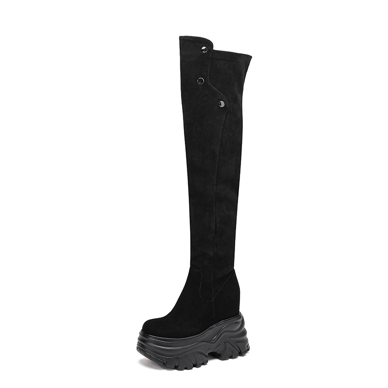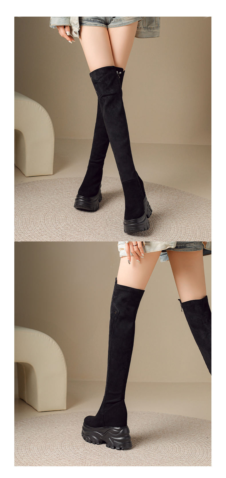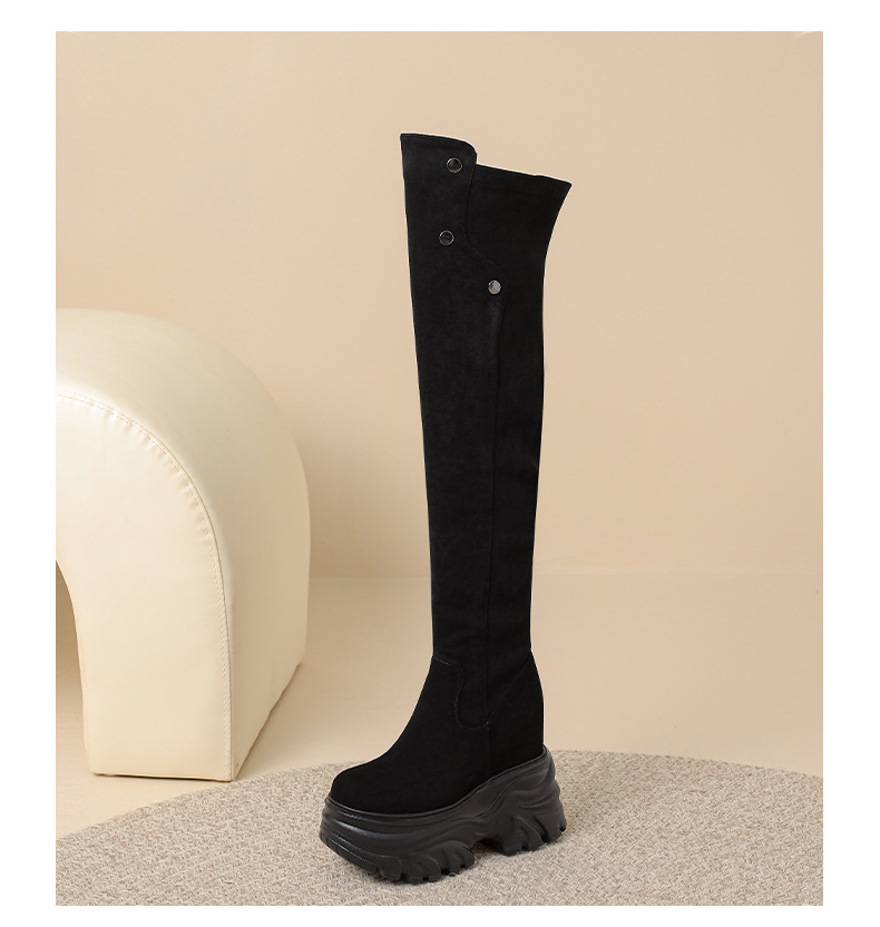 Đôi bốt dáng ôm dài qua gối này được làm từ chất liệu da mềm, co giãn nhẹ. Bên trong có lớp lót ấm áp, phù hợp cho thời tiết mát mẻ. Đế ngoài dày và vùng mũi được thiết kế chống thấm nước, kết hợp với đế trong giúp tăng chiều cao một cách tinh tế. Kiểu dáng thanh lịch, dễ dàng phối cùng nhiều trang phục như quần legging, váy hay quần jeans để tạo điểm nhấn. | Tên sản phẩm: Boot Cổ Cao Nữ Chất Liệu Da Bò Cao 14cm Cổ Cao Qua Gối Chống Nước Tăng Chiều Cao Đế Cao Hàng Mùa Xuân Thu Đông - Giày Dép Nữ | Mã sản phẩm: C1262 - Giá: 3.680.000đ | Mã nhà sản xuất: QIDNG-G06Hình ảnh sản phẩm