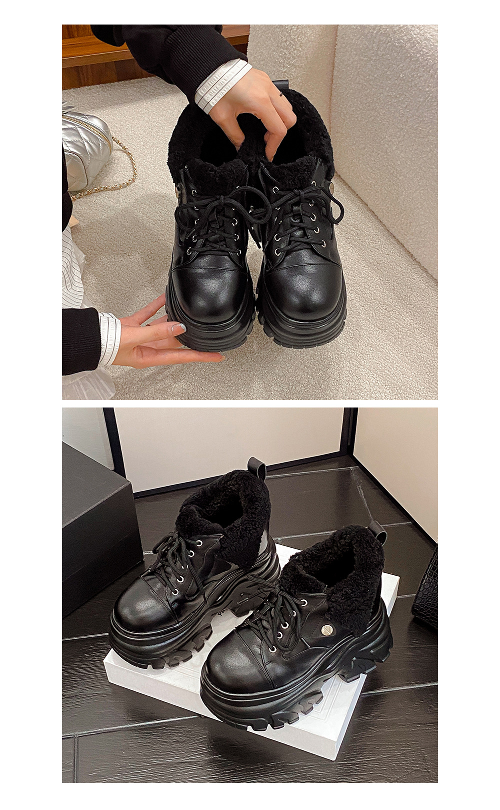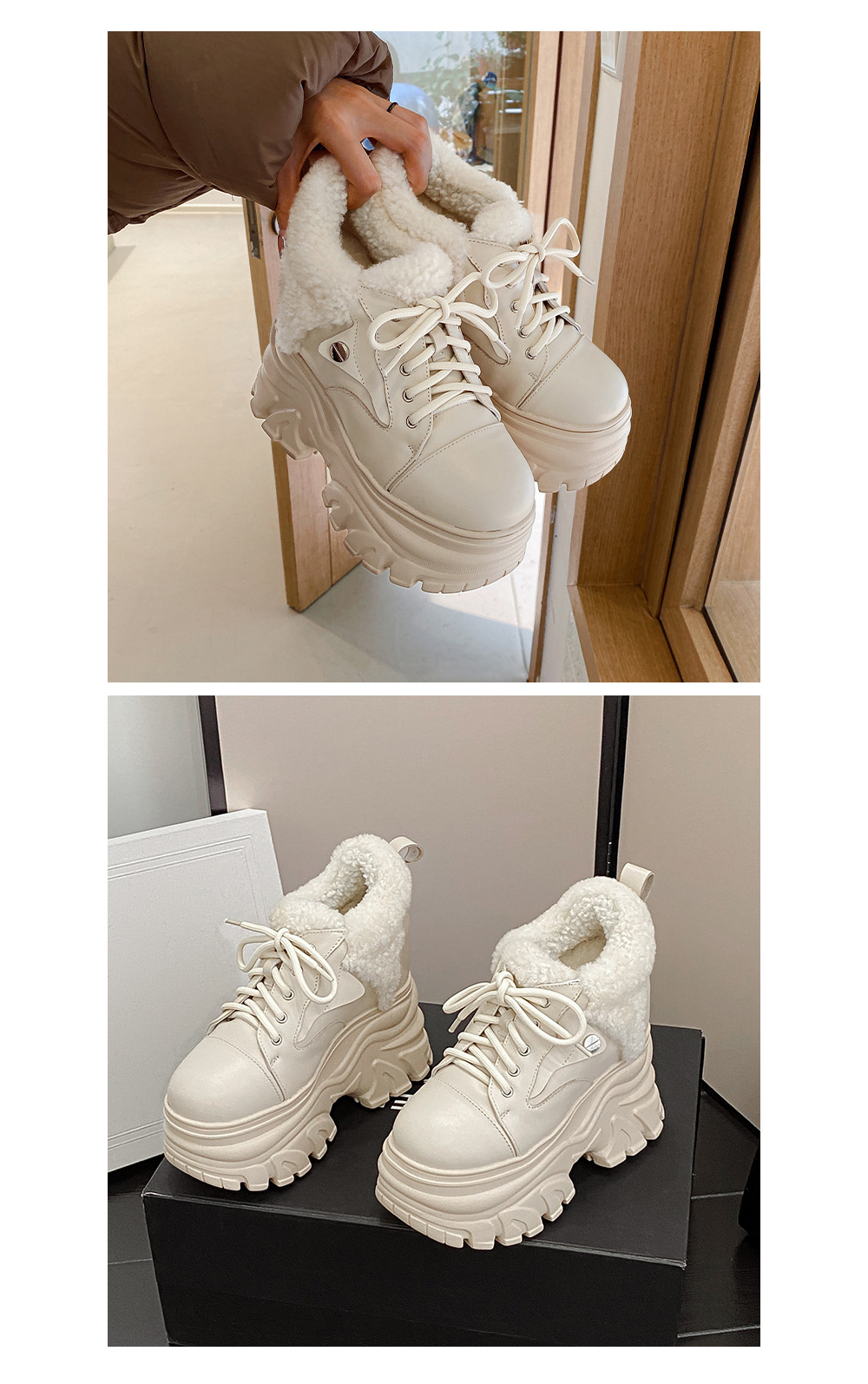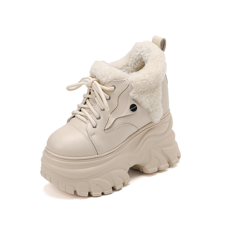 Giày sử dụng chất liệu da thật, có lớp lót bên trong bằng len ấm áp, phù hợp cho thời tiết lạnh. Đế giày được thiết kế dạng xuồng dày và cao, giúp tăng chiều cao lên đến 14cm một cách tinh tế. Kiểu dáng hơi hướng thể thao nhẹ nhàng, dễ dàng phối cùng nhiều loại trang phục như quần jeans hay váy. Bạn chỉ cần xỏ chân vào và cột dây giày hoặc kéo khóa là đã có ngay vẻ ngoài năng động và ấm cúng. | Tên sản phẩm: Giày Cao Gót Nữ Chất Liệu Vải Bông Cao 14cm Tăng Chiều Cao Dày Ấm Đế Cao Hàng Mùa Xuân Thu Đông - Giày Dép Nữ | Mã sản phẩm: C1284 - Giá: 3.870.000đ | Mã nhà sản xuất: QIDNG-G06Hình ảnh sản phẩm