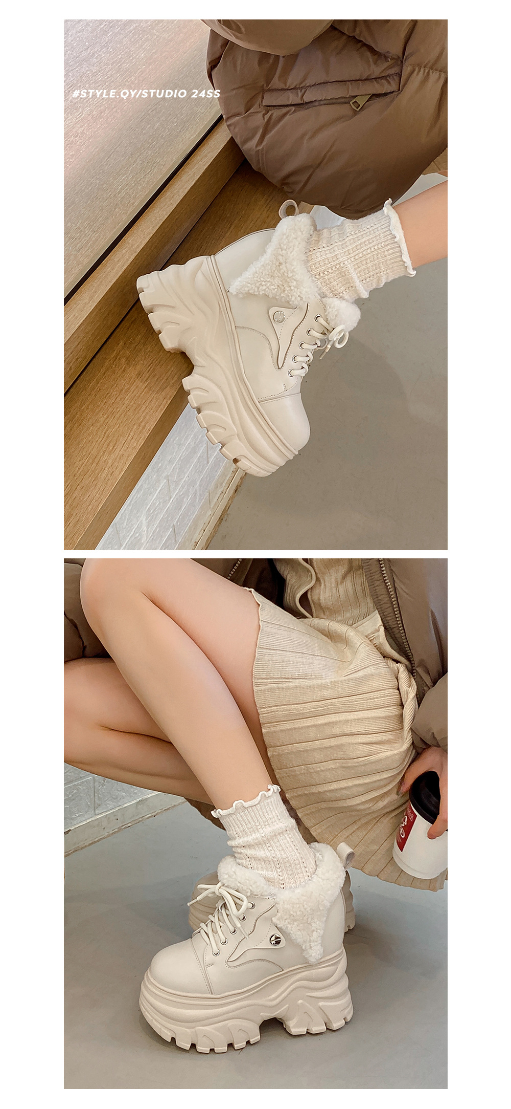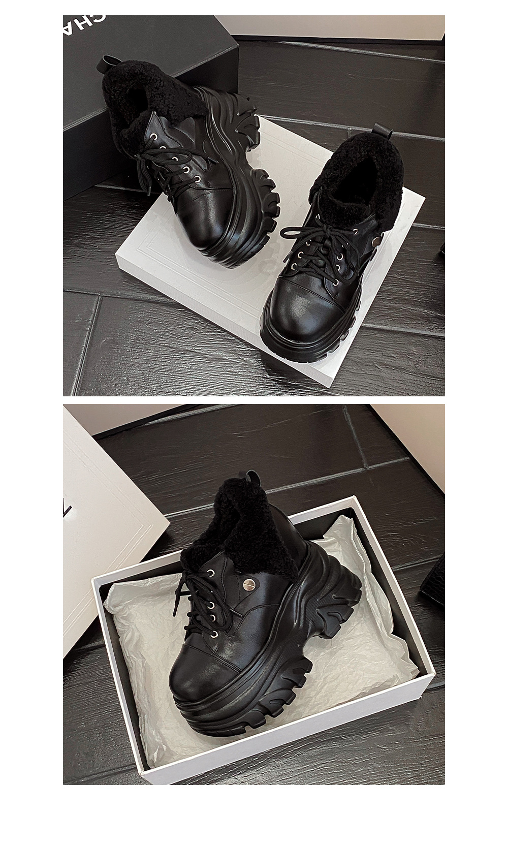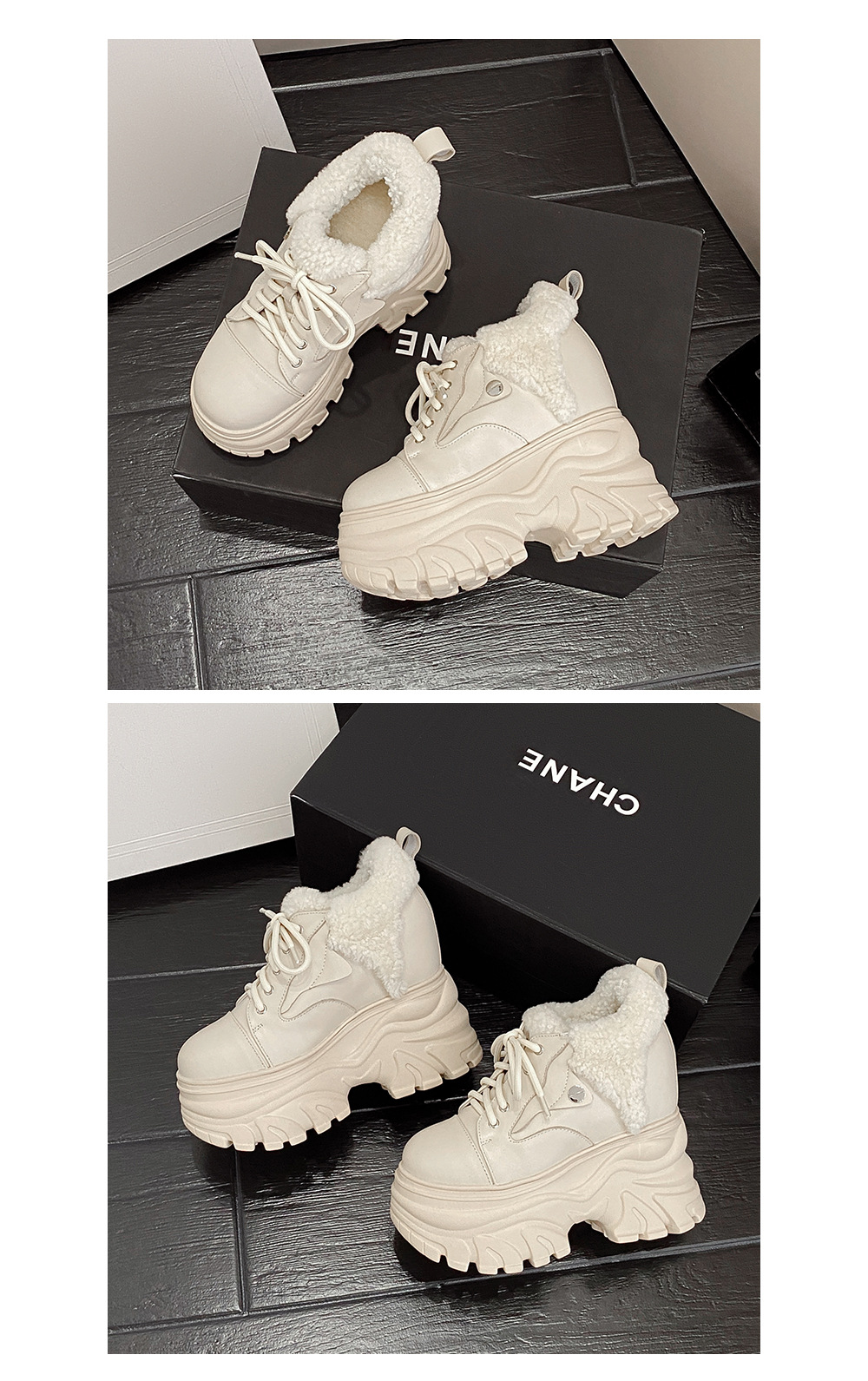 Giày sử dụng chất liệu da thật, có lớp lót bên trong bằng len ấm áp, phù hợp cho thời tiết lạnh. Đế giày được thiết kế dạng xuồng dày và cao, giúp tăng chiều cao lên đến 14cm một cách tinh tế. Kiểu dáng hơi hướng thể thao nhẹ nhàng, dễ dàng phối cùng nhiều loại trang phục như quần jeans hay váy. Bạn chỉ cần xỏ chân vào và cột dây giày hoặc kéo khóa là đã có ngay vẻ ngoài năng động và ấm cúng. | Tên sản phẩm: Giày Cao Gót Nữ Chất Liệu Vải Bông Cao 14cm Tăng Chiều Cao Dày Ấm Đế Cao Hàng Mùa Xuân Thu Đông - Giày Dép Nữ | Mã sản phẩm: C1284 - Giá: 3.870.000đ | Mã nhà sản xuất: QIDNG-G06Hình ảnh sản phẩm