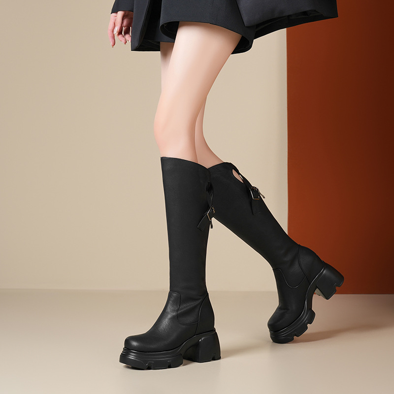 Bốt cao cổ kiểu dáng hiện đại, được làm từ chất liệu da mềm mại, mang đến cảm giác thoải mái khi mang. Đế ngoài dày kết hợp gót thấp vững chãi, hỗ trợ tăng chiều cao một cách tinh tế. Mẫu bốt này phù hợp để kết hợp cùng nhiều loại trang phục như quần jeans, váy hay quần legging trong tiết trời mát mẻ. Chỉ cần xỏ chân vào và kéo khóa phía sau là bạn đã có một phong cách năng động và cá tính. | Tên sản phẩm: Boot Cổ Cao Nữ Chất Liệu Da Bò Cao 10cm Gót Vuông Tăng Chiều Cao Đế Cao Hàng Mùa Xuân Thu Đông - Giày Dép Nữ | Mã sản phẩm: C1285 - Giá: 3.030.000đ | Mã nhà sản xuất: QIDNG-G06Hình ảnh sản phẩm