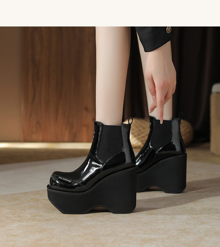 Đôi bốt cổ thấp này có phần đế được thiết kế tạo dáng, giúp tăng chiều cao một cách nhẹ nhàng. Kiểu dáng đầu vuông thời thượng, phù hợp cho mùa thu đông. Bề mặt bốt bóng loáng, tạo điểm nhấn nổi bật cho trang phục. Sản phẩm có phần đế hỗ trợ chống trơn trượt, giúp bạn di chuyển thoải mái và an toàn hơn. Dễ dàng phối cùng nhiều loại quần áo khác nhau để tạo nên những phong cách đa dạng. | Tên sản phẩm: Boot Cổ Thấp Nữ Cao 12cm Chống Nước Đế Xuồng Hàng Mùa Xuân Thu Đông - Giày Dép Nữ | Mã sản phẩm: C1297 - Giá: 3.030.000đ | Mã nhà sản xuất: QIDNG-G06Hình ảnh sản phẩm
