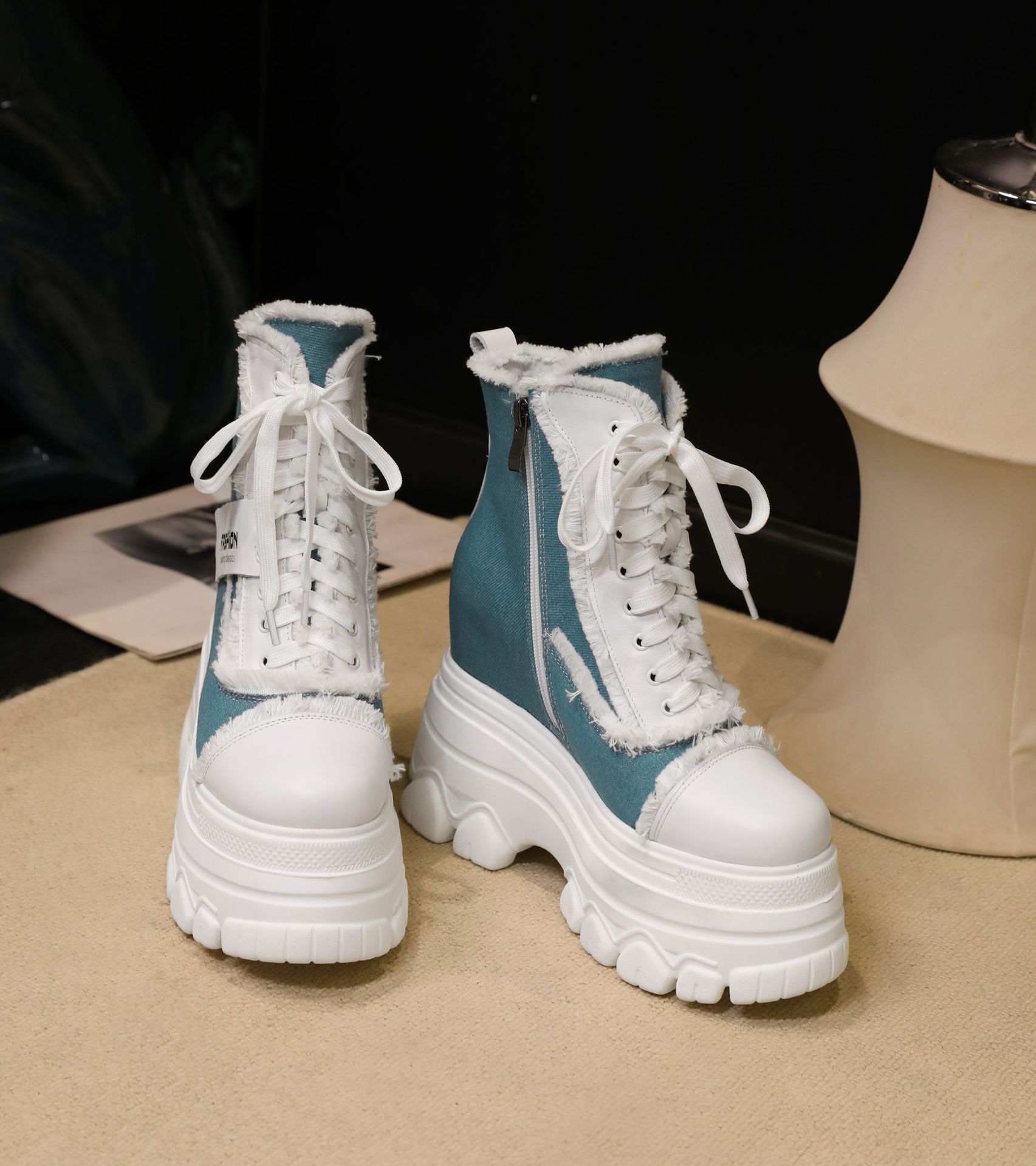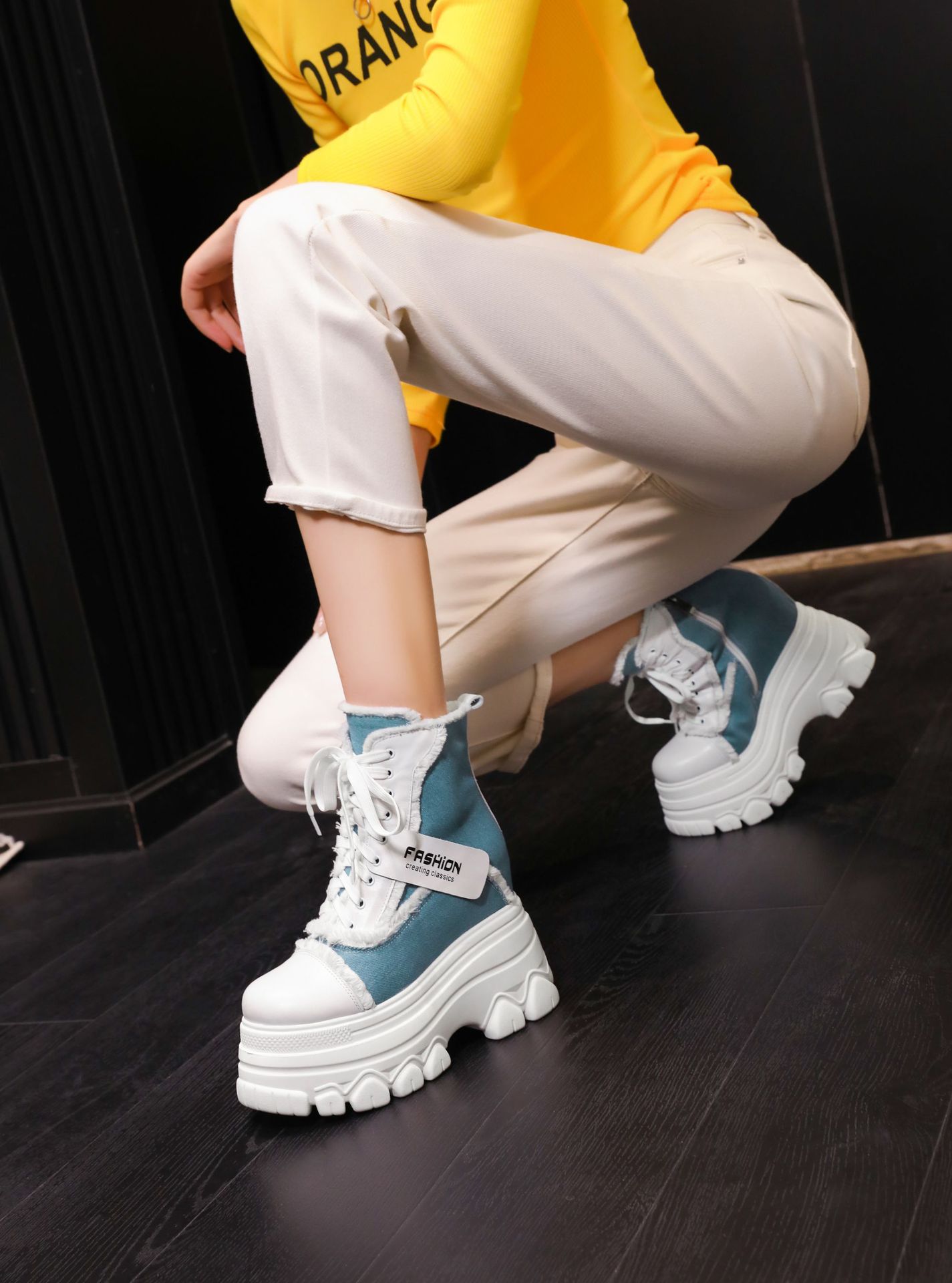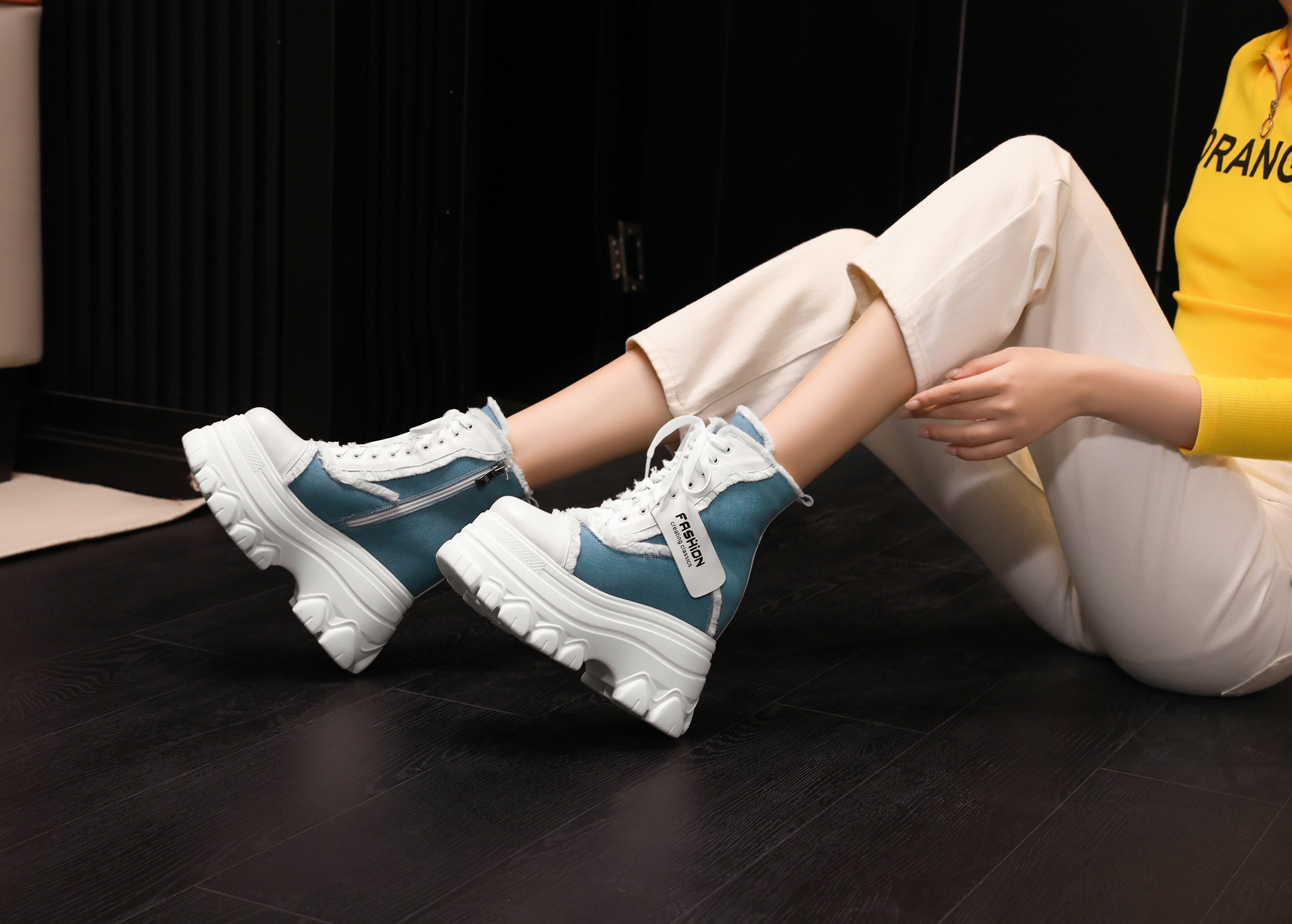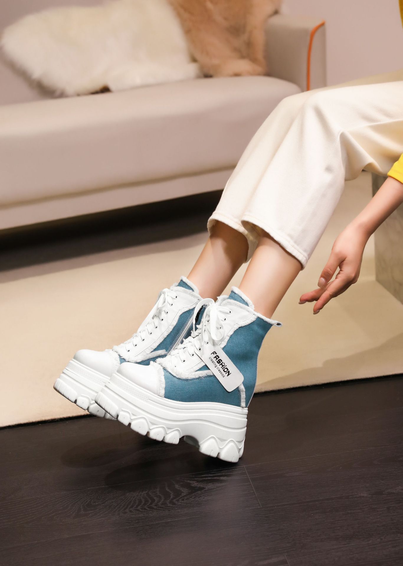 Đôi bốt ngắn này có phần đế hơi dày, giúp tăng thêm chiều cao một cách nhẹ nhàng. Kiểu dáng thiết kế nhiều màu kết hợp, cùng dây buộc phía trước mang đến vẻ ngoài trẻ trung, năng động. Sản phẩm phù hợp để diện trong mùa thu đông, kết hợp cùng nhiều loại trang phục khác nhau. Bạn chỉ cần xỏ chân vào, kéo chỉnh dây cho vừa vặn và thắt nút cẩn thận là có thể sử dụng ngay. | Tên sản phẩm: Boot Cổ Thấp Nữ Cao 12cm Tăng Chiều Cao Đế Cao Hàng Mùa Xuân Thu Đông - Giày Dép Nữ | Mã sản phẩm: C1299 - Giá: 3.400.000đ | Mã nhà sản xuất: QIDNG-G06Hình ảnh sản phẩm