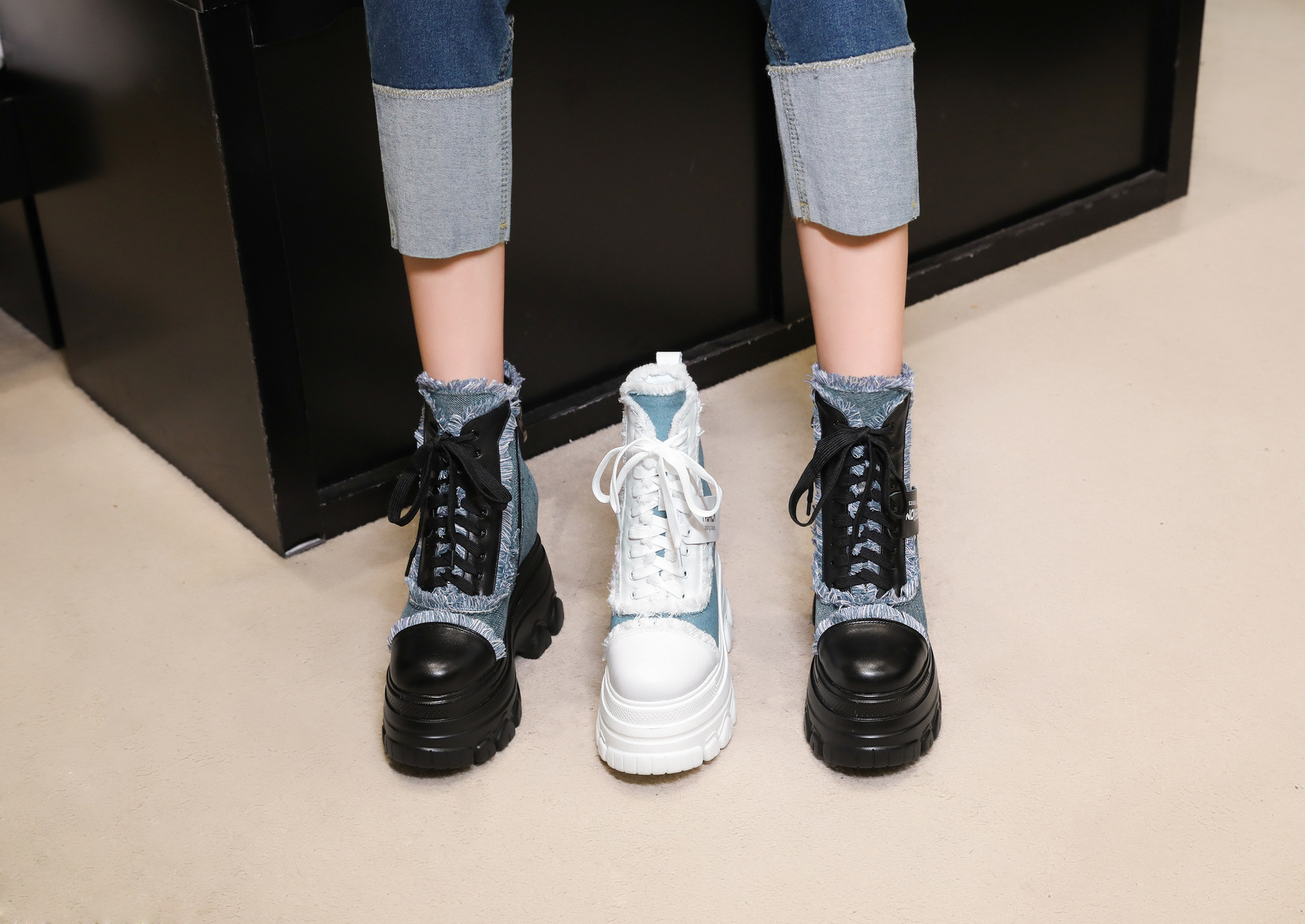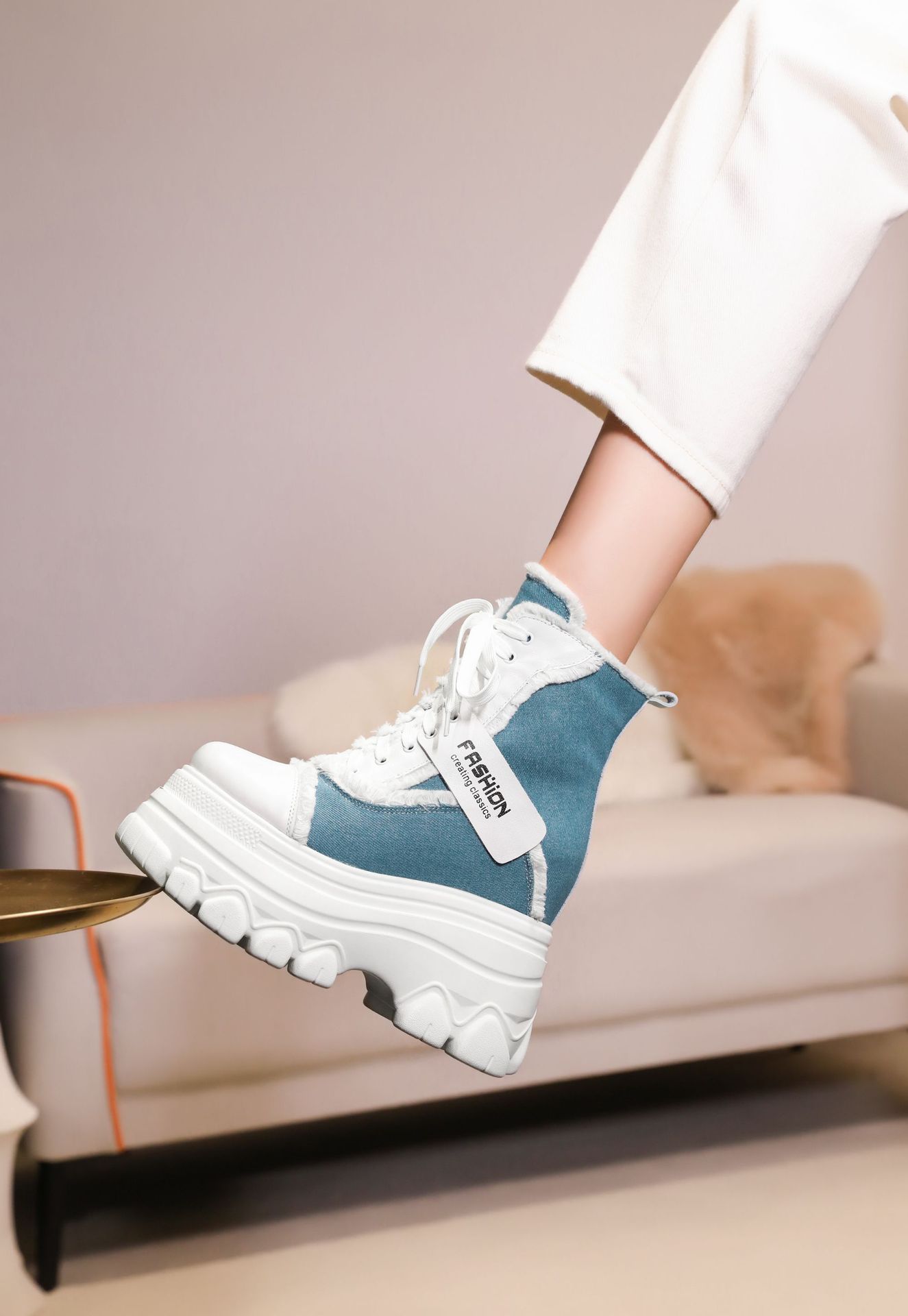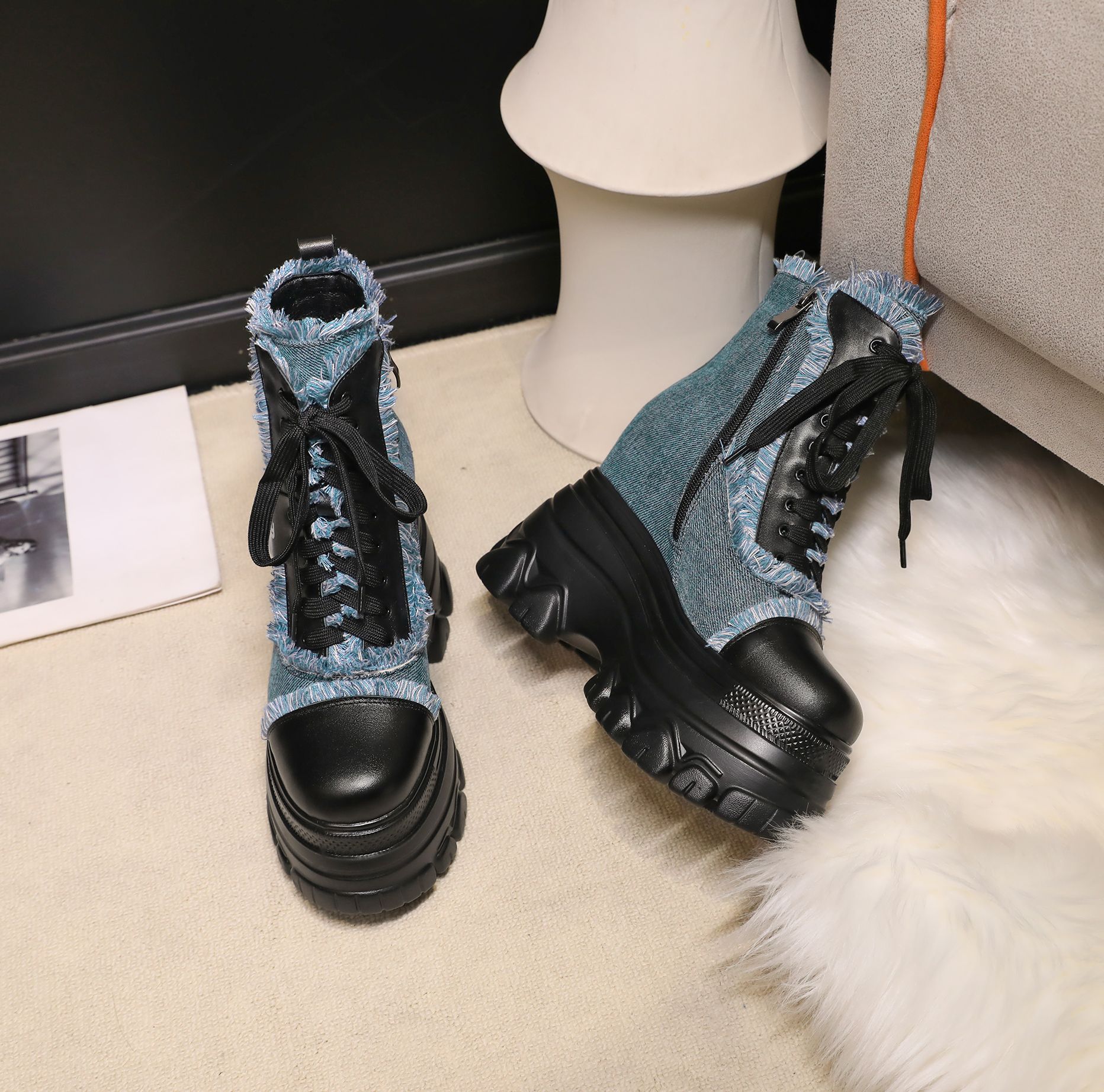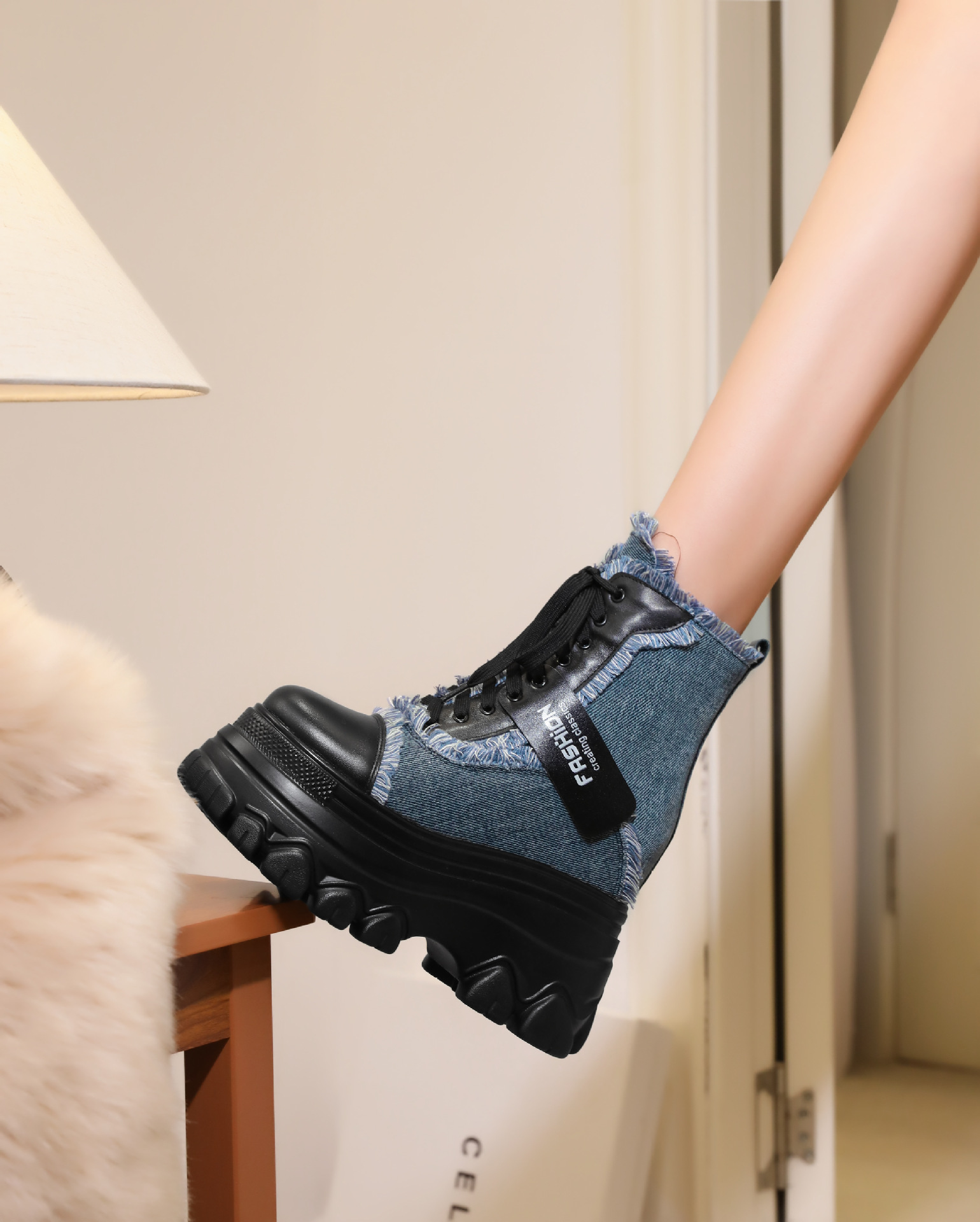 Đôi bốt ngắn này có phần đế hơi dày, giúp tăng thêm chiều cao một cách nhẹ nhàng. Kiểu dáng thiết kế nhiều màu kết hợp, cùng dây buộc phía trước mang đến vẻ ngoài trẻ trung, năng động. Sản phẩm phù hợp để diện trong mùa thu đông, kết hợp cùng nhiều loại trang phục khác nhau. Bạn chỉ cần xỏ chân vào, kéo chỉnh dây cho vừa vặn và thắt nút cẩn thận là có thể sử dụng ngay. | Tên sản phẩm: Boot Cổ Thấp Nữ Cao 12cm Tăng Chiều Cao Đế Cao Hàng Mùa Xuân Thu Đông - Giày Dép Nữ | Mã sản phẩm: C1299 - Giá: 3.400.000đ | Mã nhà sản xuất: QIDNG-G06Hình ảnh sản phẩm
