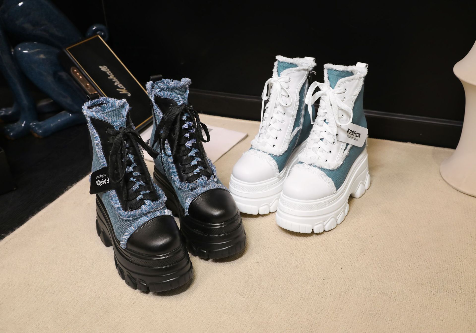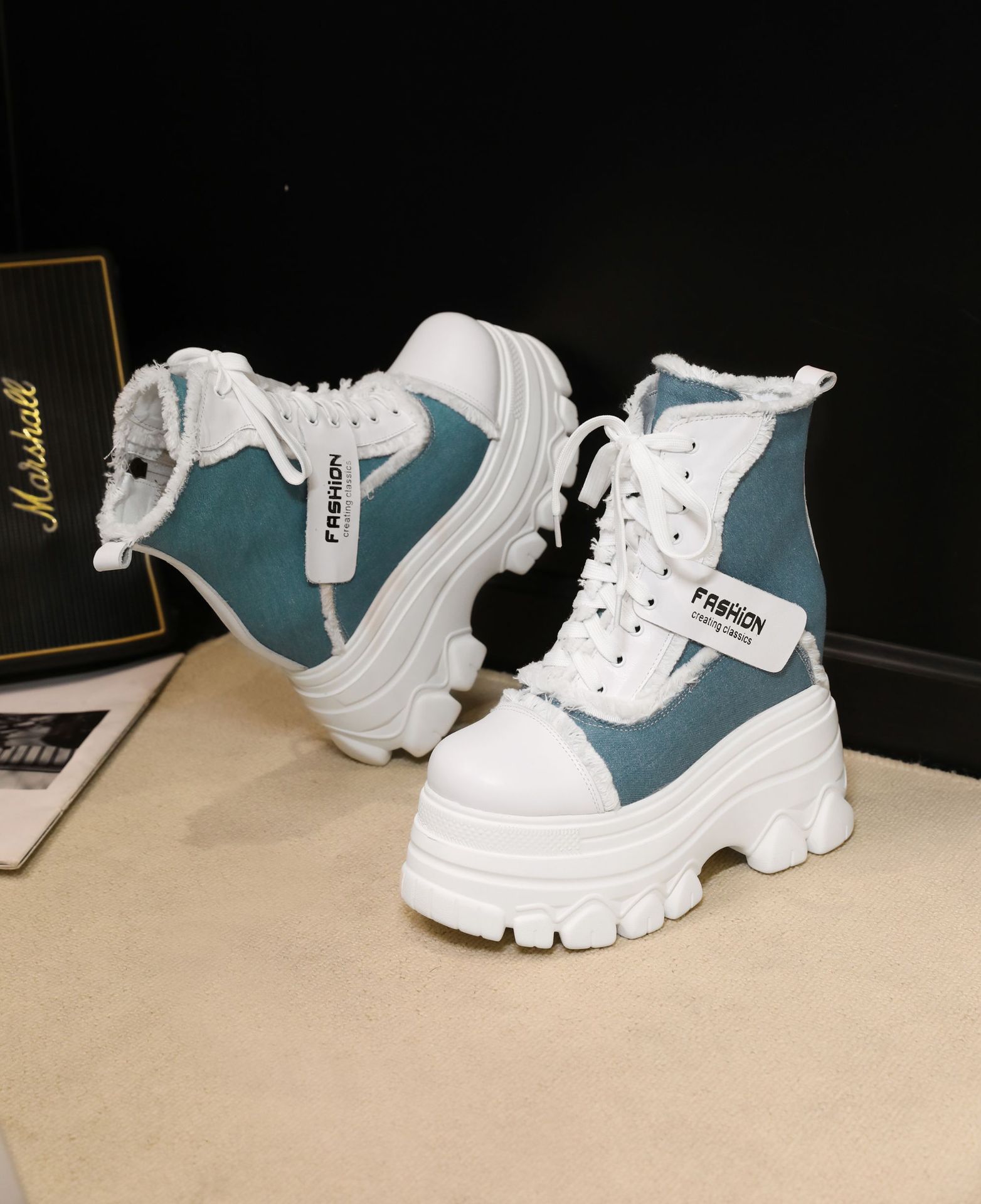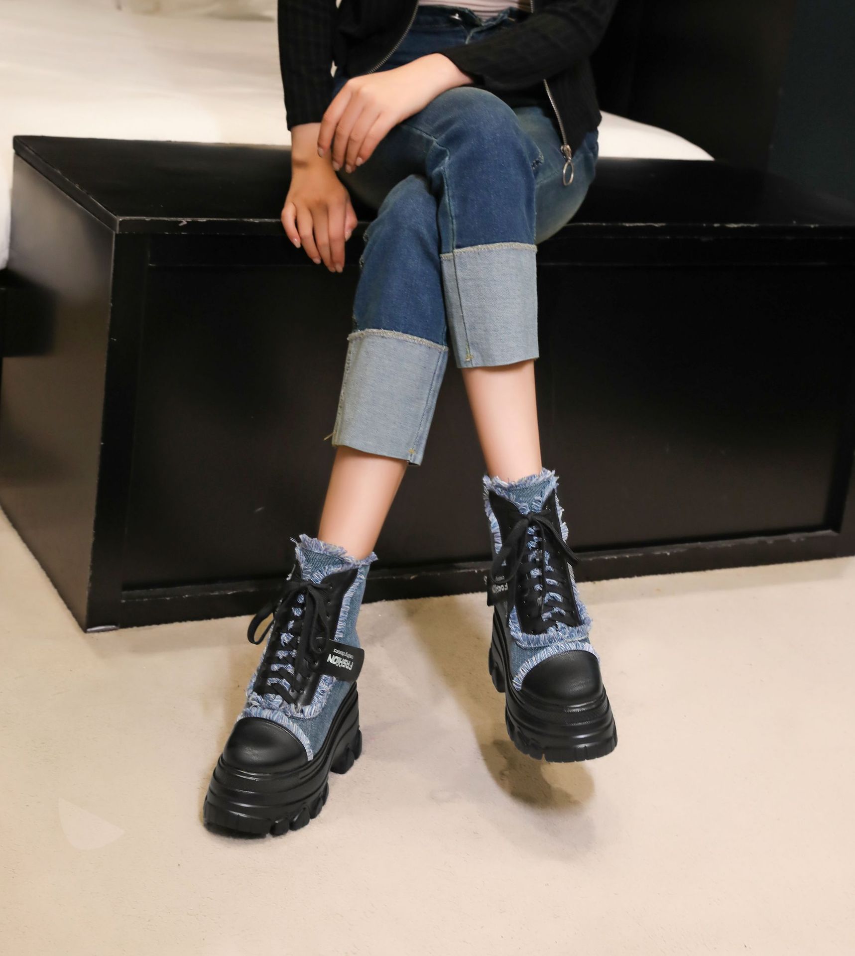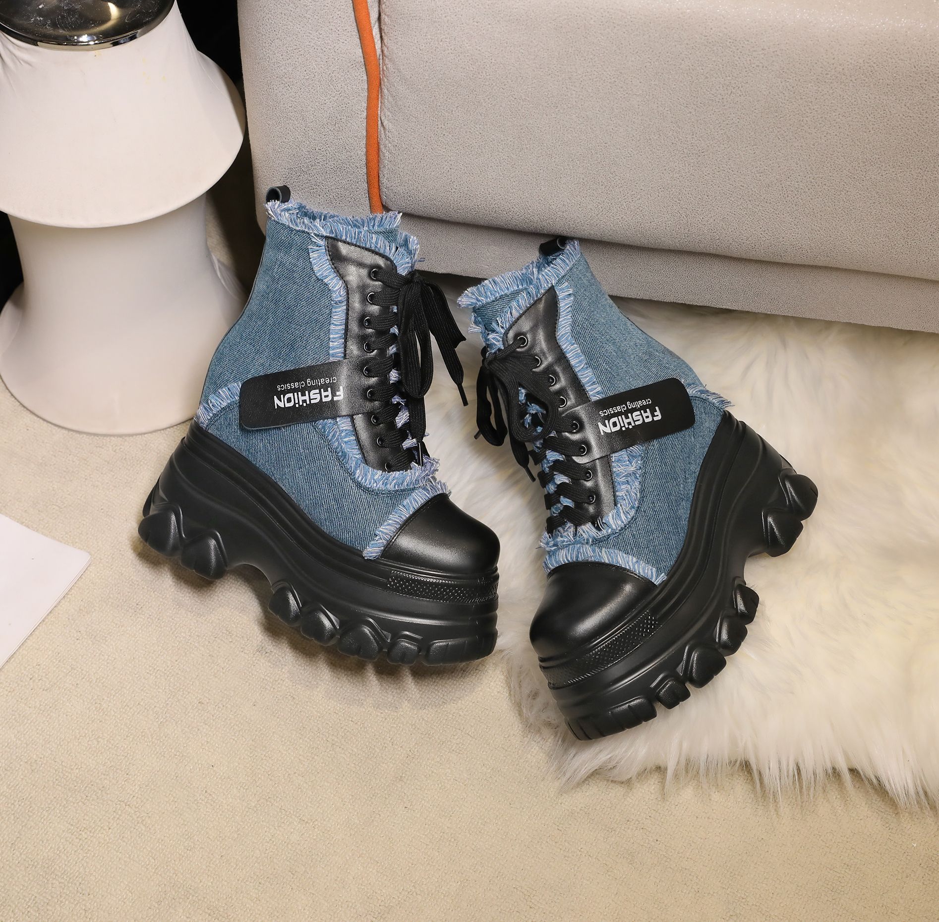 Đôi bốt ngắn này có phần đế hơi dày, giúp tăng thêm chiều cao một cách nhẹ nhàng. Kiểu dáng thiết kế nhiều màu kết hợp, cùng dây buộc phía trước mang đến vẻ ngoài trẻ trung, năng động. Sản phẩm phù hợp để diện trong mùa thu đông, kết hợp cùng nhiều loại trang phục khác nhau. Bạn chỉ cần xỏ chân vào, kéo chỉnh dây cho vừa vặn và thắt nút cẩn thận là có thể sử dụng ngay. | Tên sản phẩm: Boot Cổ Thấp Nữ Cao 12cm Tăng Chiều Cao Đế Cao Hàng Mùa Xuân Thu Đông - Giày Dép Nữ | Mã sản phẩm: C1299 - Giá: 3.400.000đ | Mã nhà sản xuất: QIDNG-G06Hình ảnh sản phẩm