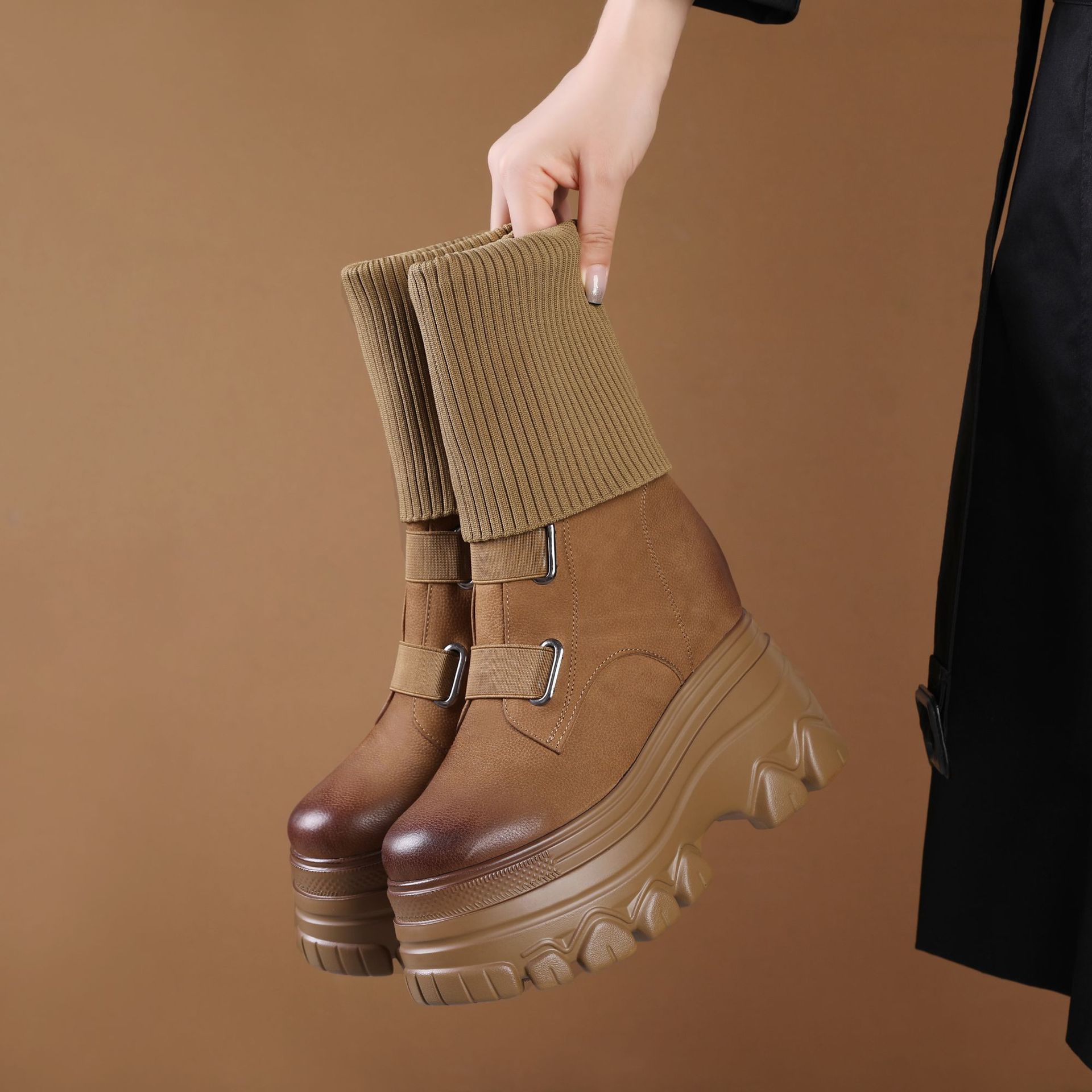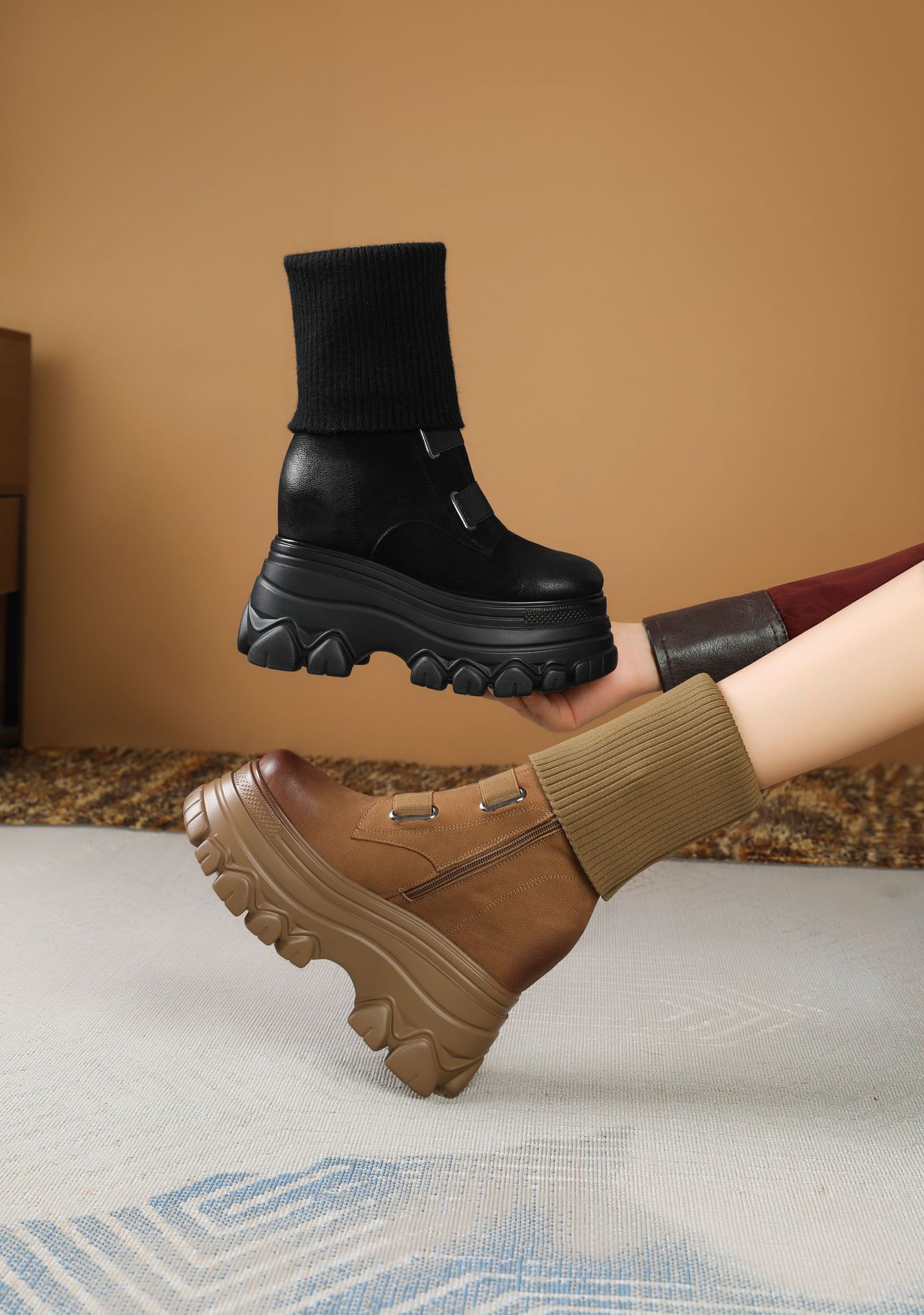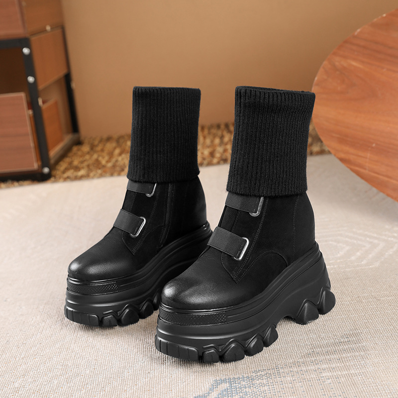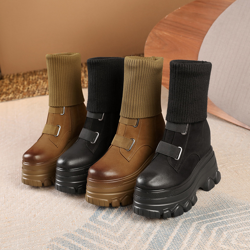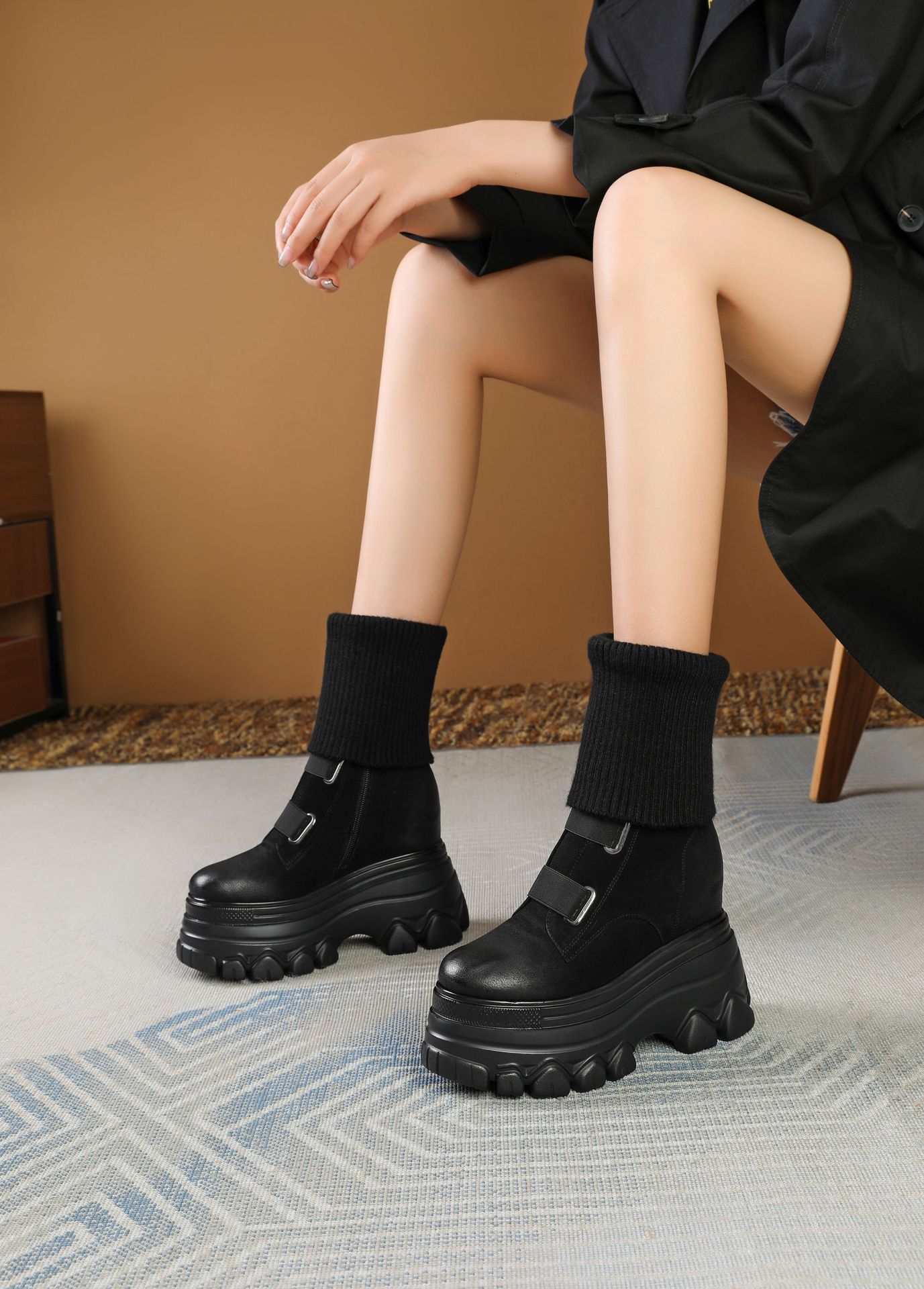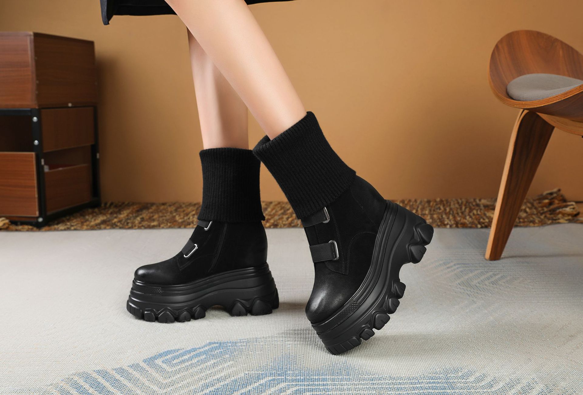 Đôi bốt này có phần đế dày bên trong giúp tăng chiều cao một cách tự nhiên, phù hợp cho những người có vóc dáng nhỏ. Kiểu dáng thiết kế theo phong cách châu Âu cổ điển, kết hợp với chất liệu co giãn ôm sát chân, tạo cảm giác dễ chịu khi mang. Bạn có thể dễ dàng phối với quần jeans, váy hay quần tất để tạo nên những phong cách khác nhau cho mùa thu đông. | Tên sản phẩm: Boot Cổ Thấp Nữ Cao 12cm Tăng Chiều Cao Đế Cao Hàng Mùa Xuân Thu Đông - Giày Dép Nữ | Mã sản phẩm: C1304 - Giá: 4.610.000đ | Mã nhà sản xuất: QIDNG-G06Hình ảnh sản phẩm