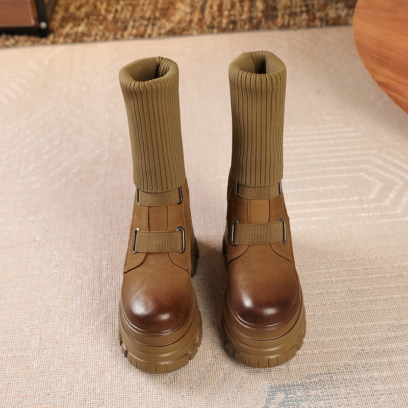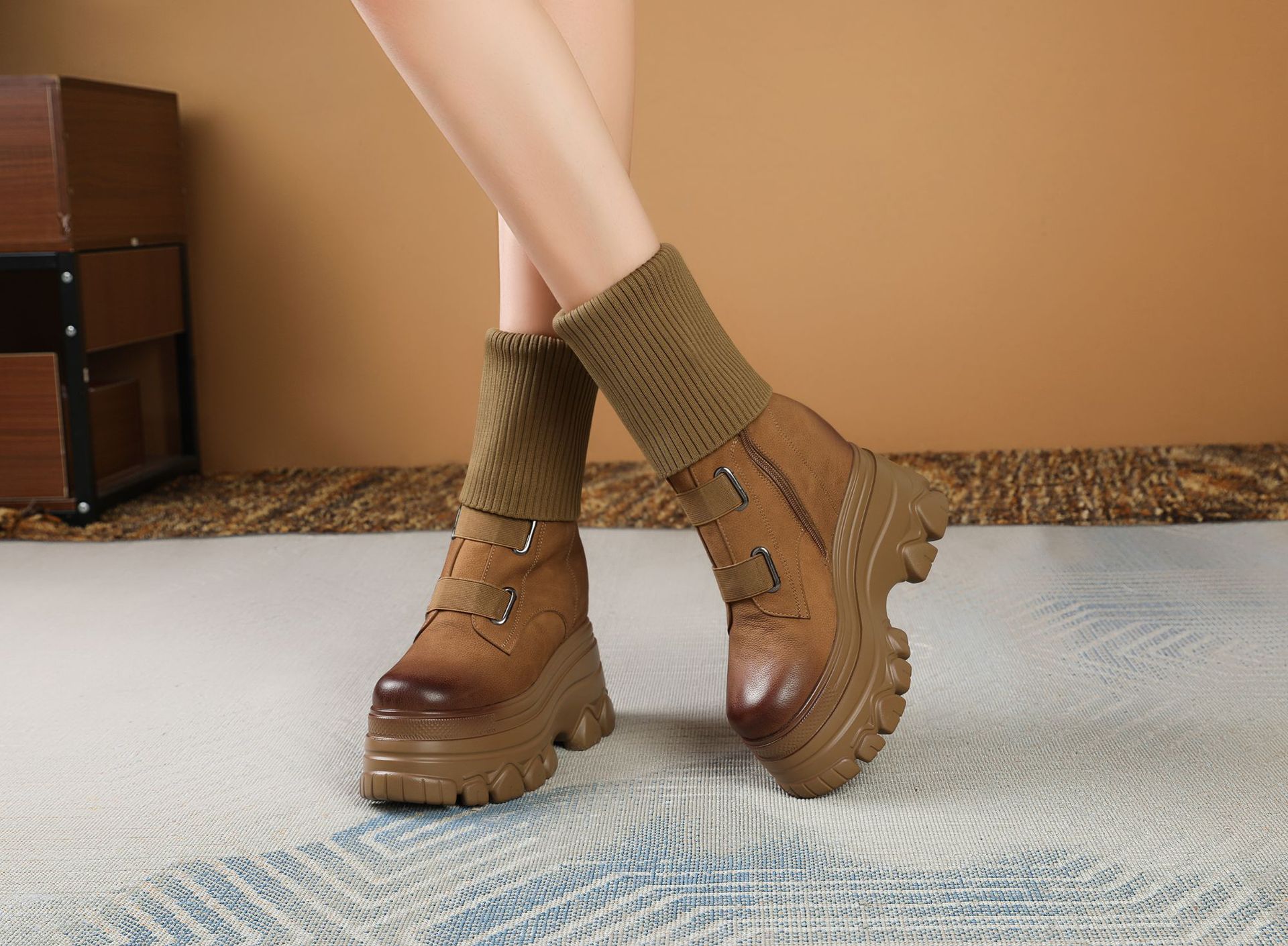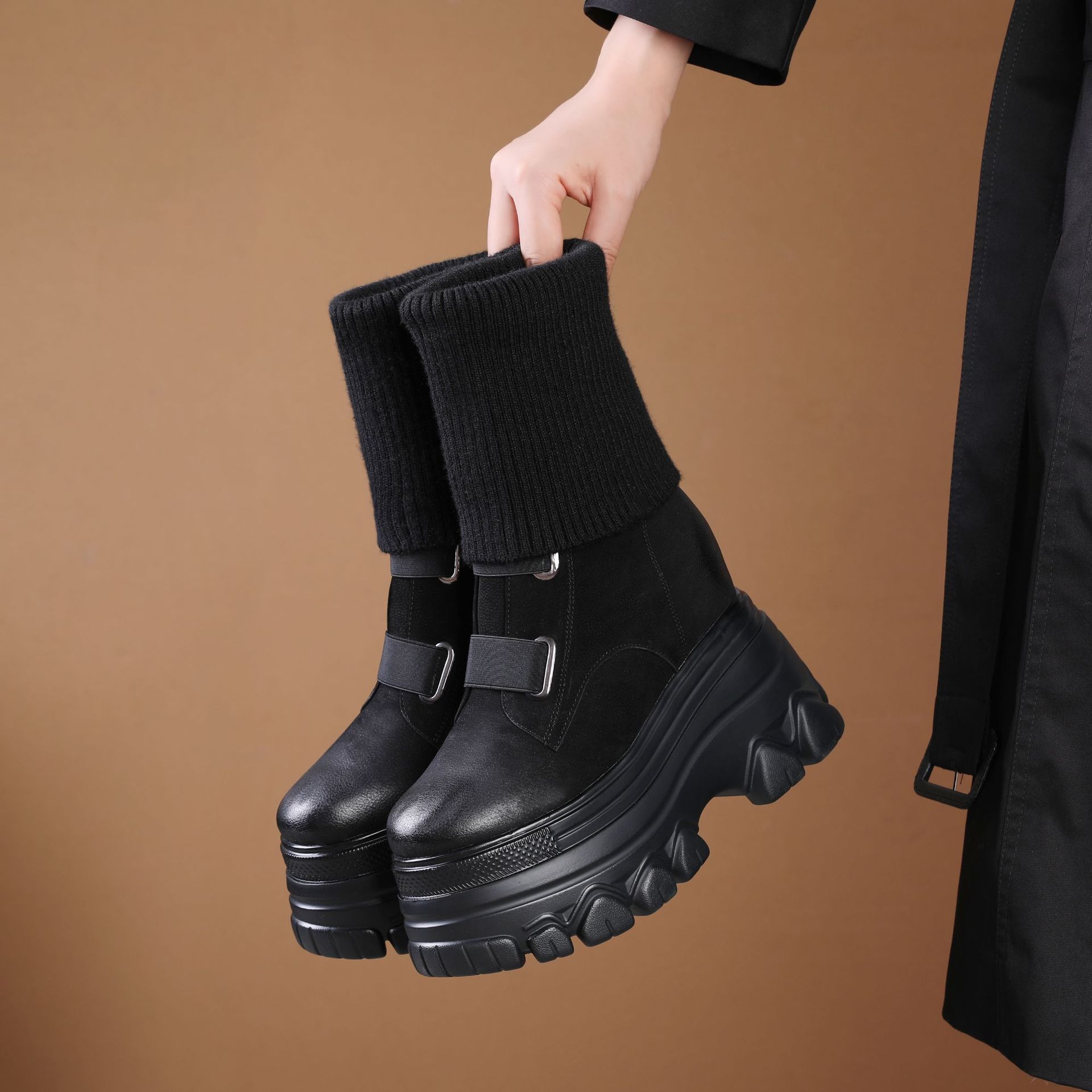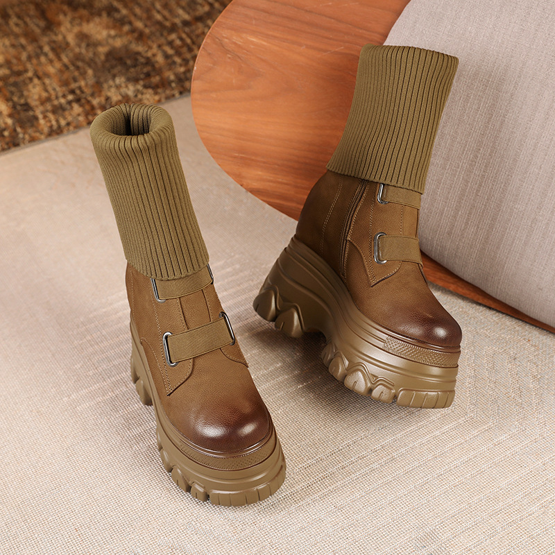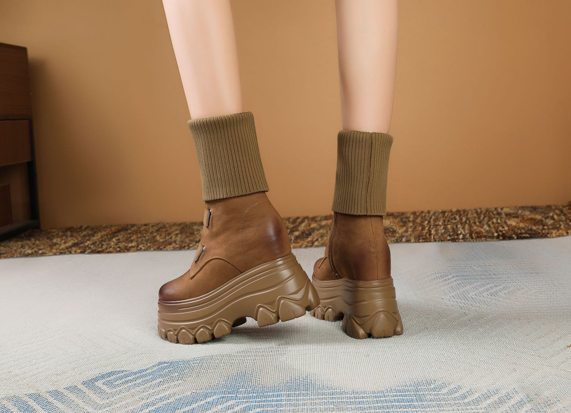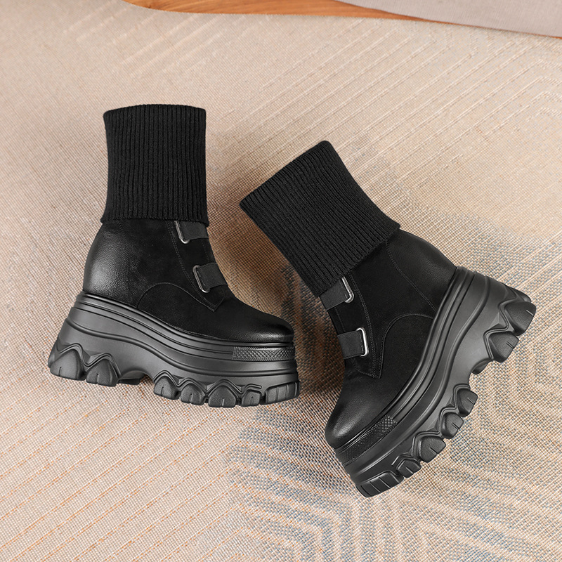 Đôi bốt này có phần đế dày bên trong giúp tăng chiều cao một cách tự nhiên, phù hợp cho những người có vóc dáng nhỏ. Kiểu dáng thiết kế theo phong cách châu Âu cổ điển, kết hợp với chất liệu co giãn ôm sát chân, tạo cảm giác dễ chịu khi mang. Bạn có thể dễ dàng phối với quần jeans, váy hay quần tất để tạo nên những phong cách khác nhau cho mùa thu đông. | Tên sản phẩm: Boot Cổ Thấp Nữ Cao 12cm Tăng Chiều Cao Đế Cao Hàng Mùa Xuân Thu Đông - Giày Dép Nữ | Mã sản phẩm: C1304 - Giá: 4.610.000đ | Mã nhà sản xuất: QIDNG-G06Hình ảnh sản phẩm