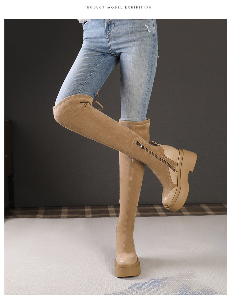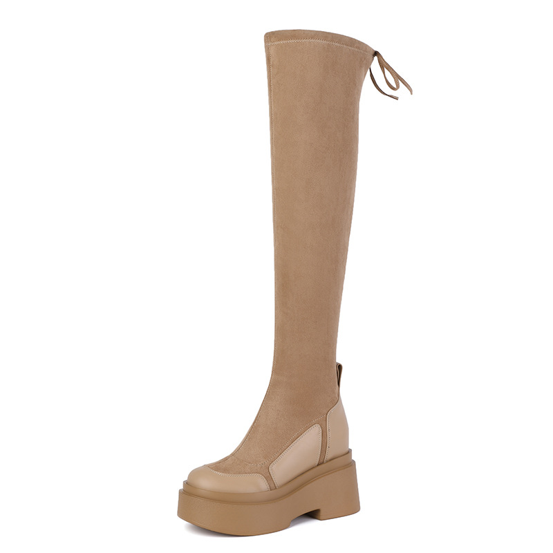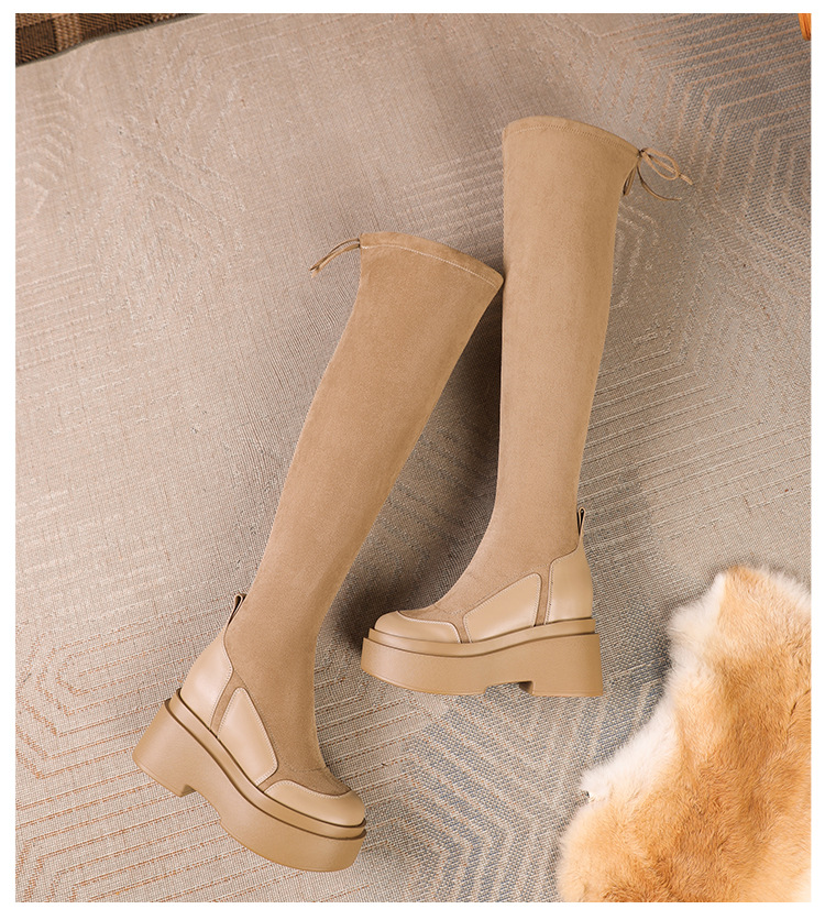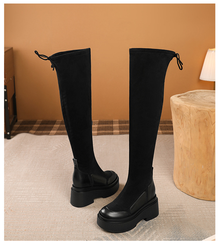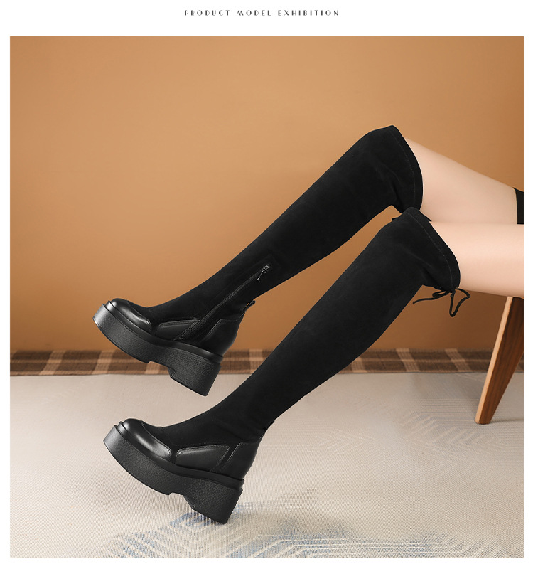 Đôi bốt cổ cao này là lựa chọn tuyệt vời cho mùa thu đông. Sản phẩm có phần đế được thiết kế tăng thêm chiều cao một cách tinh tế, kết hợp cùng gót chắc chắn. Kiểu dáng ôm vừa chân, chất liệu co giãn nhẹ giúp bạn dễ dàng mang vào và di chuyển thoải mái. Bốt có thiết kế dài qua gối, phối hợp được với nhiều trang phục như quần legging, váy hay quần jeans ngắn. Bạn có thể sử dụng hàng ngày để giữ ấm và tạo điểm nhấn cho phong cách của mình. | Tên sản phẩm: Giày Boot Cổ Cao Nữ Cao 10cm Cổ Cao Qua Gối Tăng Chiều Cao Đế Cao Hàng Mùa Xuân Thu Đông - Giày Dép Nữ | Mã sản phẩm: C1306 - Giá: 2.760.000đ | Mã nhà sản xuất: QIDNG-G06Hình ảnh sản phẩm