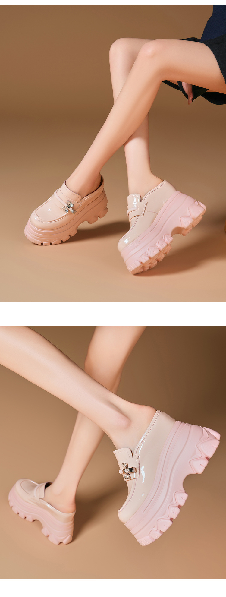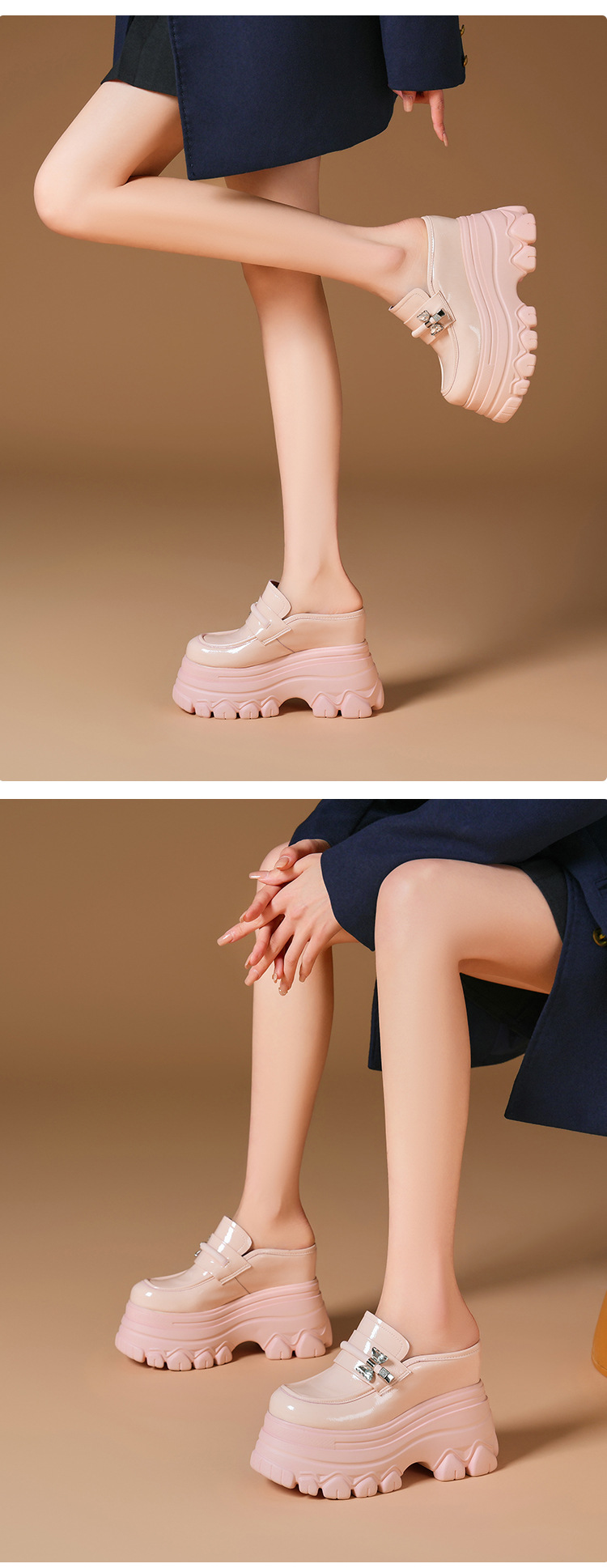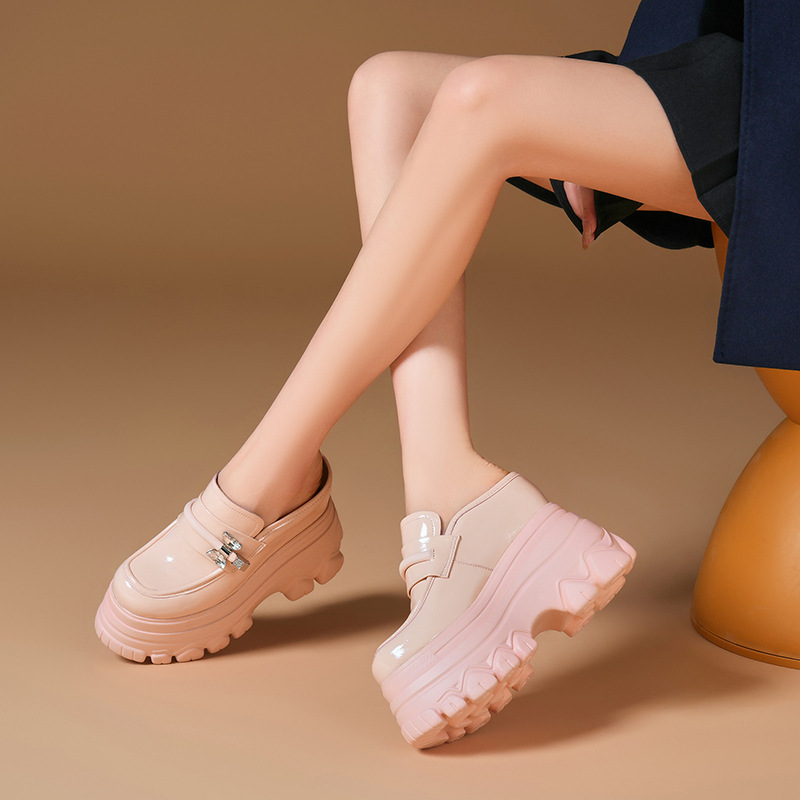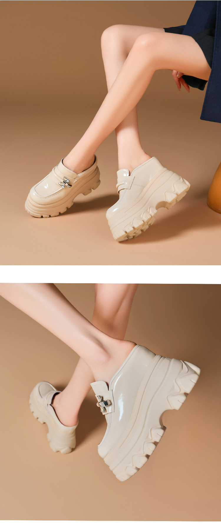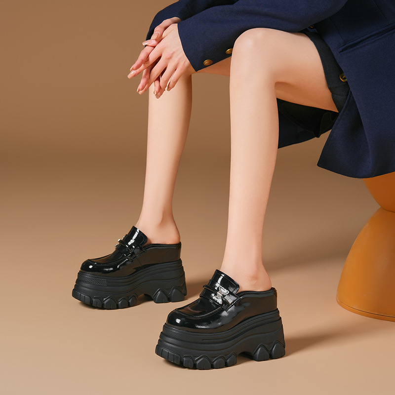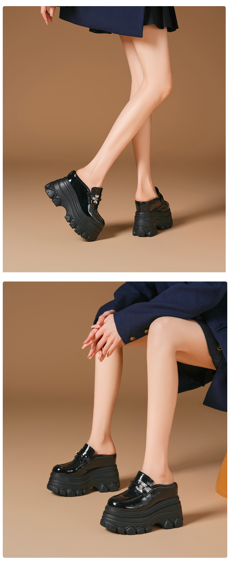 Đôi dép nửa có phần đế dày bên trong giúp tăng chiều cao lên đến mười hai phân. Kiểu dáng che kín mũi chân, phần gót là đế xuồng chắc chắn. Dép được làm từ chất liệu da bóng, tạo vẻ ngoài sáng sủa. Bạn chỉ cần xỏ chân vào và đi, rất tiện lợi cho những bước di chuyển nhanh. Thiết kế này phù hợp để phối cùng nhiều kiểu trang phục thường ngày. | Tên sản phẩm: Giày Dép Lê Nữ Cao 12cm Tăng Chiều Cao Đế Xuồng Đế Cao - Giày Dép Nữ | Mã sản phẩm: C1313 - Giá: 2.580.000đ | Mã nhà sản xuất: QIDNG-G06Hình ảnh sản phẩm