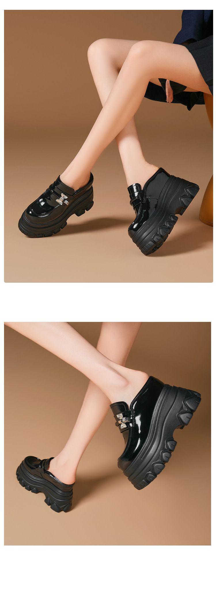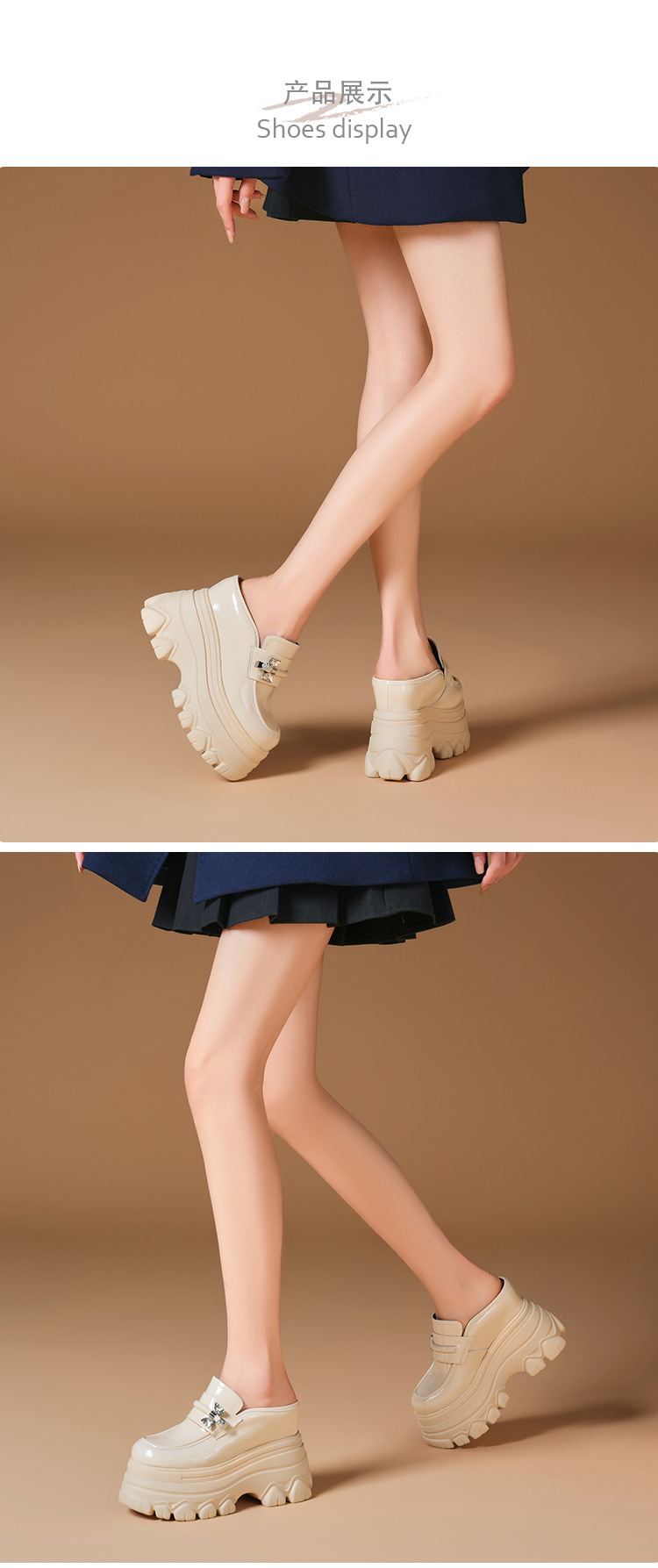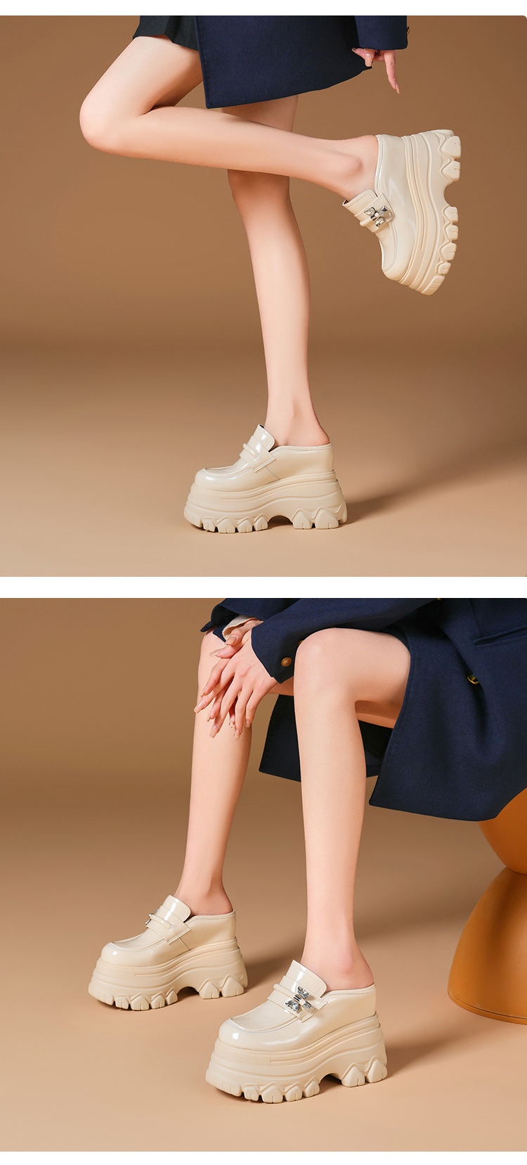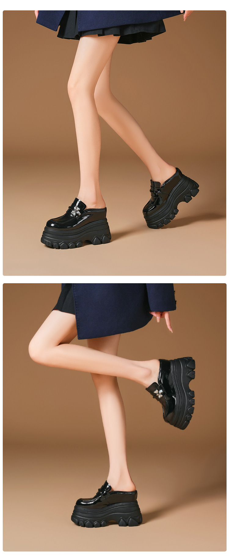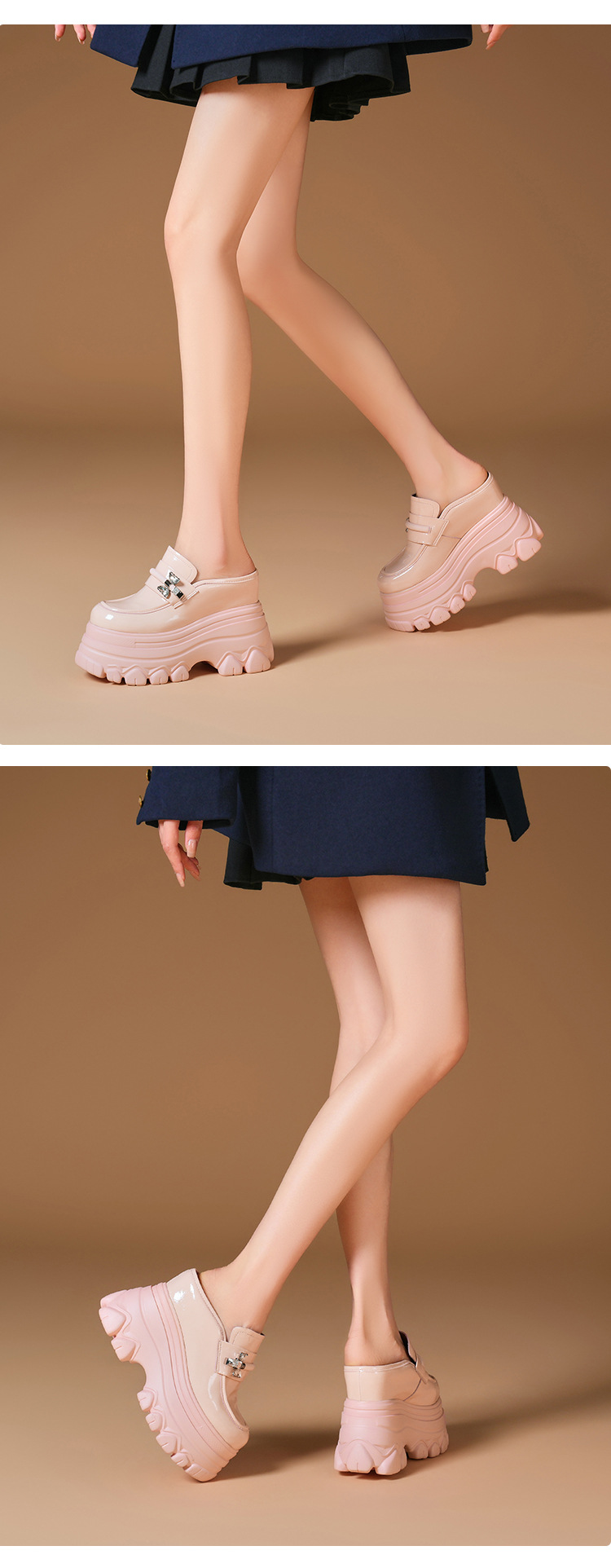 Đôi dép nửa có phần đế dày bên trong giúp tăng chiều cao lên đến mười hai phân. Kiểu dáng che kín mũi chân, phần gót là đế xuồng chắc chắn. Dép được làm từ chất liệu da bóng, tạo vẻ ngoài sáng sủa. Bạn chỉ cần xỏ chân vào và đi, rất tiện lợi cho những bước di chuyển nhanh. Thiết kế này phù hợp để phối cùng nhiều kiểu trang phục thường ngày. | Tên sản phẩm: Giày Dép Lê Nữ Cao 12cm Tăng Chiều Cao Đế Xuồng Đế Cao - Giày Dép Nữ | Mã sản phẩm: C1313 - Giá: 2.580.000đ | Mã nhà sản xuất: QIDNG-G06Hình ảnh sản phẩm