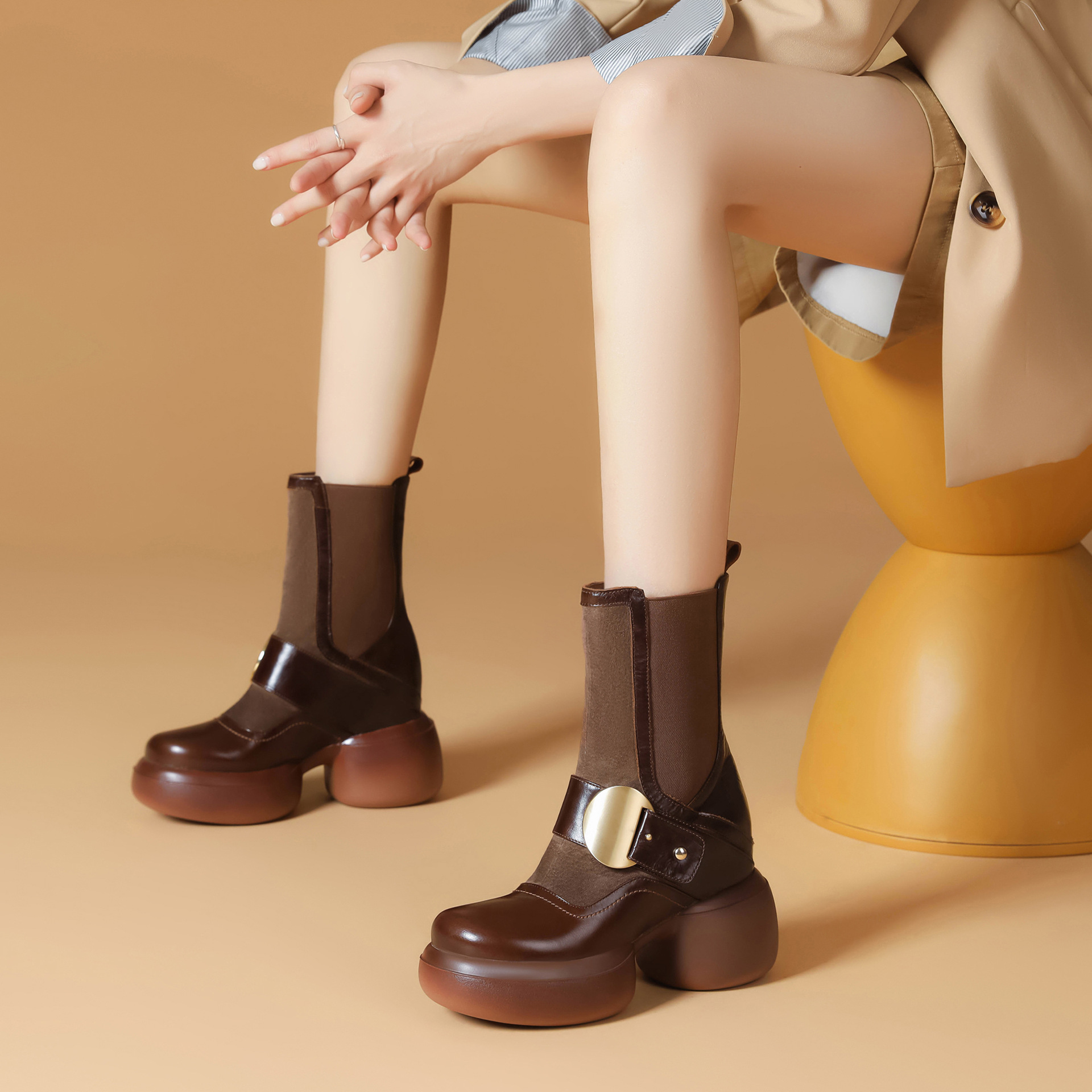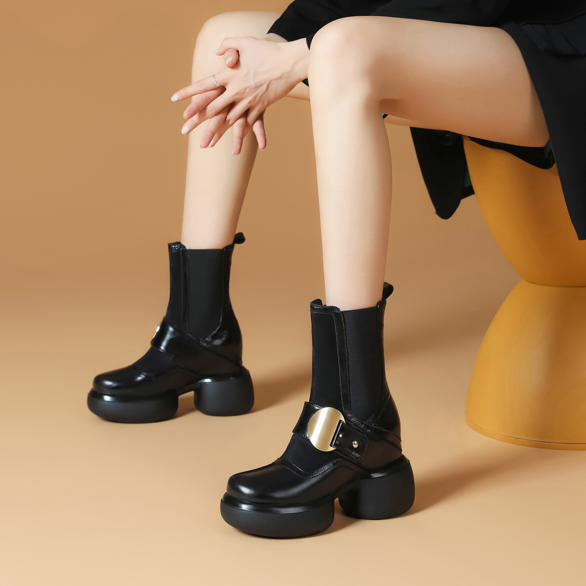 Đôi bốt có phần đế dày giúp tăng chiều cao hiệu quả, phù hợp cho những người có vóc dáng nhỏ. Chất liệu co giãn ôm sát chân như mang tất, tạo cảm giác thoải mái và dễ chịu khi di chuyển. Kiểu dáng trẻ trung, năng động, là lựa chọn tốt cho mùa thu. Bạn chỉ cần xỏ chân vào và kéo nhẹ phần cổ bốt lên là đã sẵn sàng để phối hợp với nhiều trang phục khác nhau. | Tên sản phẩm: Cao Gót Nữ Cao 10cm Tăng Chiều Cao Đế Cao Hàng Mùa Xuân Thu Đông - Giày Dép Nữ | Mã sản phẩm: C1314 - Giá: 3.770.000đ | Mã nhà sản xuất: QIDNG-G06Hình ảnh sản phẩm