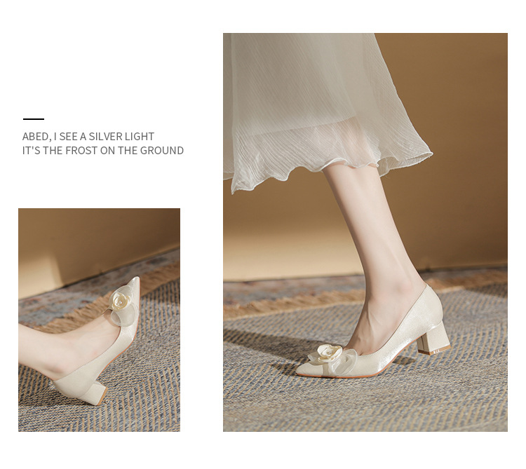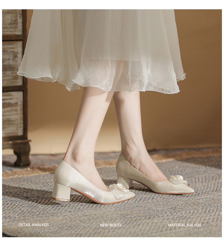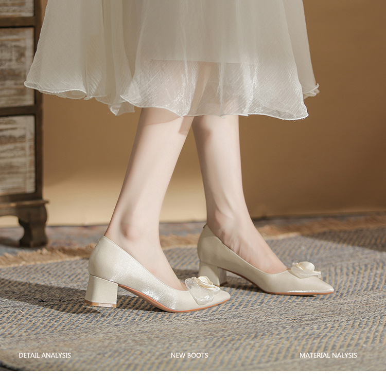Đôi giày này mang phong cách thời trang châu Âu, dành riêng cho các dịp cưới hỏi hay làm phụ dâu. Thiết kế có phần mũi nhọn thanh lịch, đi kèm là chiều cao gót vừa phải giúp tôn dáng mà vẫn dễ chịu khi mang. Điểm nhấn nổi bật là họa tiết bông hoa được trang trí tinh tế phía trước, tạo nét nữ tính và duyên dáng. Bạn có thể phối cùng váy dài hoặc các bộ trang phục dự tiệc để trông thật xinh đẹp và tự tin. | Tên sản phẩm: Giày Cao Gót Nữ Mũi Nhọn Gót Vuông Họa Tiết Hoa Dùng Trong Lễ Cưới - Giày Dép Nữ | Mã sản phẩm: D0261 - Giá: 910.000đ | Mã nhà sản xuất: HUDS-G03Hình ảnh sản phẩm