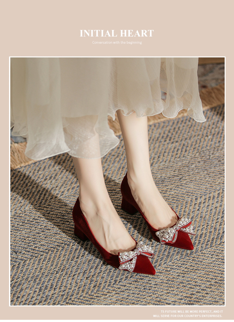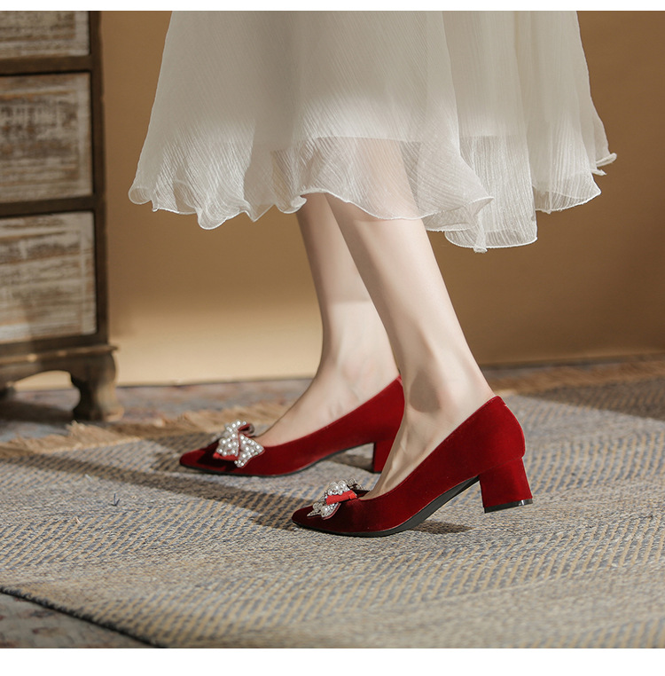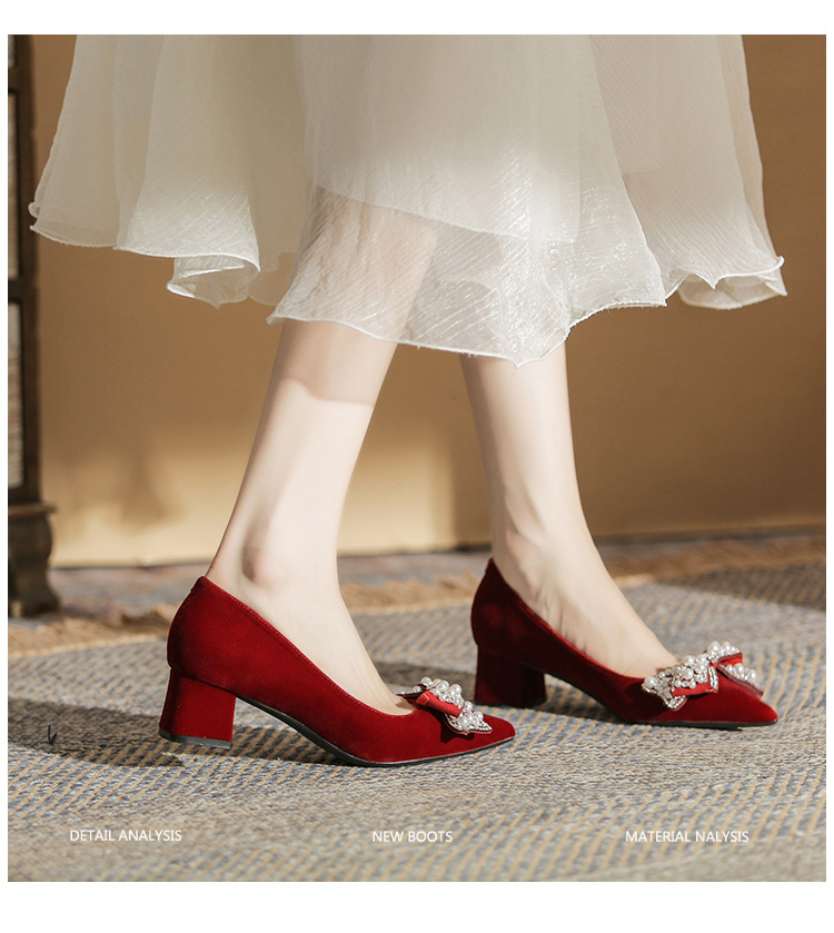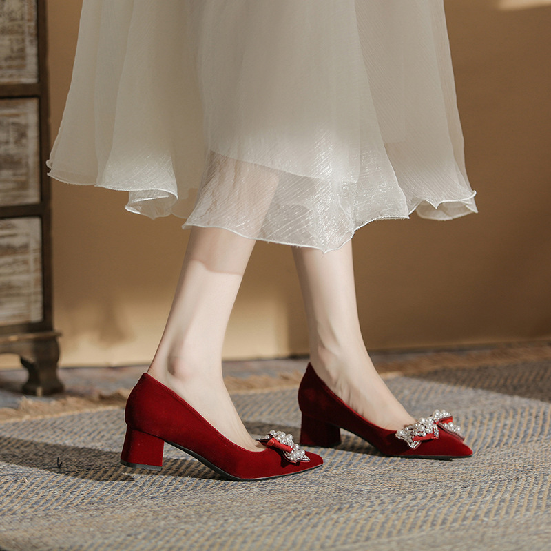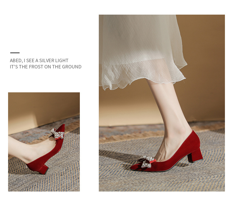 Giày cao gót nữ dáng cổ điển, điểm nhấn là chiếc nơ kết hạt lấp lánh tinh tế. Sản phẩm có phần gót thấp vững chãi, giúp bạn di chuyển thoải mái suốt ngày dài. Kiểu dáng phù hợp để mang cùng các trang phục dự tiệc hoặc trong những dịp quan trọng. Chỉ cần xỏ chân vào và cài khóa là đã sẵn sàng, rất tiện lợi và dễ sử dụng. | Tên sản phẩm: Giày Cao Gót Nữ Thắt Nơ Bướm Gắn Đá Gót Vuông Hàng Mùa Xuân Thu Đông Dùng Trong Lễ Cưới - Giày Dép Nữ | Mã sản phẩm: D0262 - Giá: 1.000.000đ | Mã nhà sản xuất: HUDS-G03Hình ảnh sản phẩm
