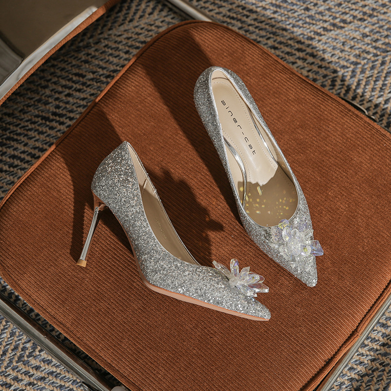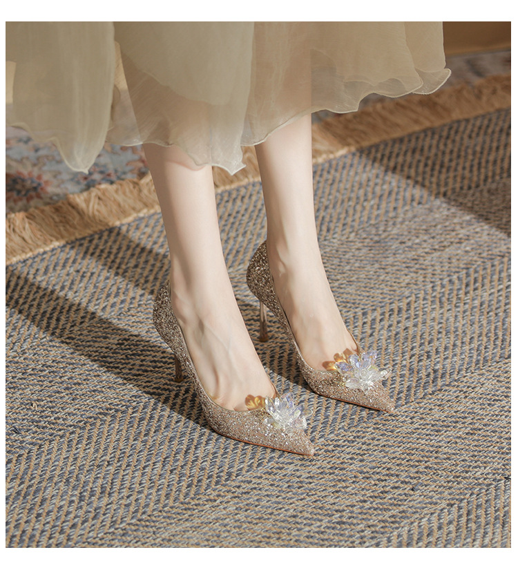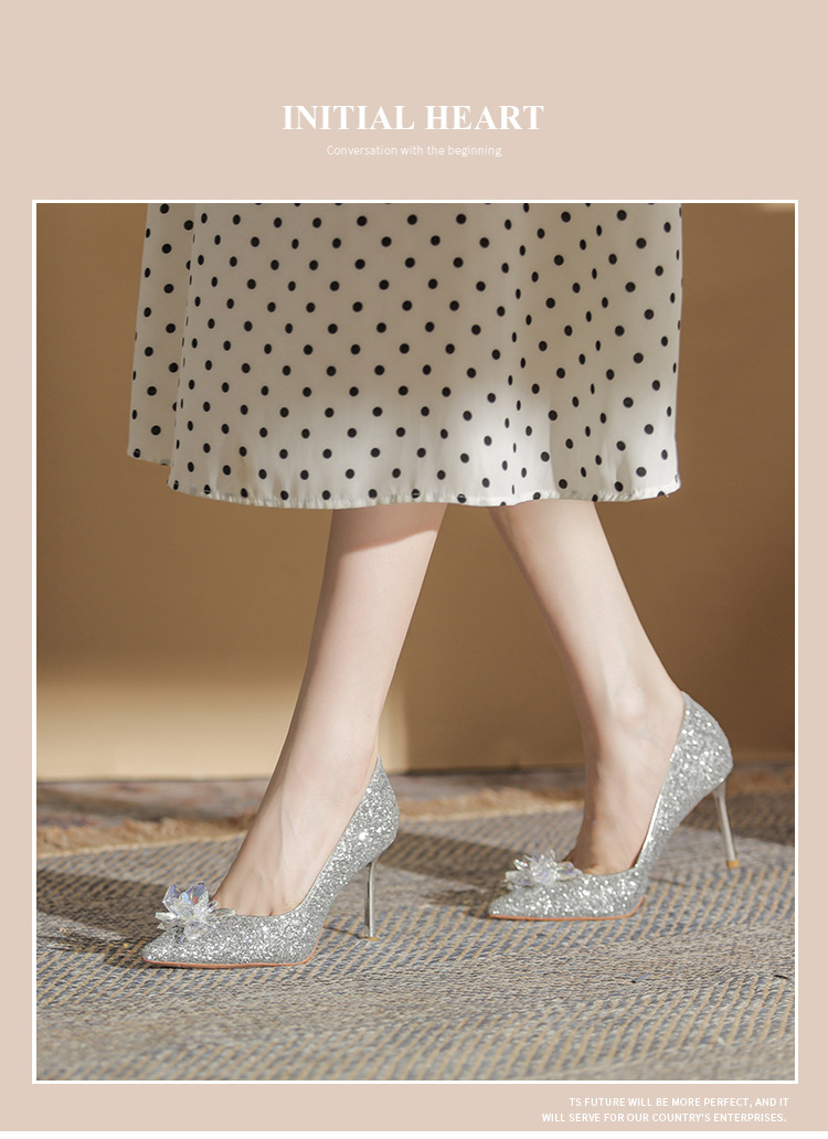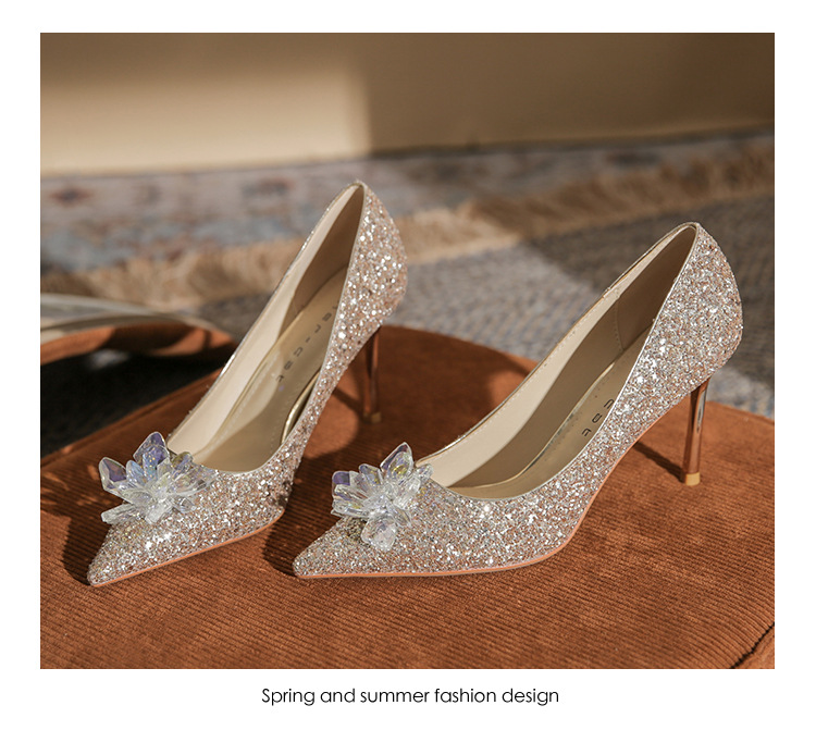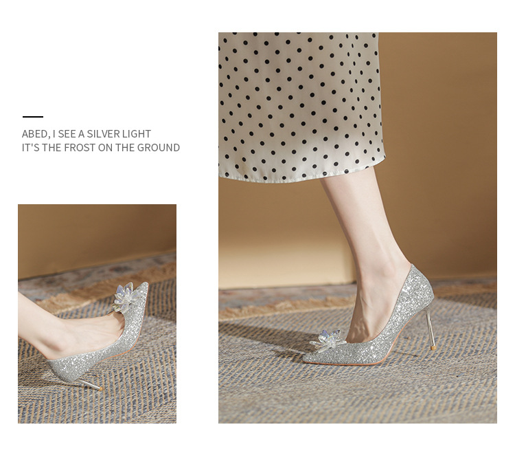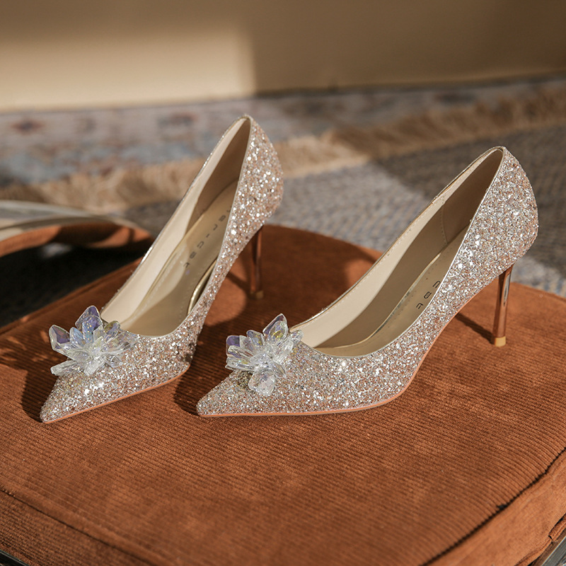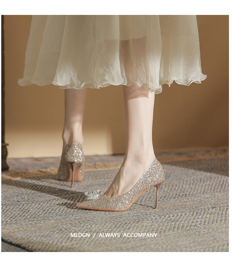 Giày cao gót nữ với mũi nhọn thanh thoát, kiểu dáng mới năm 2022. Phong cách thiết kế mang hơi hướng Pháp tinh tế, điểm nhấn là chi tiết pha lê ánh vàng lấp lánh phía trước. Sản phẩm phù hợp làm giày cô dâu trong ngày cưới hoặc giày cho các bạn phụ dâu. Đế cao gót mảnh giúp tôn dáng người sử dụng. Khi dùng, nên chọn size vừa vặn và tập đi lại nhẹ nhàng để làm quen với độ cao của gót. | Tên sản phẩm: Giày Cao Gót Nữ Mũi Nhọn Gót Nhọn Dùng Trong Lễ Cưới - Giày Dép Nữ | Mã sản phẩm: D0352 - Giá: 1.000.000đ | Mã nhà sản xuất: HUDS-G03Hình ảnh sản phẩm