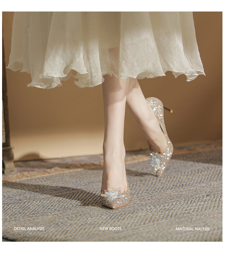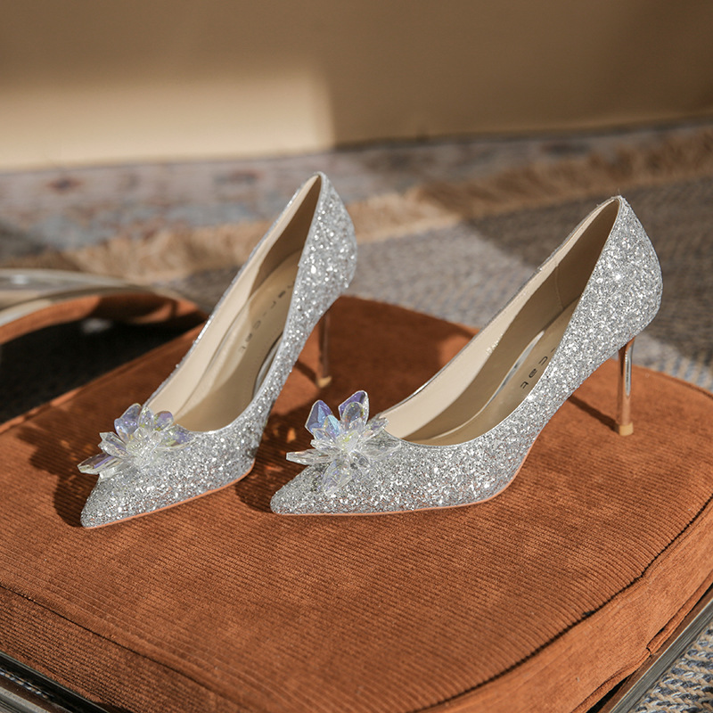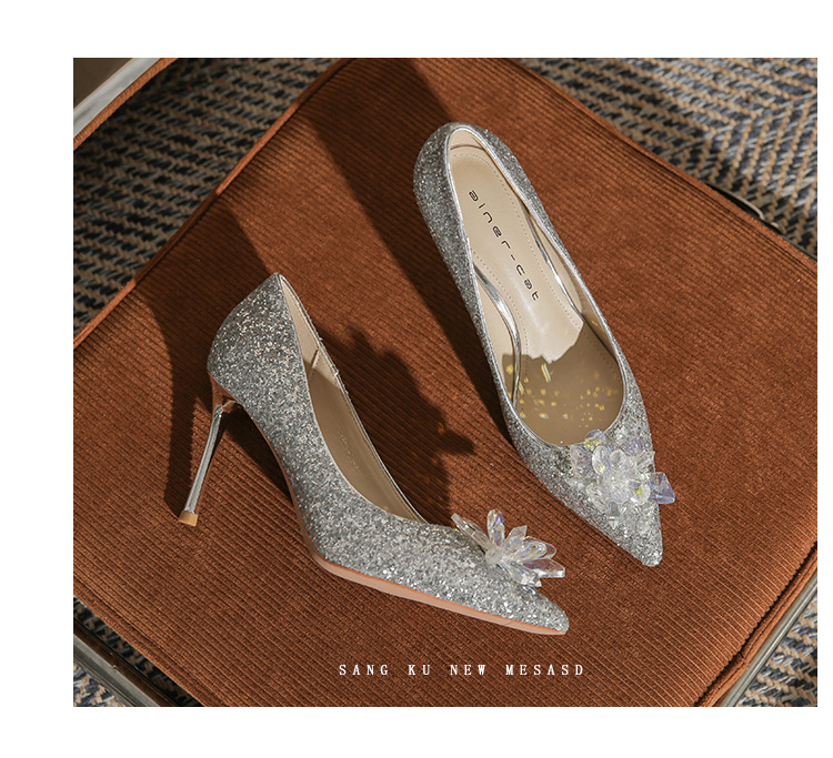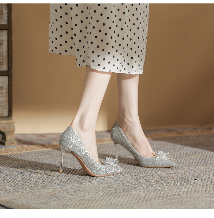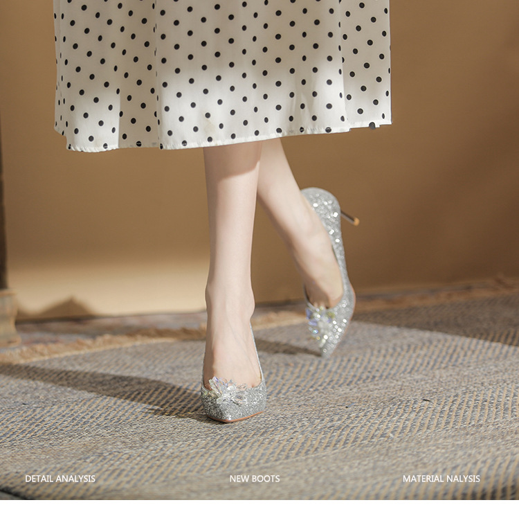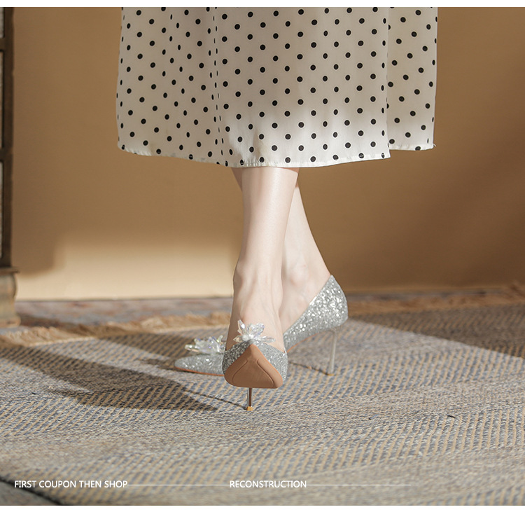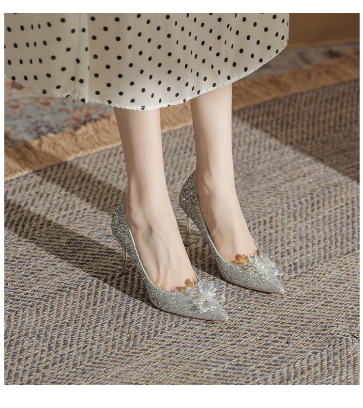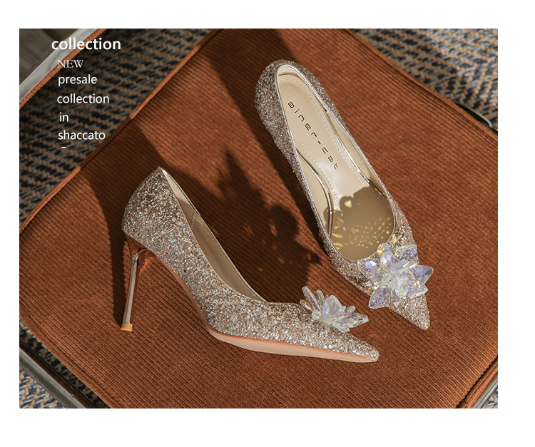 Giày cao gót nữ với mũi nhọn thanh thoát, kiểu dáng mới năm 2022. Phong cách thiết kế mang hơi hướng Pháp tinh tế, điểm nhấn là chi tiết pha lê ánh vàng lấp lánh phía trước. Sản phẩm phù hợp làm giày cô dâu trong ngày cưới hoặc giày cho các bạn phụ dâu. Đế cao gót mảnh giúp tôn dáng người sử dụng. Khi dùng, nên chọn size vừa vặn và tập đi lại nhẹ nhàng để làm quen với độ cao của gót. | Tên sản phẩm: Giày Cao Gót Nữ Mũi Nhọn Gót Nhọn Dùng Trong Lễ Cưới - Giày Dép Nữ | Mã sản phẩm: D0352 - Giá: 1.000.000đ | Mã nhà sản xuất: HUDS-G03Hình ảnh sản phẩm