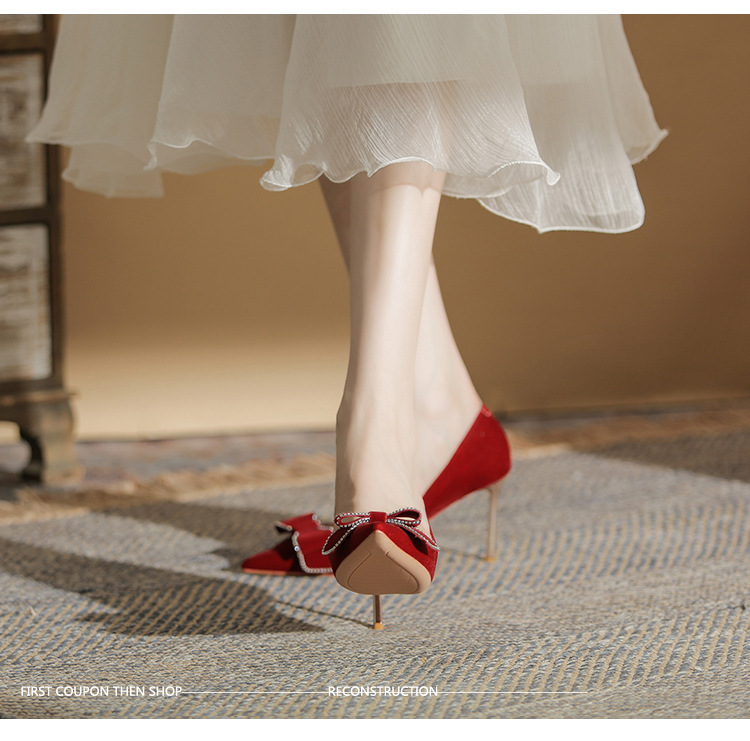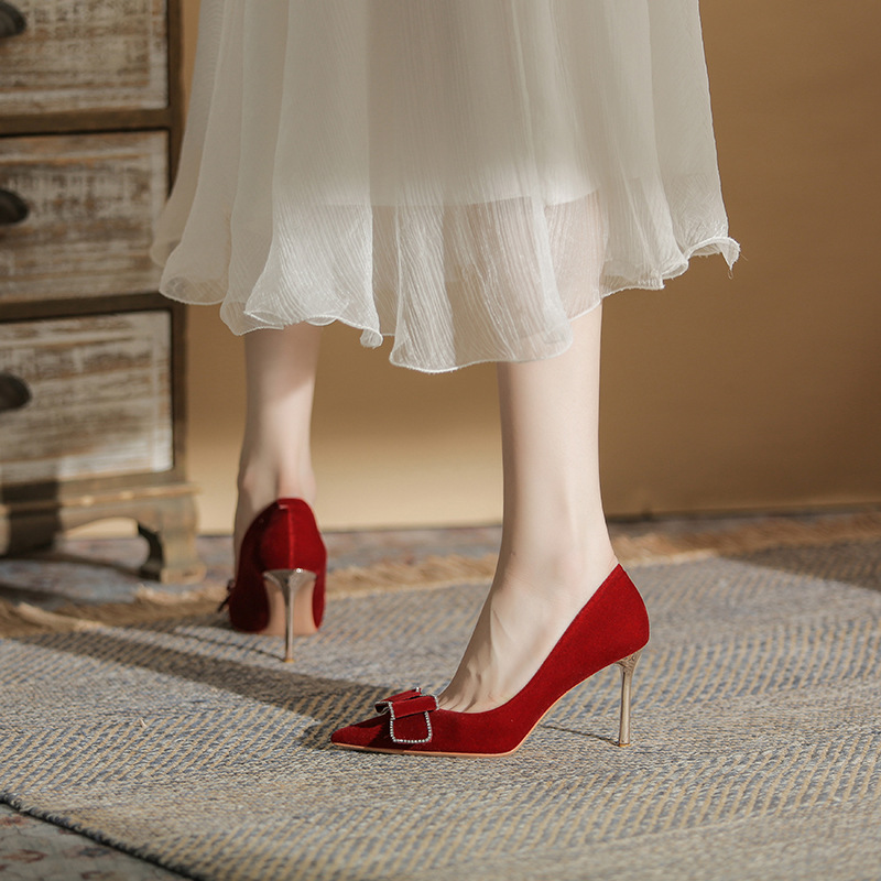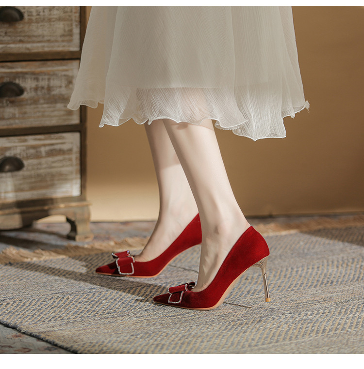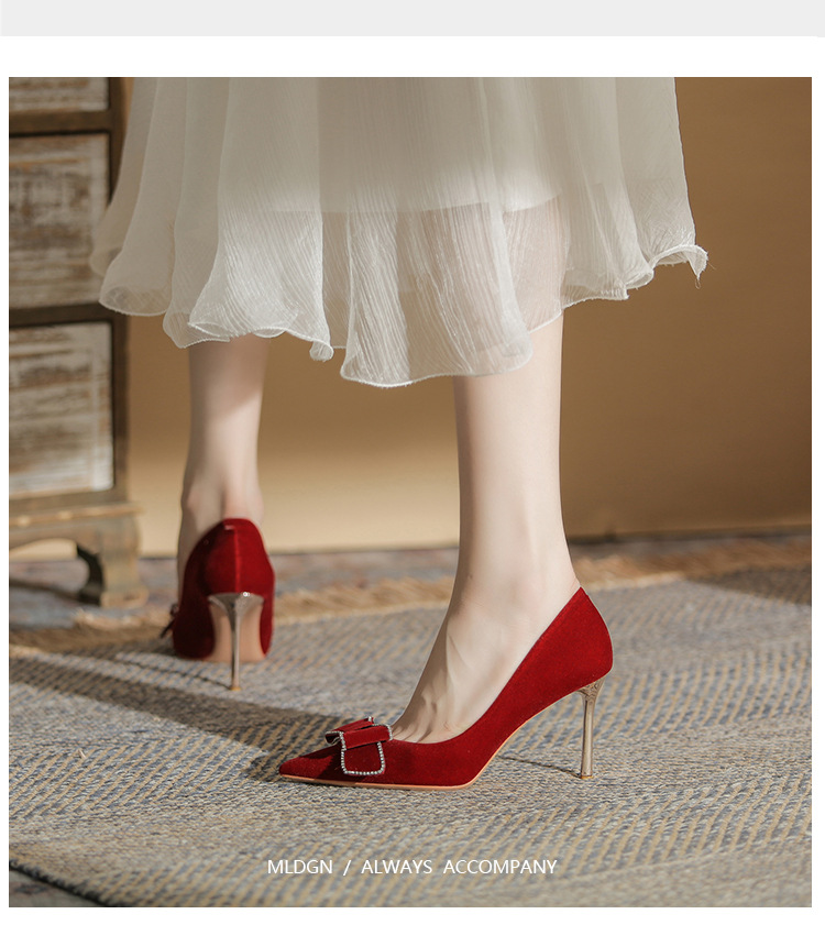 Đôi giày cao gót này có phần mũi nhọn thanh thoát và gót trụ cao, tạo dáng vẻ thanh lịch. Sản phẩm có màu đỏ rực rỡ, phù hợp để mang cùng trang phục cưới trong các dịp lễ trọng. Kiểu dáng cổ điển với phần miệng giày thấp ôm sát bàn chân, giúp nâng đỡ tốt. Bạn có thể dùng giày cho các buổi tiệc hoặc sự kiện quan trọng. Khi sử dụng, nên chọn cỡ vừa vặn và tập đi lại nhẹ nhàng để làm quen với độ cao của gót. | Tên sản phẩm: Giày Cao Gót Nữ Mũi Nhọn Gót Nhọn Dùng Trong Lễ Cưới - Giày Dép Nữ | Mã sản phẩm: D0398 - Giá: 940.000đ | Mã nhà sản xuất: HUDS-G03Hình ảnh sản phẩm