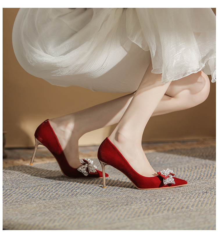 Giày cao gót nữ với phần mũi nhọn thanh lịch, điểm tô những hạt ngọc tr lấp lánh và nơ duyên dáng. Sản phẩm có thiết kế gót nhỏ, tôn lên vẻ đẹp nữ tính và hiện đại. Đây là mẫu giày phù hợp để mang trong các dịp lễ, tiệc cưới. Khi sử dụng, bạn nên chọn size vừa vặn với chân và kết hợp cùng những bộ trang phục dài để tạo nên điểm nhấn hoàn hảo. | Tên sản phẩm: Giày Cao Gót Nữ Thắt Nơ Bướm Gắn Đá Mũi Nhọn Gót Nhọn Dùng Trong Lễ Cưới - Giày Dép Nữ | Mã sản phẩm: D0406 - Giá: 1.000.000đ | Mã nhà sản xuất: HUDS-G03Hình ảnh sản phẩm