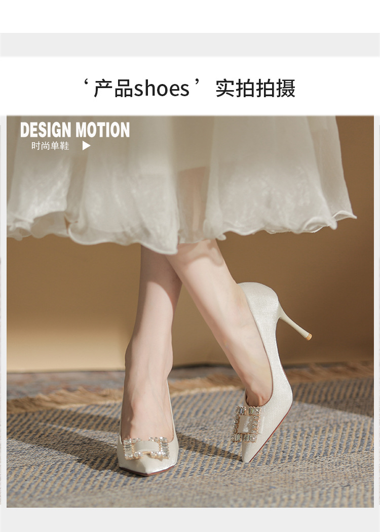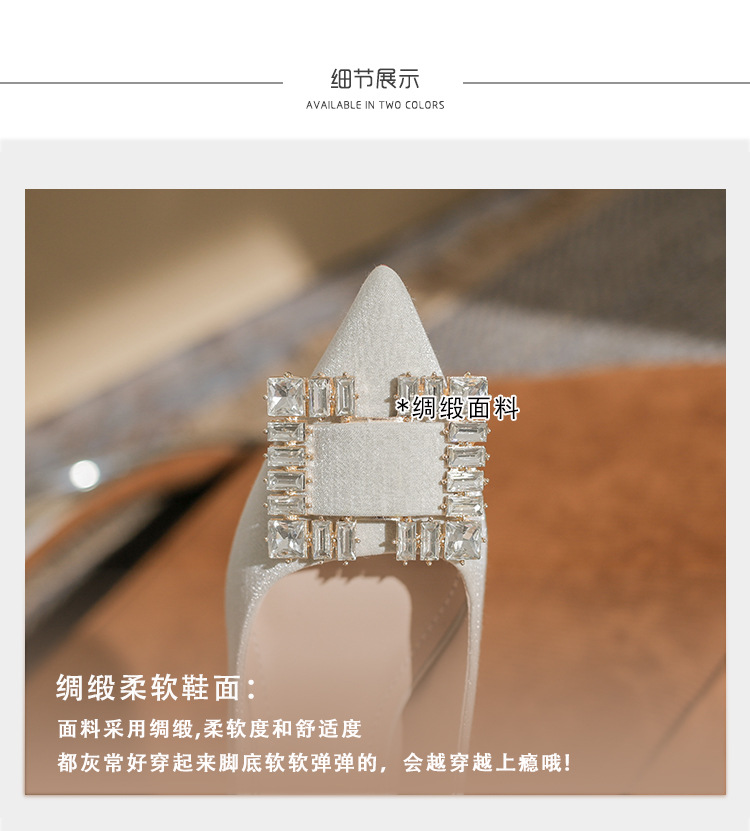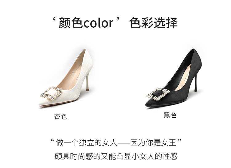Giày cao gót nữ với mũi nhọn thanh lịch, phần gót thon tạo dáng quyến rũ. Chất liệu vải lụa mềm mại kết hợp chi tiết khóa vuông được đính hạt pha lê lấp lánh tinh tế. Kiểu dáng cổ thấp ôm vừa chân, dễ dàng phối cùng nhiều trang phục như váy công sở hay bộ cánh dự tiệc. Sản phẩm thích hợp sử dụng trong các dịp lễ hội hoặc sự kiện quan trọng. | Tên sản phẩm: Giày Cao Gót Nữ Gắn Đá Mũi Nhọn Gót Nhọn Dùng Trong Lễ Cưới - Giày Dép Nữ | Mã sản phẩm: D0420 - Giá: 830.000đ | Mã nhà sản xuất: HUDS-G03Hình ảnh sản phẩm