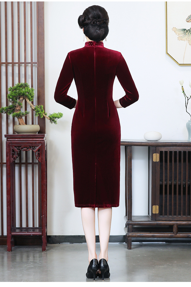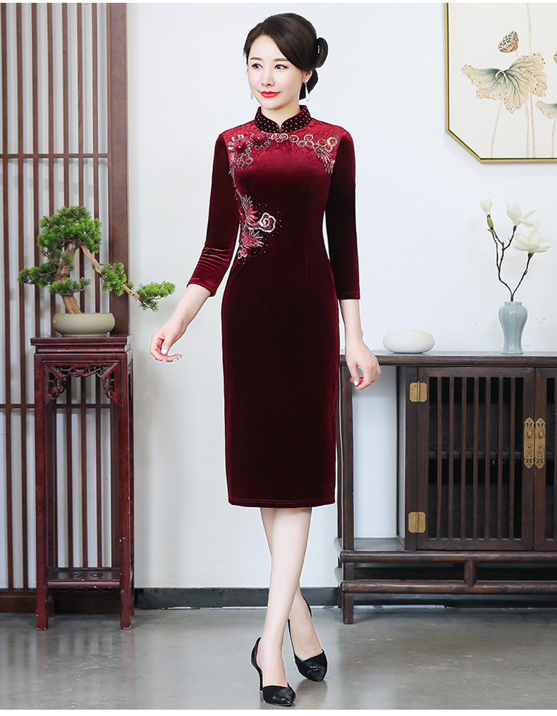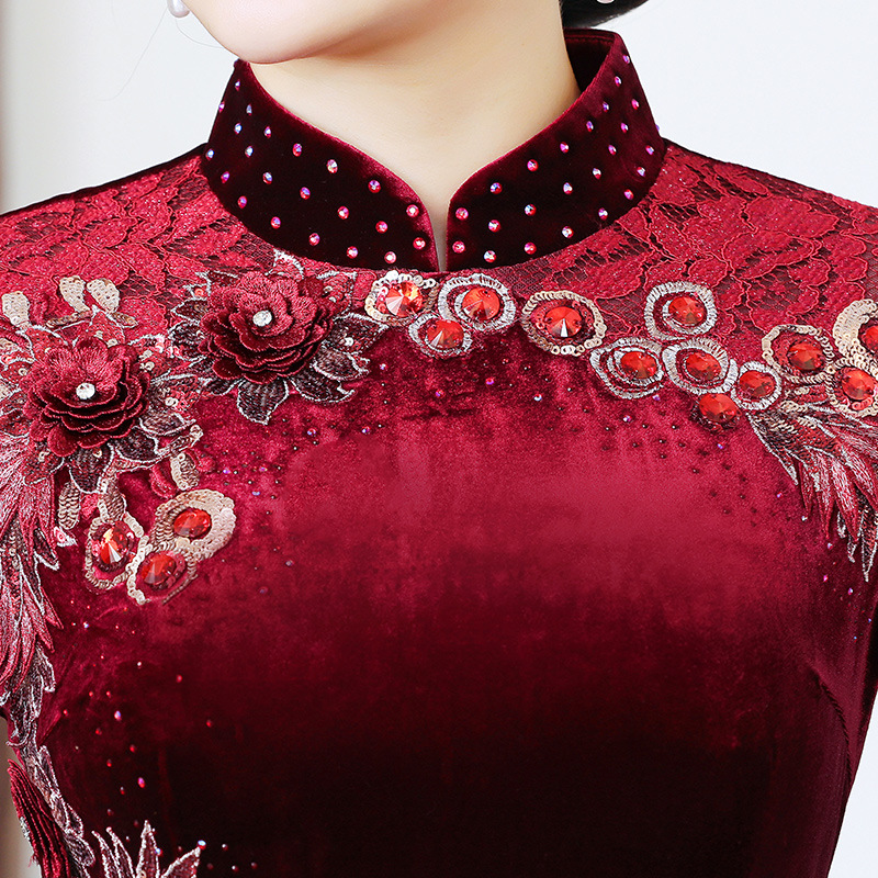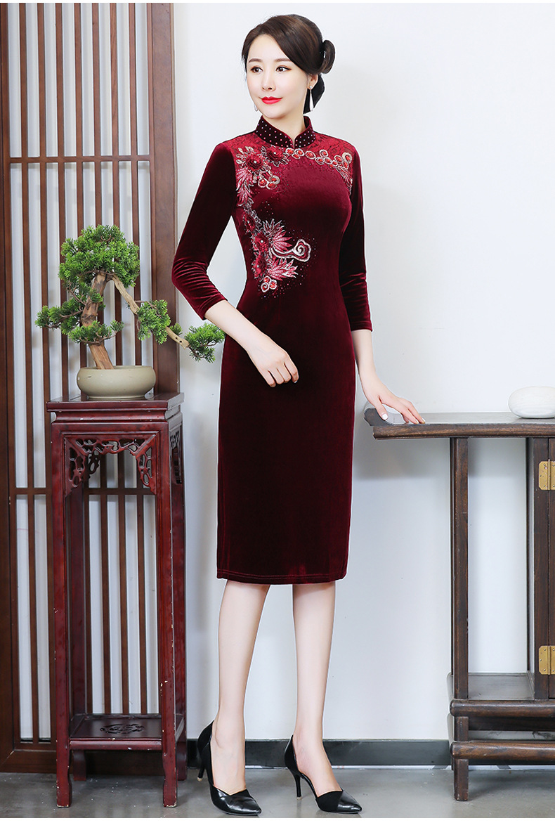 Chiếc áo dài cách tân này được làm từ chất liệu nhung mềm mại, phối cùng họa tiết thêu tay tinh xảo và điểm xuyết những hạt ngọc tr lấp lánh. Thiết kế dáng dài ôn nhu, kín đáo và rất thoải mái, phù hợp cho các dịp lễ hội, tiệc cưới. Bạn có thể mặc kết hợp cùng giày cao gót và một chiếc túm nhỏ để hoàn thiện bộ trang phục. | Tên sản phẩm: Váy Đầm Liền Thân Nữ Thêu Họa Tiết Hoa Hàng Mùa Xuân Thu Đông Trung Niên Dùng Trong Lễ Cưới - Thời Trang Nữ | Mã sản phẩm: D1624 - Giá: 3.560.000đ | Mã nhà sản xuất: SHDG-G06Hình ảnh sản phẩm
