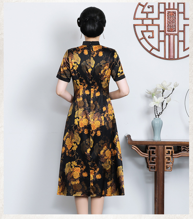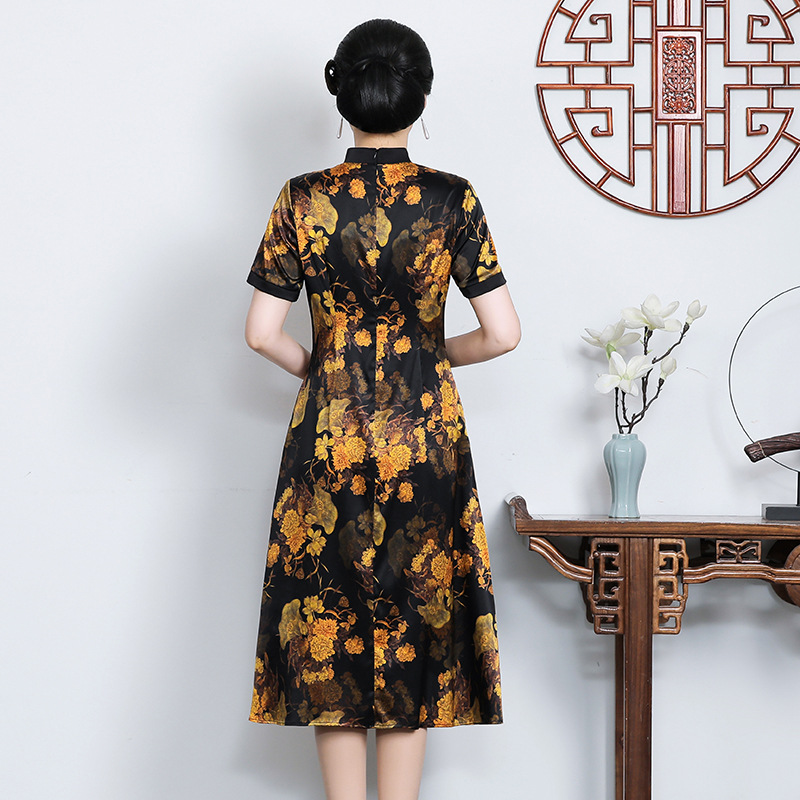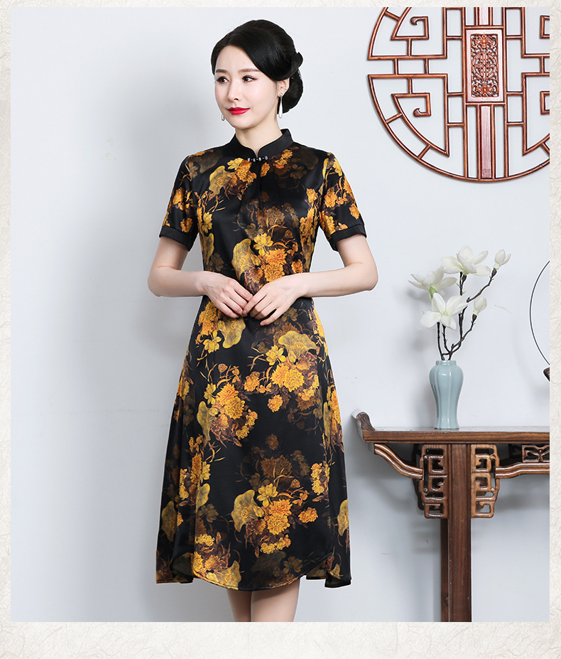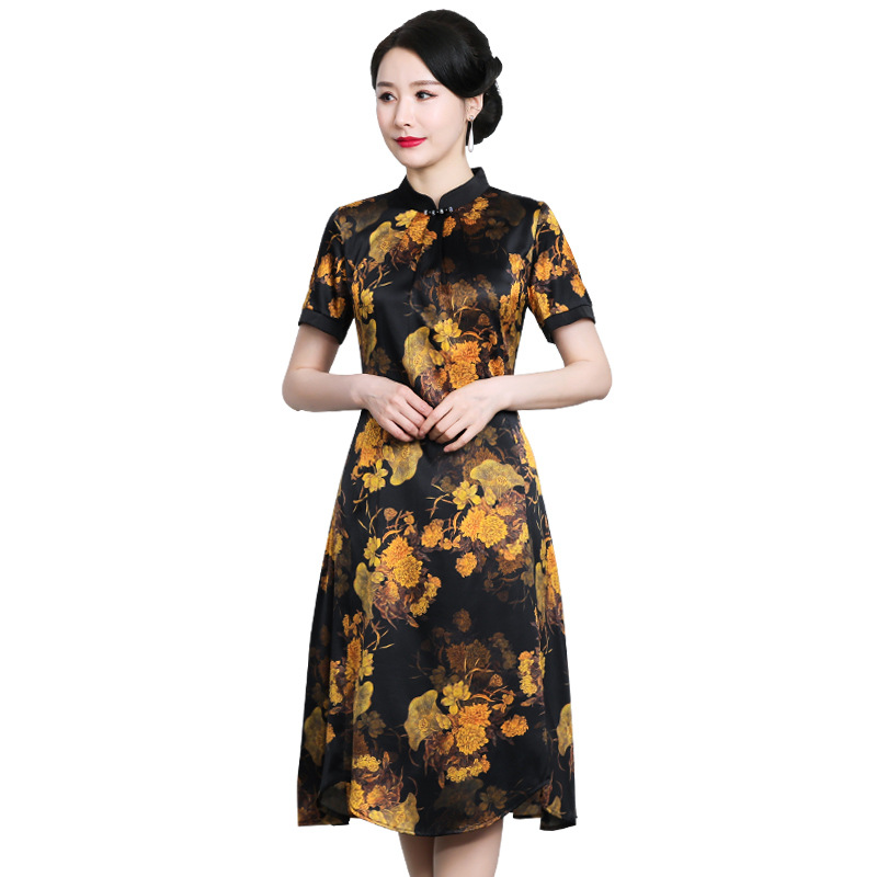 Chiếc áo dài cách tân dành cho mẹ, được dệt từ chất liệu tơ tằm tự nhiên, mang đến cảm giác mềm mại và thoáng mát khi mặc. Kiểu dáng ôm nhẹ nhàng, tôn dáng nhưng vẫn rất thoải mái nhờ phần thân rộng rãi. Hoa văn in trên vải tinh tế, phù hợp cho nhiều dịp khác nhau. Sản phẩm cần giặt bằng tay với nước lạnh và phơi ở nơi râm mát để giữ được vẻ đẹp lâu bền. | Tên sản phẩm: Váy Đầm Liền Thân Nữ Chất Liệu Lụa Tơ Tằm Họa Tiết Hoa Trung Niên - Thời Trang Nữ | Mã sản phẩm: D1693 - Giá: 4.210.000đ | Mã nhà sản xuất: SHDG-G06Hình ảnh sản phẩm