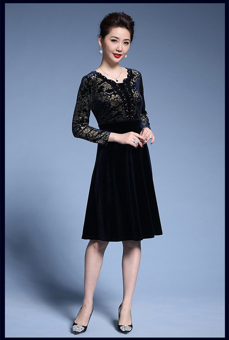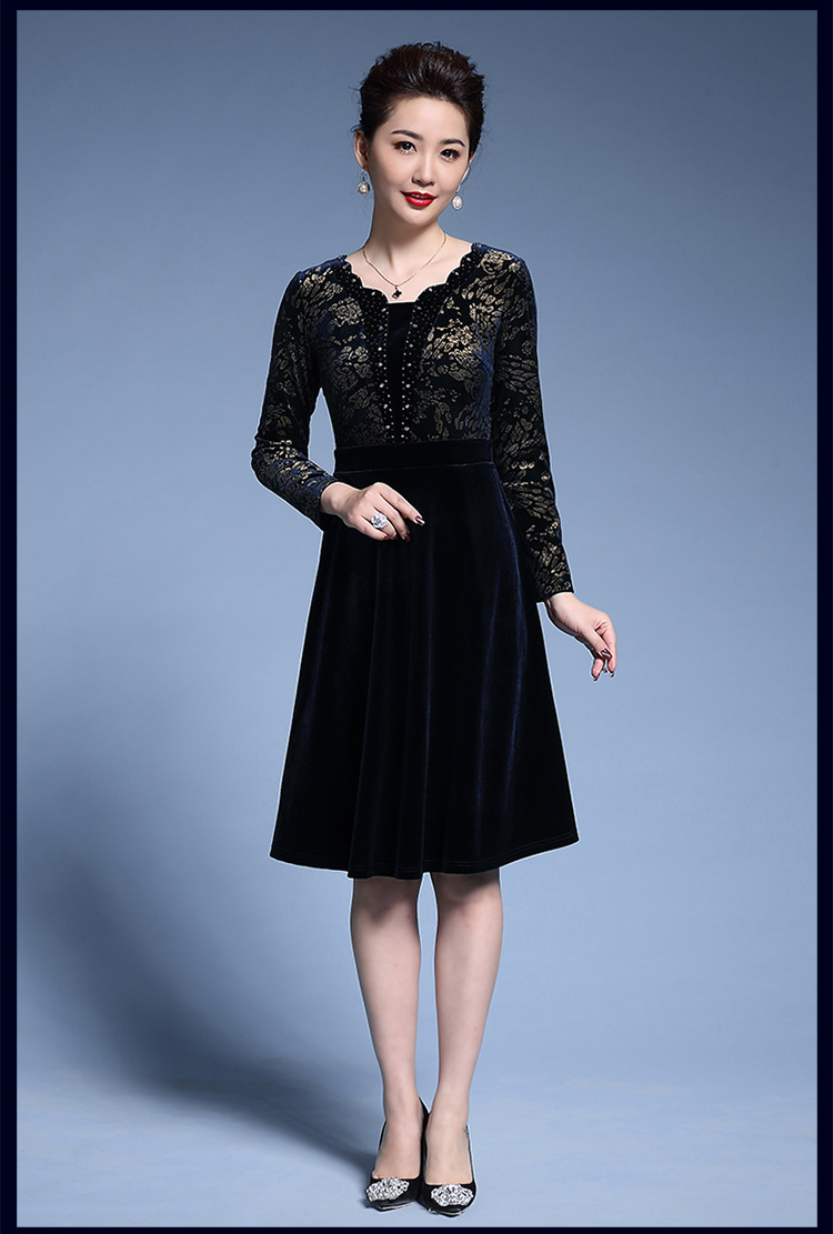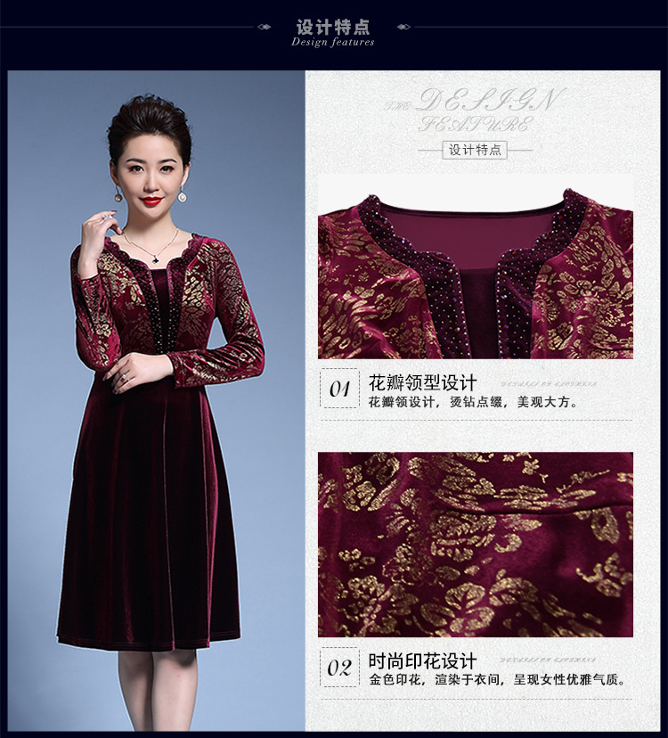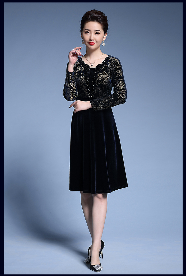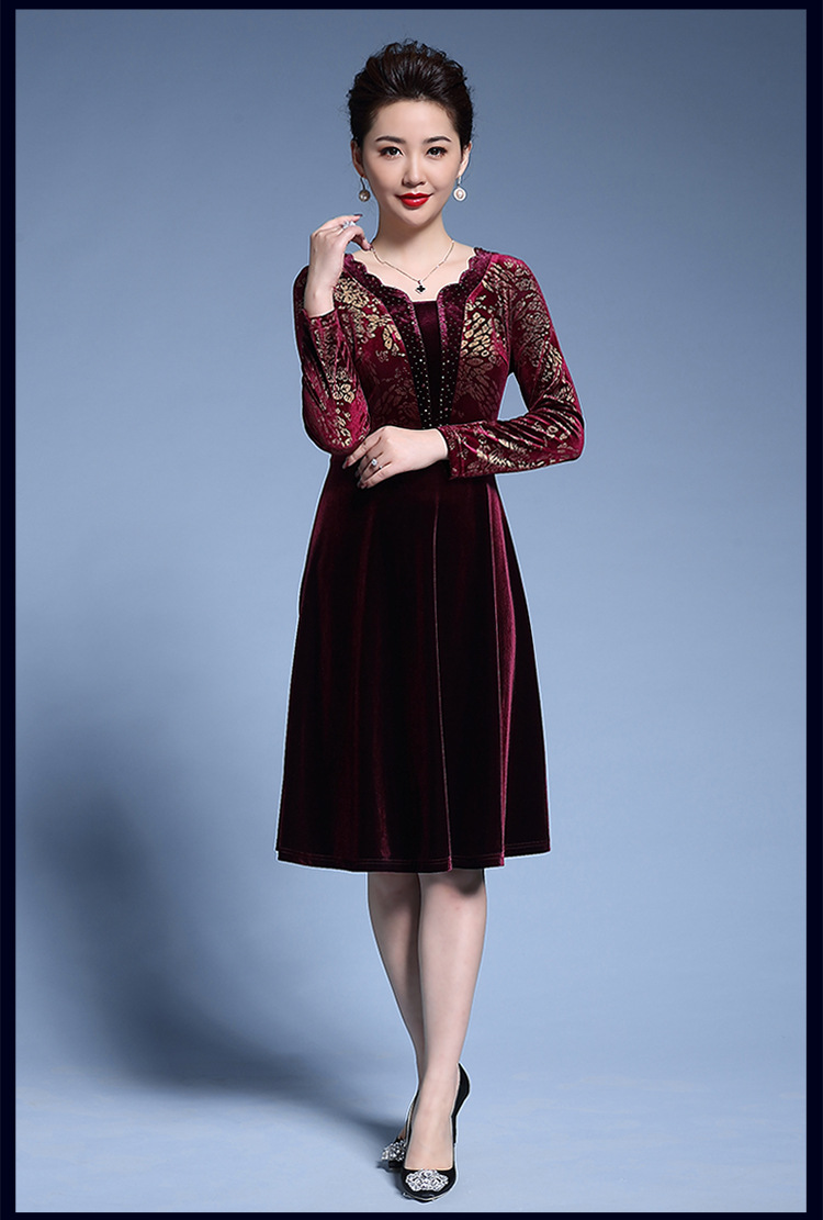 Chiếc váy dành cho các bà mẹ trung niên, được dệt từ chất liệu nhung mềm mại pha sợi kim tuyến lấp lánh. Kiểu dáng đầm xòe rộng tạo dáng thanh thoát, in họa tiết hoa văn kết hợp đường nét ánh vàng trang nhã. Sản phẩm phù hợp cho các dịp lễ hội hay dự tiệc cưới. Cách sử dụng đơn giản, mặc kết hợp cùng phụ kiện nhẹ nhàng để hoàn thiện bộ trang phục. | Tên sản phẩm: Váy Đầm Liền Thân Nữ Họa Tiết Hoa Trung Niên Dùng Trong Lễ Cưới - Thời Trang Nữ | Mã sản phẩm: D1711 - Giá: 2.960.000đ | Mã nhà sản xuất: SHDG-G06Hình ảnh sản phẩm
