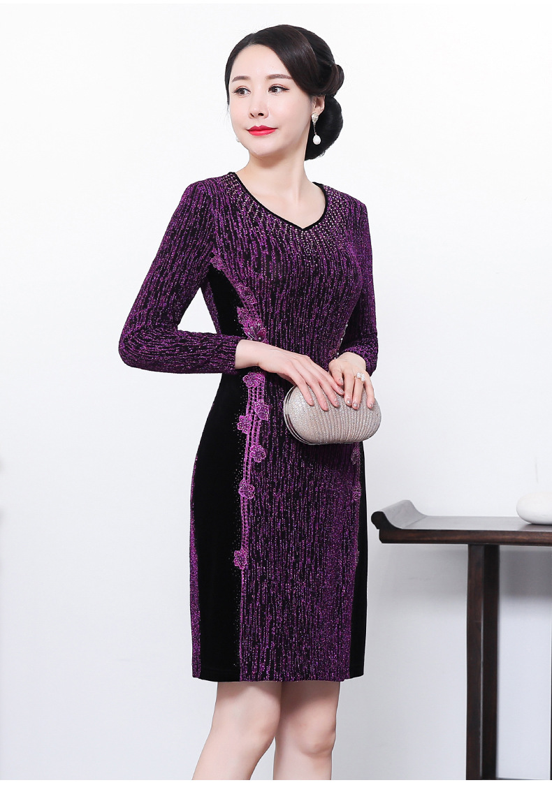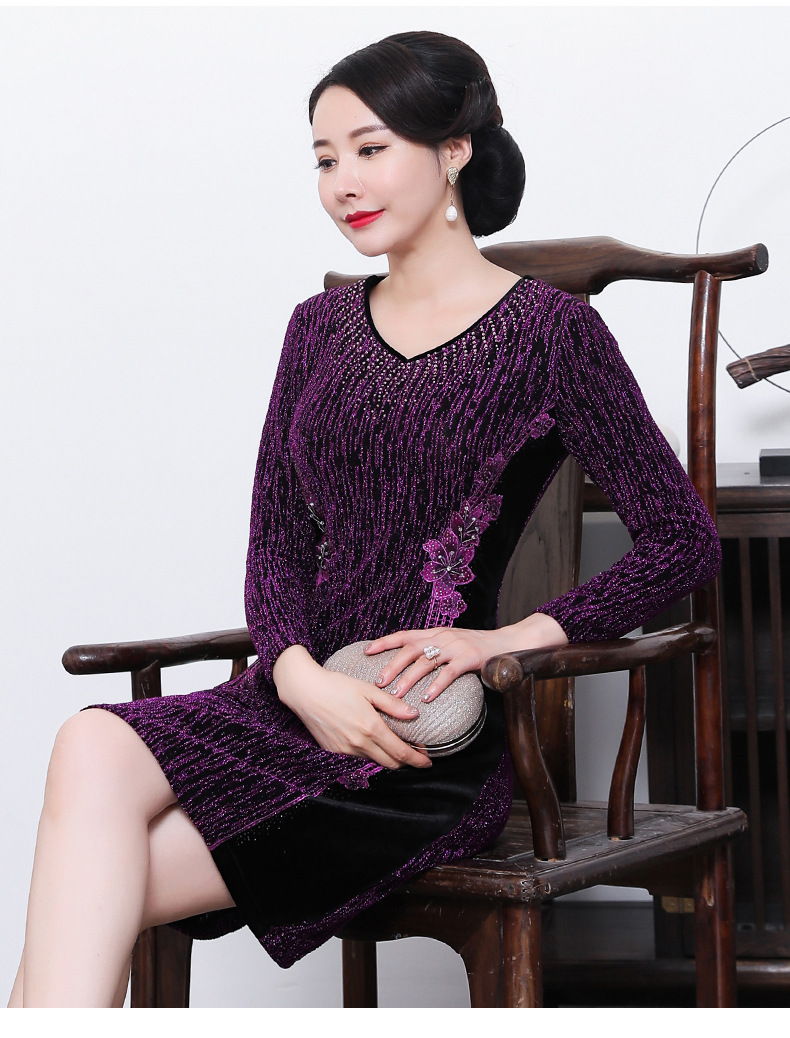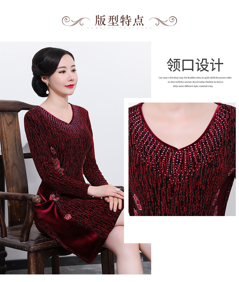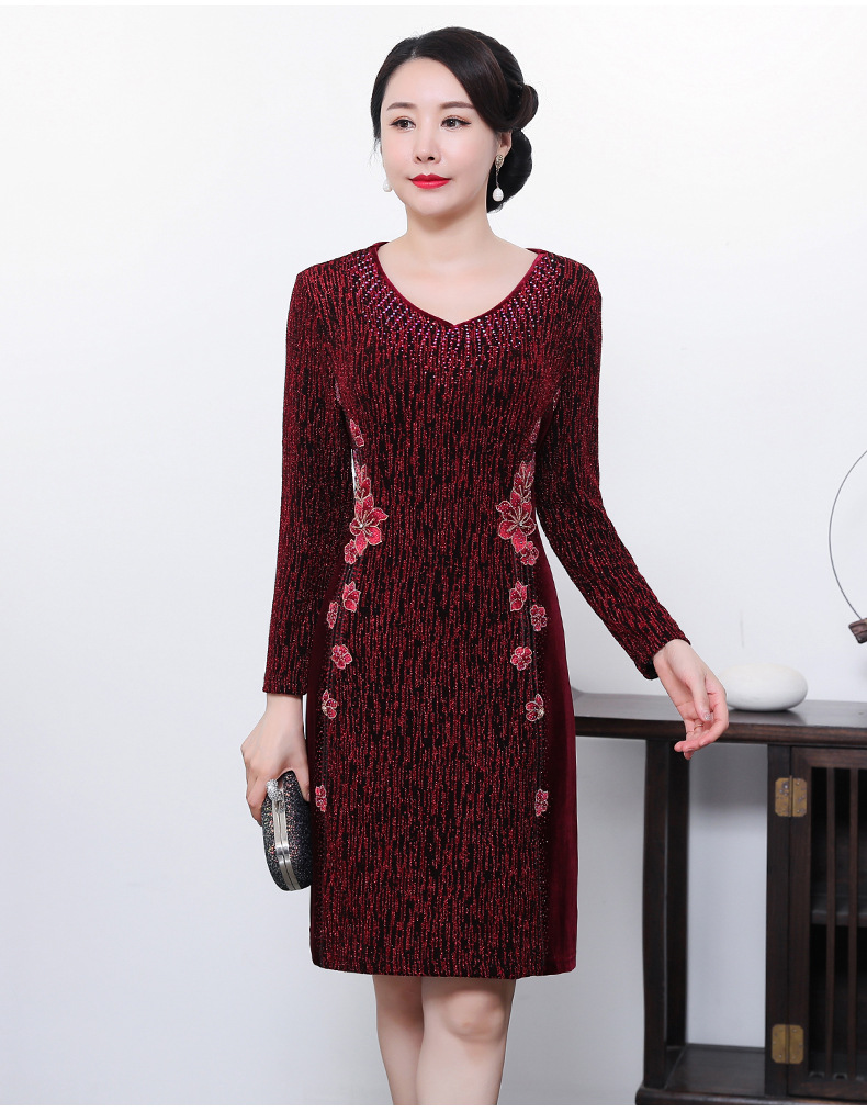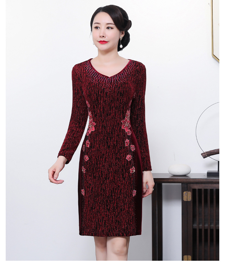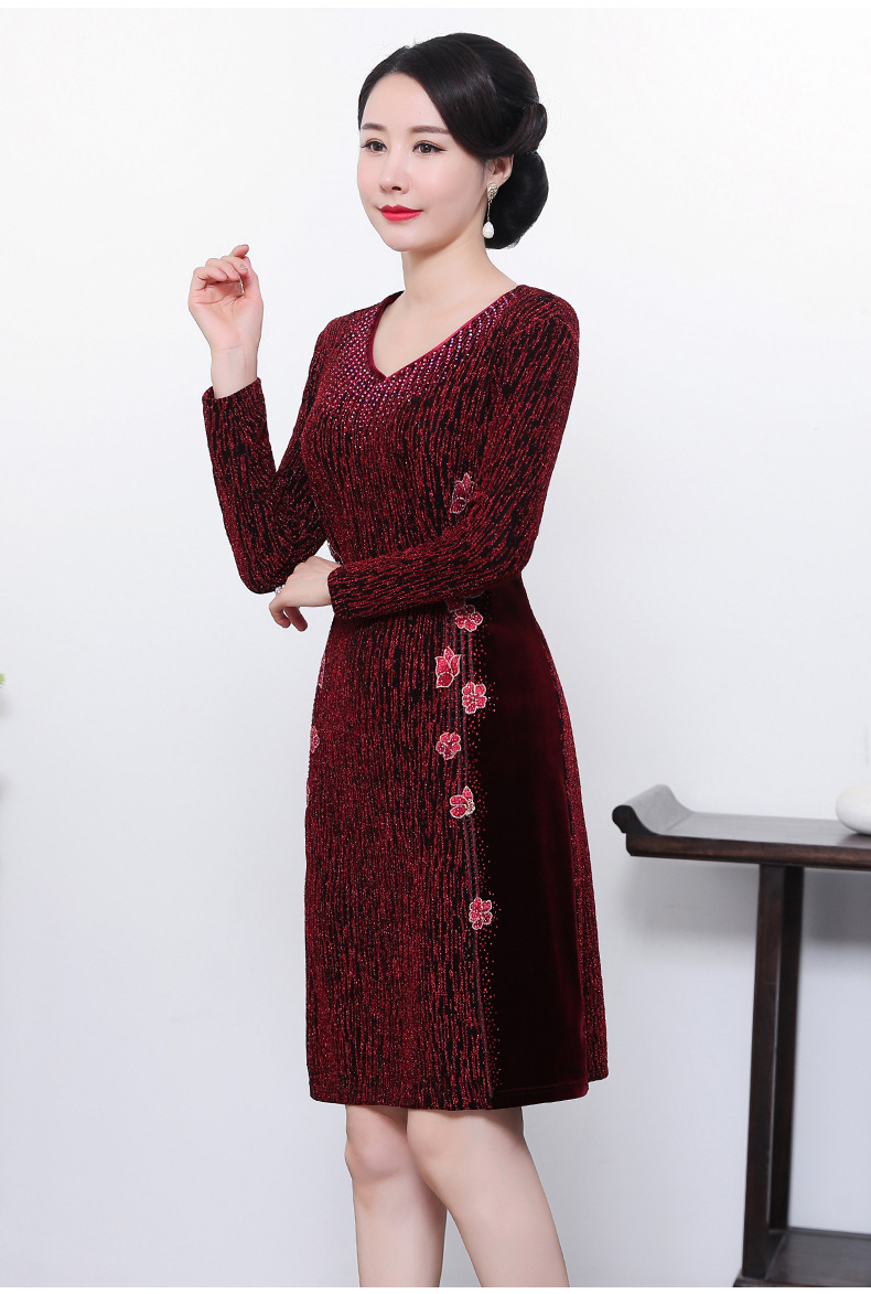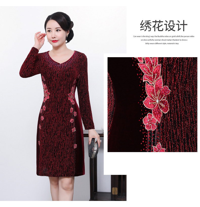 Chiếc váy dành cho mẹ trong các dịp lễ cưới, hỷ sự vào mùa thu. Thiết kế ôm dáng tôn lên vẻ đẹp trang nhã. Điểm nhấn đặc biệt là những đường thêu tinh xảo trên chất liệu vải, tạo nên vẻ đẹp thu hút mà vẫn rất đỗi dịu dàng. Sản phẩm thích hợp mặc trong các bữa tiệc, buổi lễ trang trọng của gia đình. Có thể kết hợp cùng phụ kiện như túy xách và trang sức nhẹ để hoàn thiện phong cách. | Tên sản phẩm: Váy Đầm Liền Thân Nữ Dáng Ôm Thêu Họa Tiết Hoa Hàng Mùa Xuân Thu Đông Trung Niên Dùng Trong Lễ Cưới - Thời Trang Nữ | Mã sản phẩm: D1741 - Giá: 2.210.000đ | Mã nhà sản xuất: SHDG-G05Hình ảnh sản phẩm