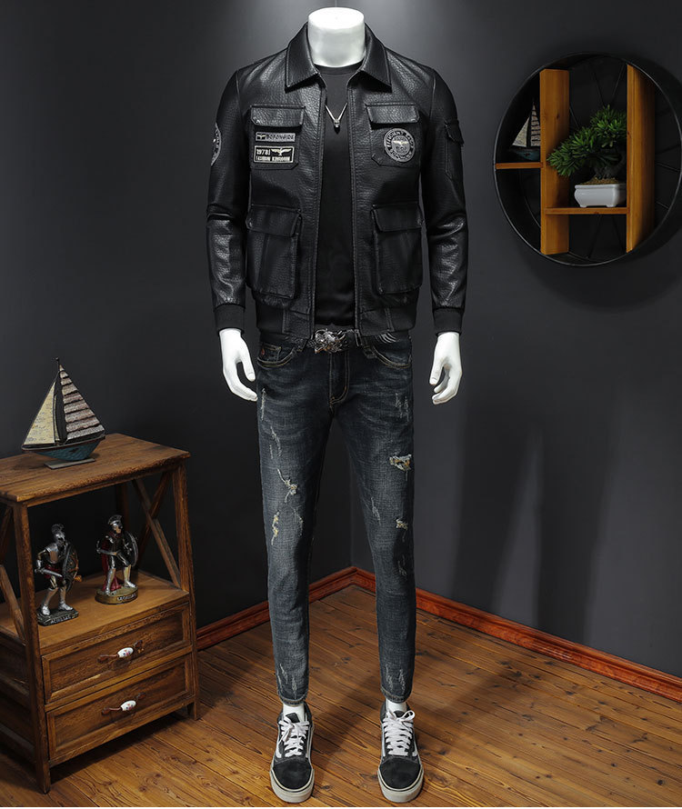 Áo khoác da nam kiểu dáng trẻ trung, phù hợp cho mùa thu đông. Chất liệu da tổng hợp mềm mại, tạo cảm giác dễ chịu khi mặc. Áo có cổ bẻ, kiểu ôm vừa vặn cơ thể, phong cách năng động. Dễ dàng phối cùng quần jeans và giày thể thao để tạo nên vẻ ngoài cá tính. Sản phẩm thích hợp cho các hoạt động hằng ngày, đi chơi hay dự tiệc nhẹ. | Tên sản phẩm: Áo Da Nam Dáng Ôm Kín Cổ Hàng Mùa Xuân Thu Đông Phong Cách Hàn Quốc - Thời Trang Nam | Mã sản phẩm: D3979 - Giá: 1.090.000đ | Mã nhà sản xuất: SHRYAO-G03Hình ảnh sản phẩm