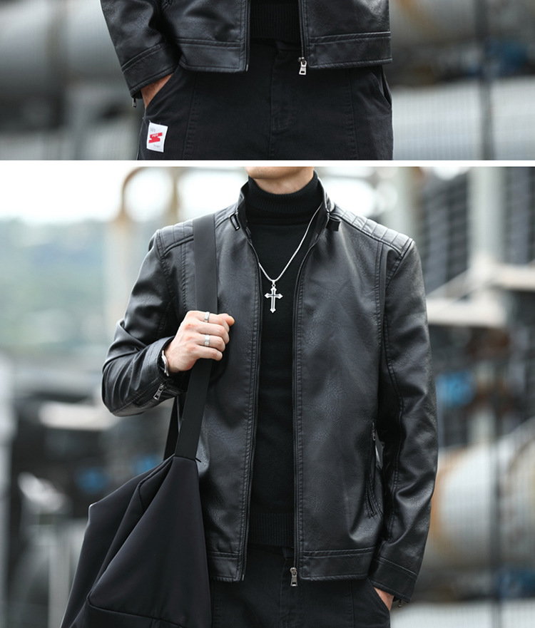 Áo khoác da nam thiết kế kiểu dáng Hàn Quốc, form ôm vừa vặn dành cho các bạn trẻ. Sản phẩm có cổ đứng và được làm từ chất liệu da tổng hợp bền đẹp. Phù hợp mặc trong tiết trời thu đông, kết hợp cùng quần jeans và áo thun để tạo phong cách năng động. Có thể giặt bằng tay và phơi ở nơi thoáng mát để giữ dáng áo được lâu. | Tên sản phẩm: Áo Da Nam Dáng Ôm Hàng Mùa Xuân Thu Đông Phong Cách Trẻ Trung Phong Cách Hàn Quốc - Thời Trang Nam | Mã sản phẩm: D3986 - Giá: 830.000đ | Mã nhà sản xuất: SHRYAO-G03Hình ảnh sản phẩm