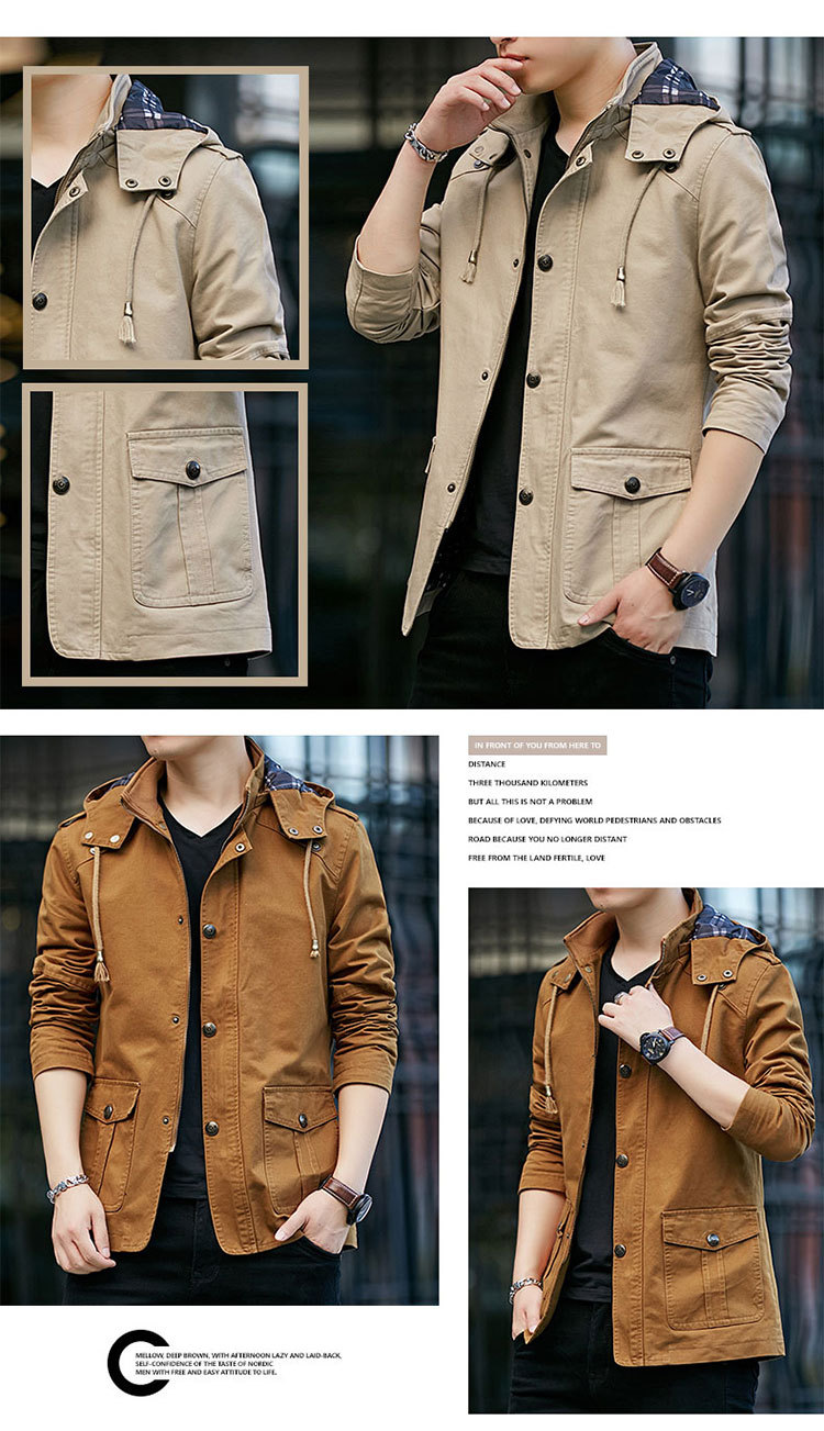 Áo khoác nam thiết kế dáng rộng rãi, phù hợp mặc trong tiết trời xuân hoặc thu. Chất vải cotton mềm mại, đã qua xử lý giặt tạo độ bền màu và cảm giác thoải mái khi mặc. Sản phẩm kết hợp nét phong cách áo mưa với kiểu dáng áo khoác thông thường, dễ dàng phối cùng quần âu hoặc trang phục đi làm. Có thể mặc trực tiếp hoặc kết hợp như lớp áo ngoài cùng, giữ ấm nhẹ mà vẫn đảm bảo sự năng động. | Tên sản phẩm: Áo Khoác Nam Chất Liệu Vải Bông Hàng Mùa Xuân Thu Đông - Thời Trang Nam | Mã sản phẩm: D4013 - Giá: 1.060.000đ | Mã nhà sản xuất: SHRYAO-G03Hình ảnh sản phẩm