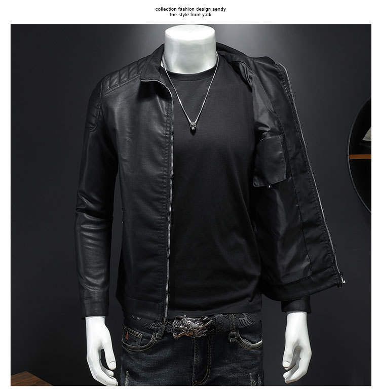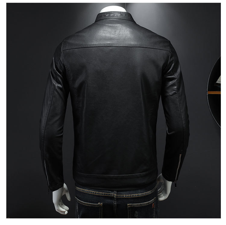 Áo khoác da nam thiết kế cổ đứng, kiểu dáng ôm vừa vặn cơ thể. Chất liệu da mềm mại tạo cảm giác dễ chịu khi mặc. Sản phẩm phù hợp cho tiết trời mùa xuân và thu, dễ dàng phối cùng quần âu hay trang phục thường ngày. Mặc kèm áo thun bên trong để tạo vẻ ngoài lịch lãm. Bảo quản nơi khô ráo, lau nhẹ bằng khăn mềm khi bám bụi. | Tên sản phẩm: Áo Da Nam Dáng Ôm Hàng Mùa Xuân Thu Đông Phong Cách Hàn Quốc - Thời Trang Nam | Mã sản phẩm: D4014 - Giá: 870.000đ | Mã nhà sản xuất: SHRYAO-G03Hình ảnh sản phẩm