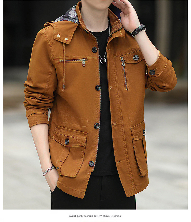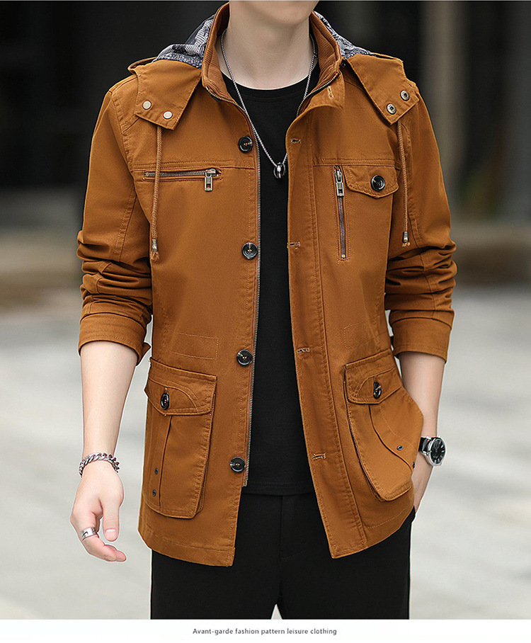 Áo khoác nam có mũ, kiểu dáng thể thao năng động, phù hợp cho các bạn trẻ. Chất liệu nhẹ, co giãn tốt giúp người mặc thoải mái vận động. Thiết kế nhiều túi tiện lợi, dễ dàng kết hợp với nhiều loại trang phục khác nhau. Sản phẩm thích hợp mặc trong tiết trời mát mẻ của mùa xuân và mùa thu. Cách sử dụng đơn giản, mặc như các loại áo khoác thông thường. | Tên sản phẩm: Áo Khoác Nam Mũ Liền Hàng Mùa Xuân Thu Đông Phong Cách Trẻ Trung - Thời Trang Nam | Mã sản phẩm: D4040 - Giá: 1.060.000đ | Mã nhà sản xuất: SHRYAO-G03Hình ảnh sản phẩm